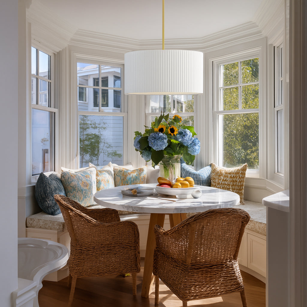 Classic pleats meet modern desian, bringing soft light and refined charm.