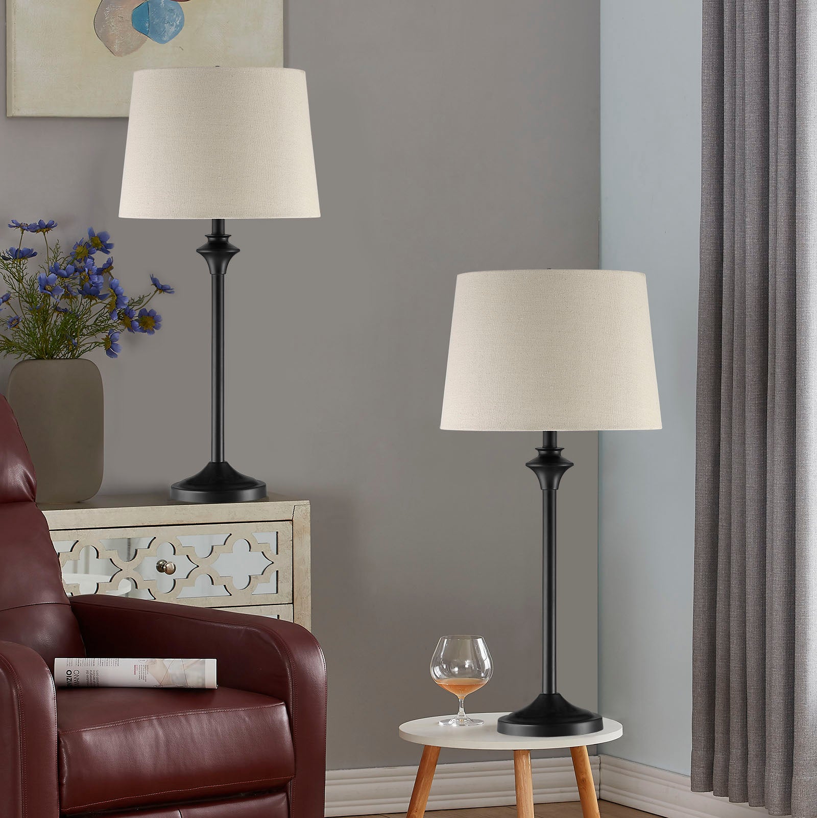 Maxax Metal Buffet Lamp with Oatmeal shade (Set of 2) #T13
