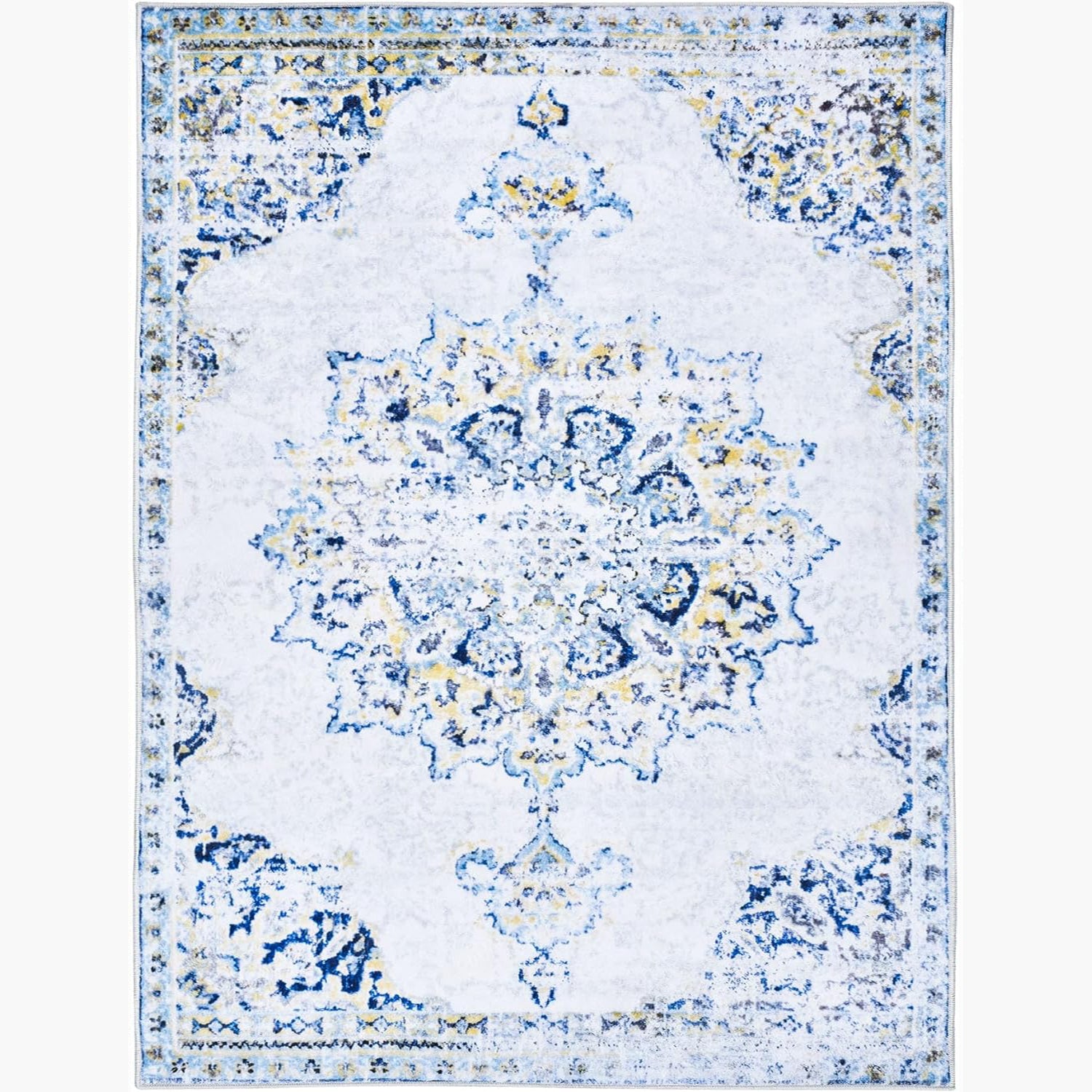 YUIlili Yullili 4"x6" Area Rug for Living Room Vintage Oriental Washable Low Pile Non-Slip Rugs, Soft Decorative Room Boho Carpet Hallway Rug for Bedside, Playroom, Indoor Decor, Yellow/Blue #AZJL2