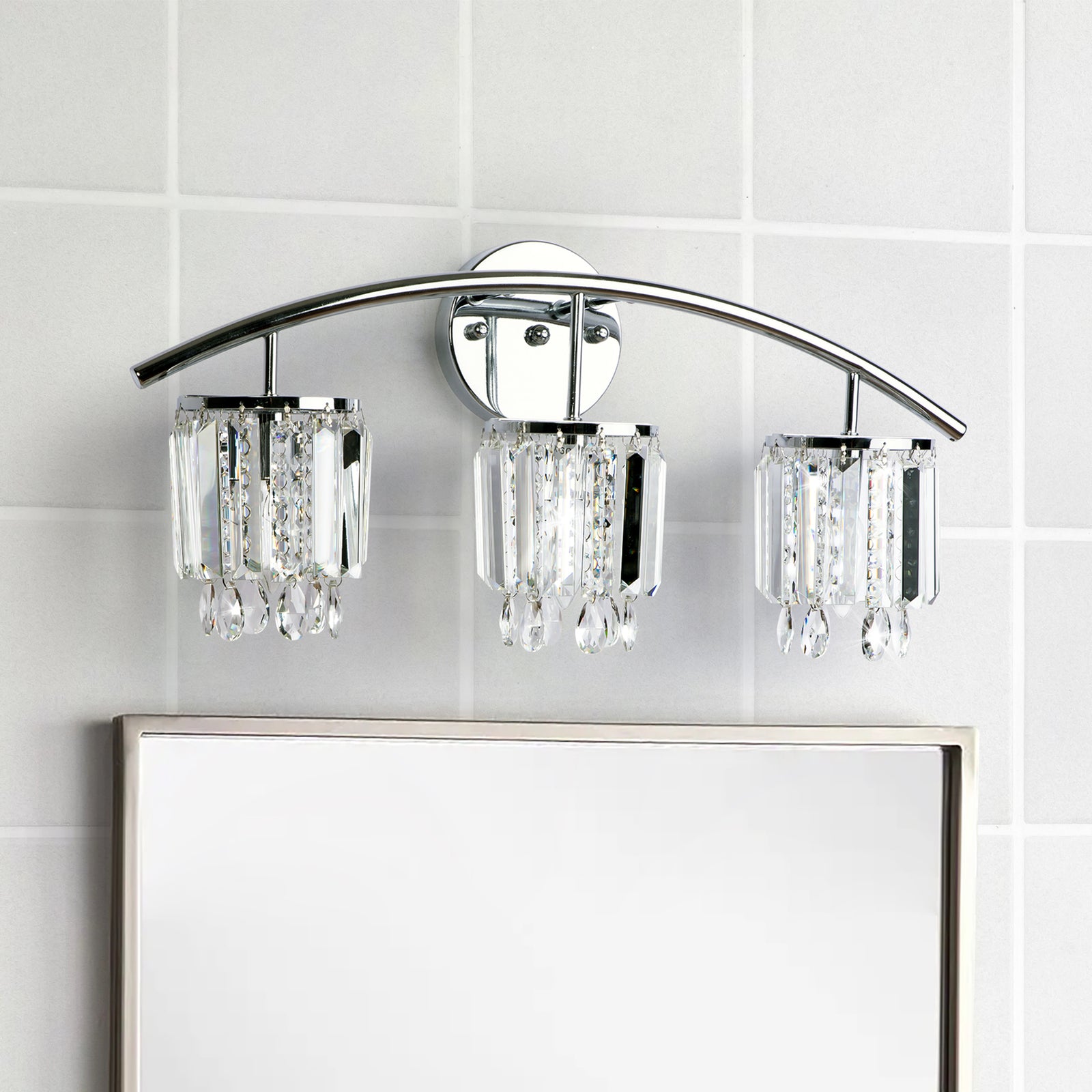 Ignore the mismatched paint in our bathroom, we’re in the process of remodeling a bit. This light was extremely easy to install, only took my husband a couple of minutes to do so. It’s sturdy and I like the look of it a lot. I just need to try some different bulbs in it if possible because the current lighting from the fixture isn’t as bright as I would like.