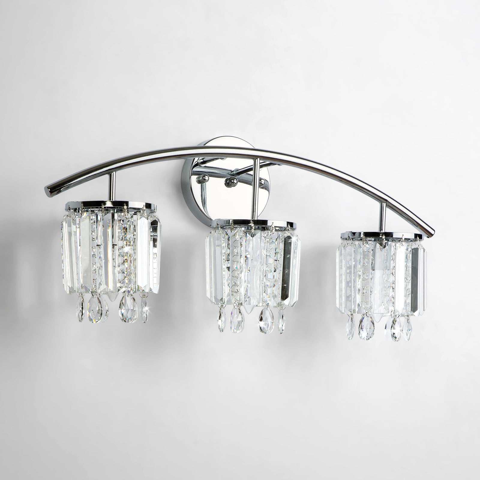It is a beautiful chandelier. It took some time to figure out and assemble. The design was too ornate for my humble dining room with a standard high ceiling, so eliminated bottom danglers and connecting danglers. With no danglers, the bottom of the chandelier is about 6 feet from the floor. The light bulbs make a big difference in their look. I used traditional standard CLEAR light bulbs for a sparkling effect. The plain ceiling medallion was also installed.