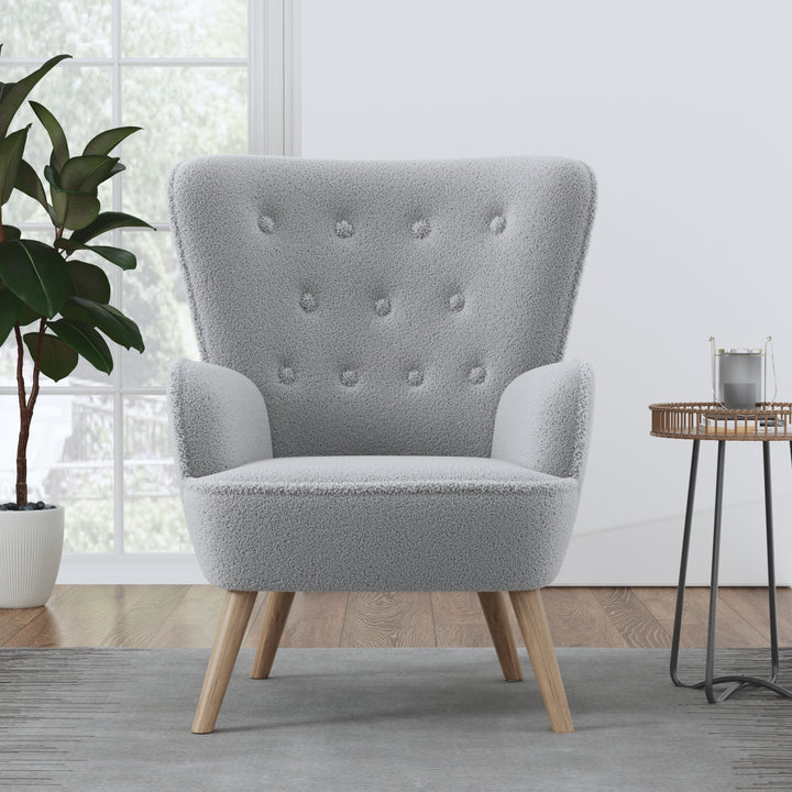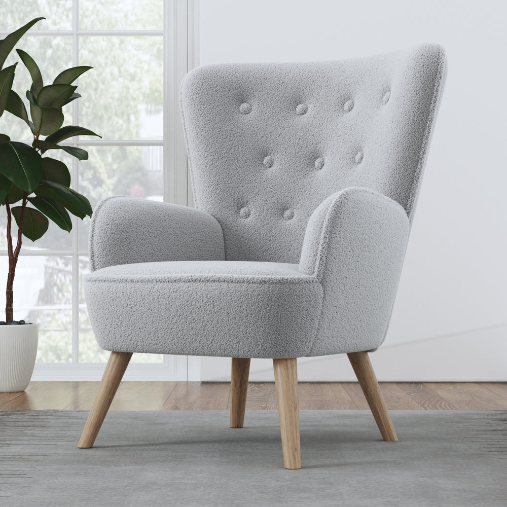 - Morden and classic style: this armchair is for the living room with soft polyester material which provides you with a comfortable sitting experience. The upholstery and button-tufted design make it a focal point in any home or office.