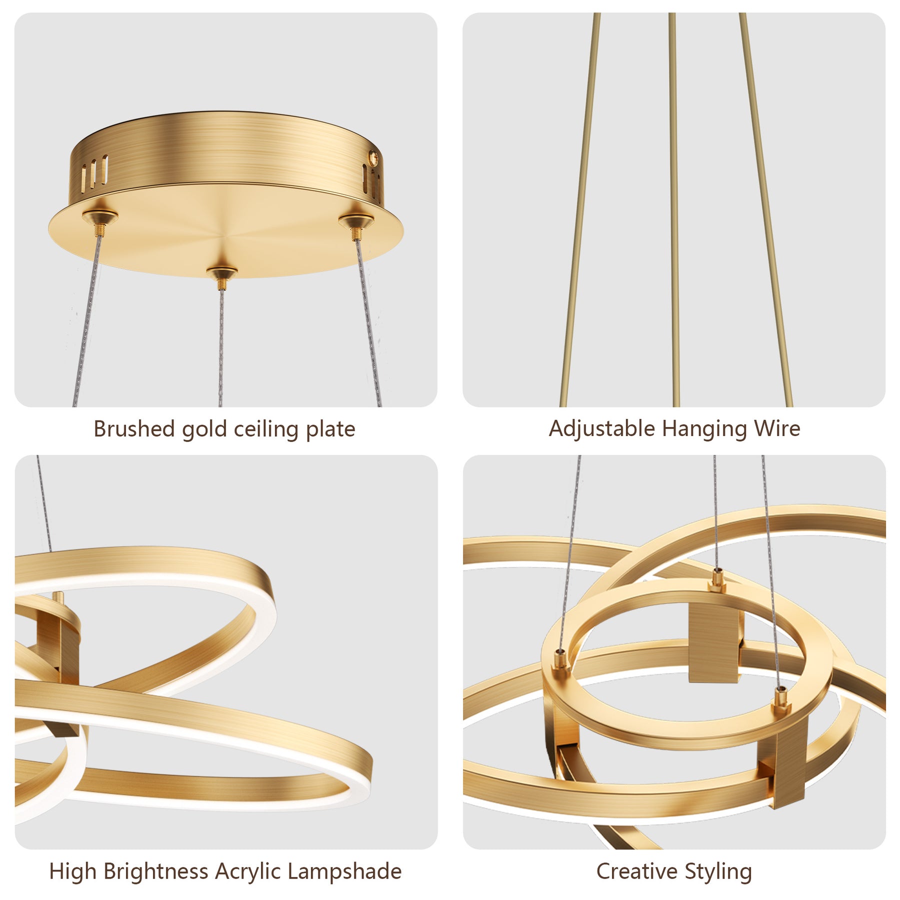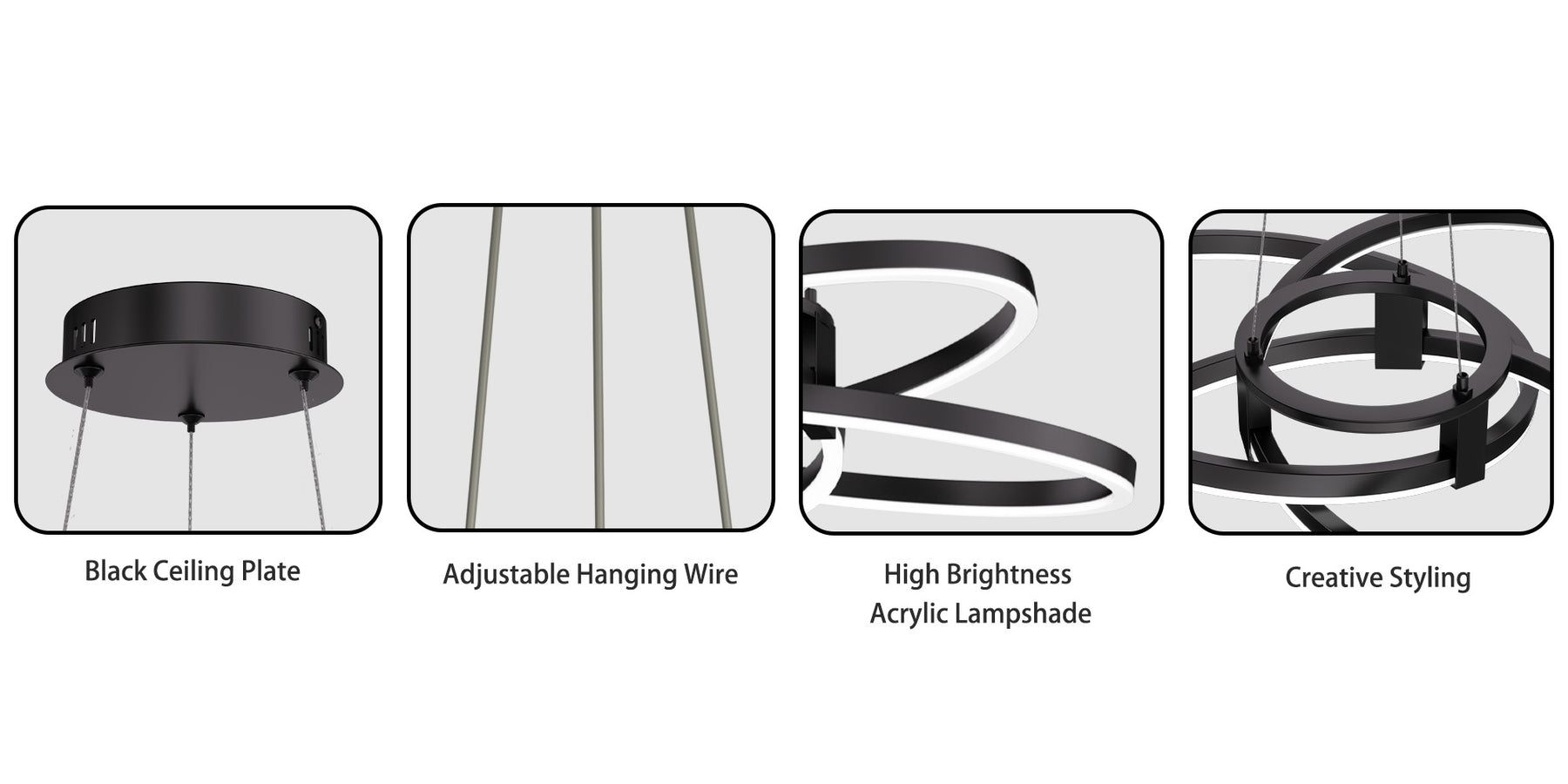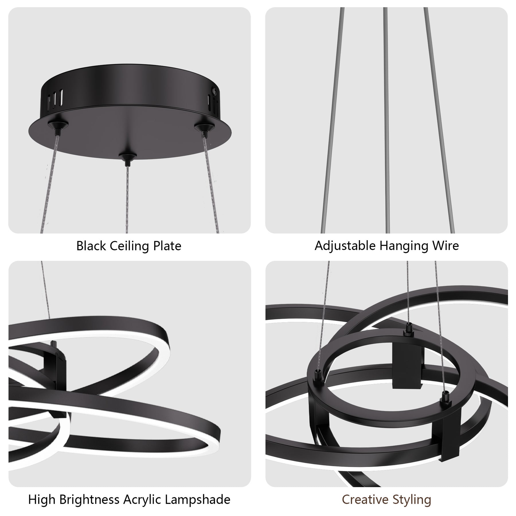 - Adjustable Hanging Height (Up to 62") — Flexible cable system allows precise customization for high or low ceilings.