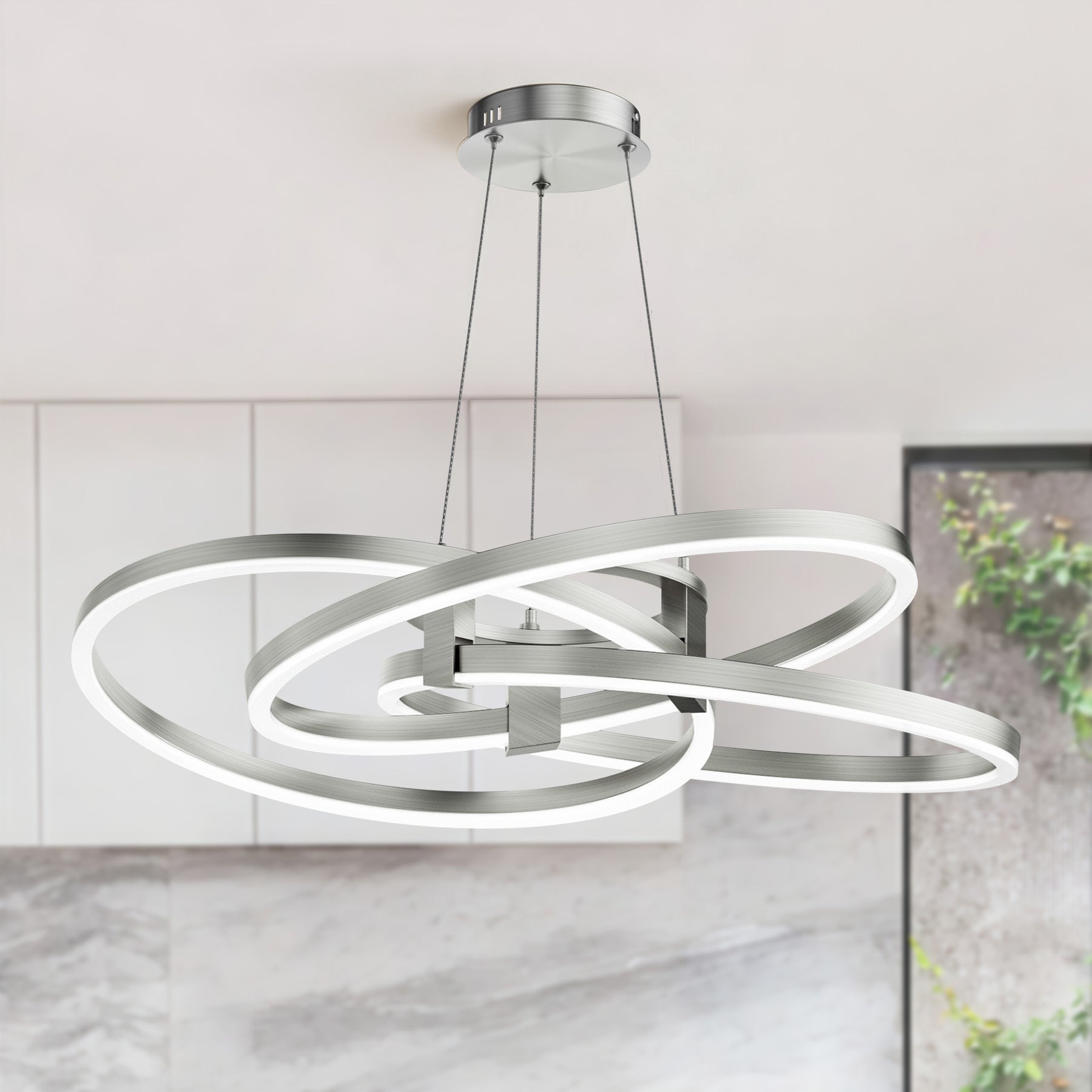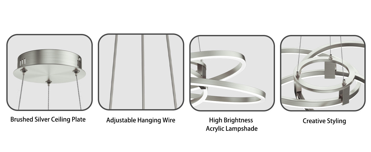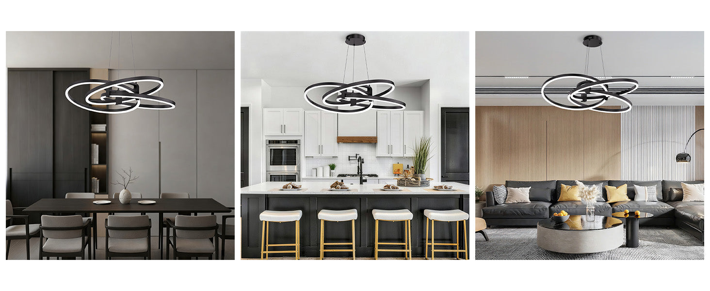 - Modern Geometric Design — Interlocking LED rings create a dynamic sculptural look that elevates any contemporary interior.