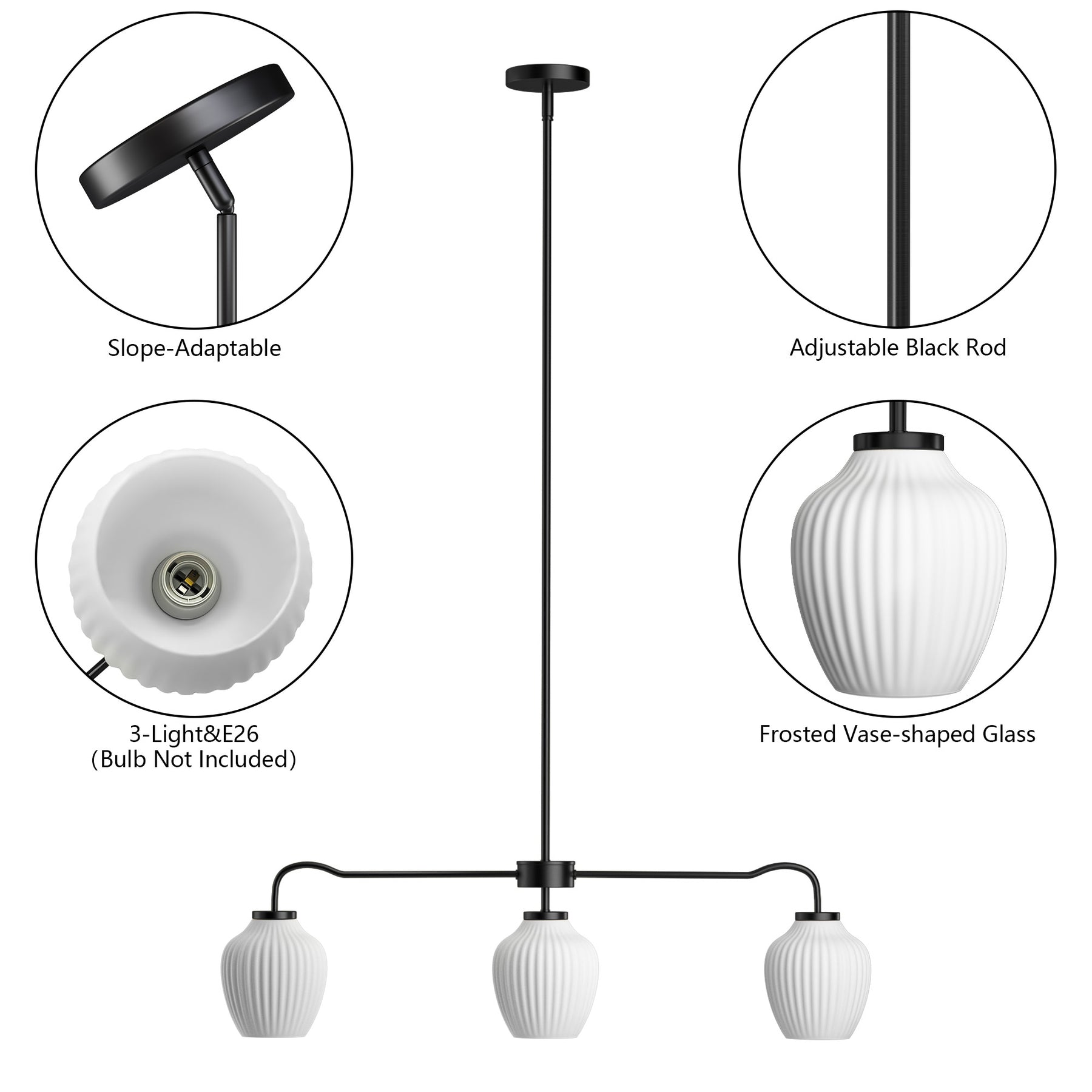 - Adjustable Hanging Height (Up to 42") — Includes adjustable downrods for customized installation on different ceiling heights.