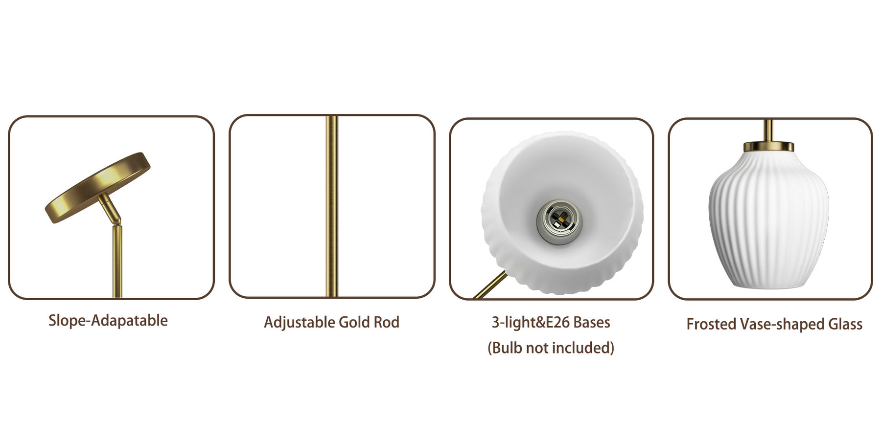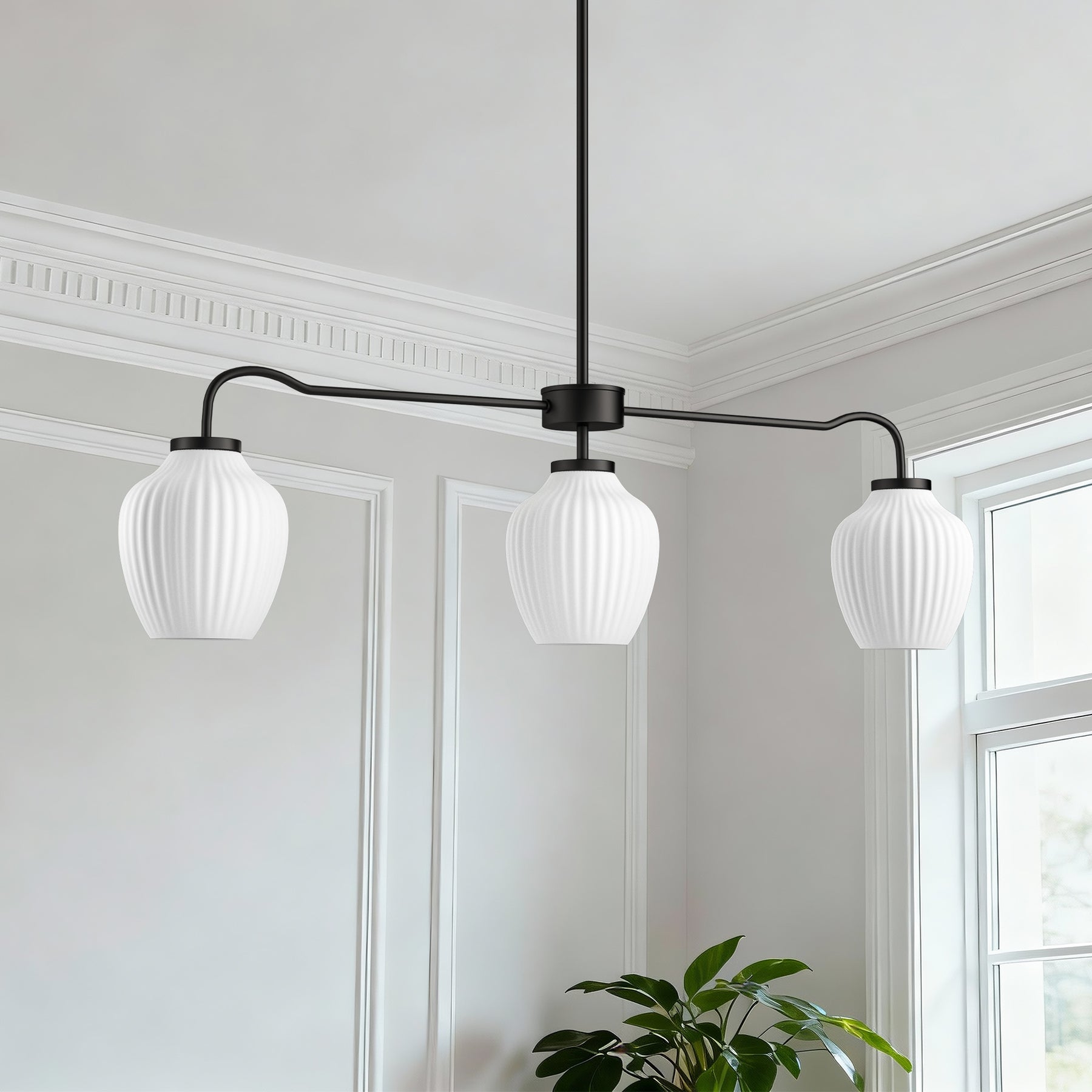 - White Frosted Glass Vase Shades — Softly diffuses light to reduce glare while adding a clean, elegant touch.