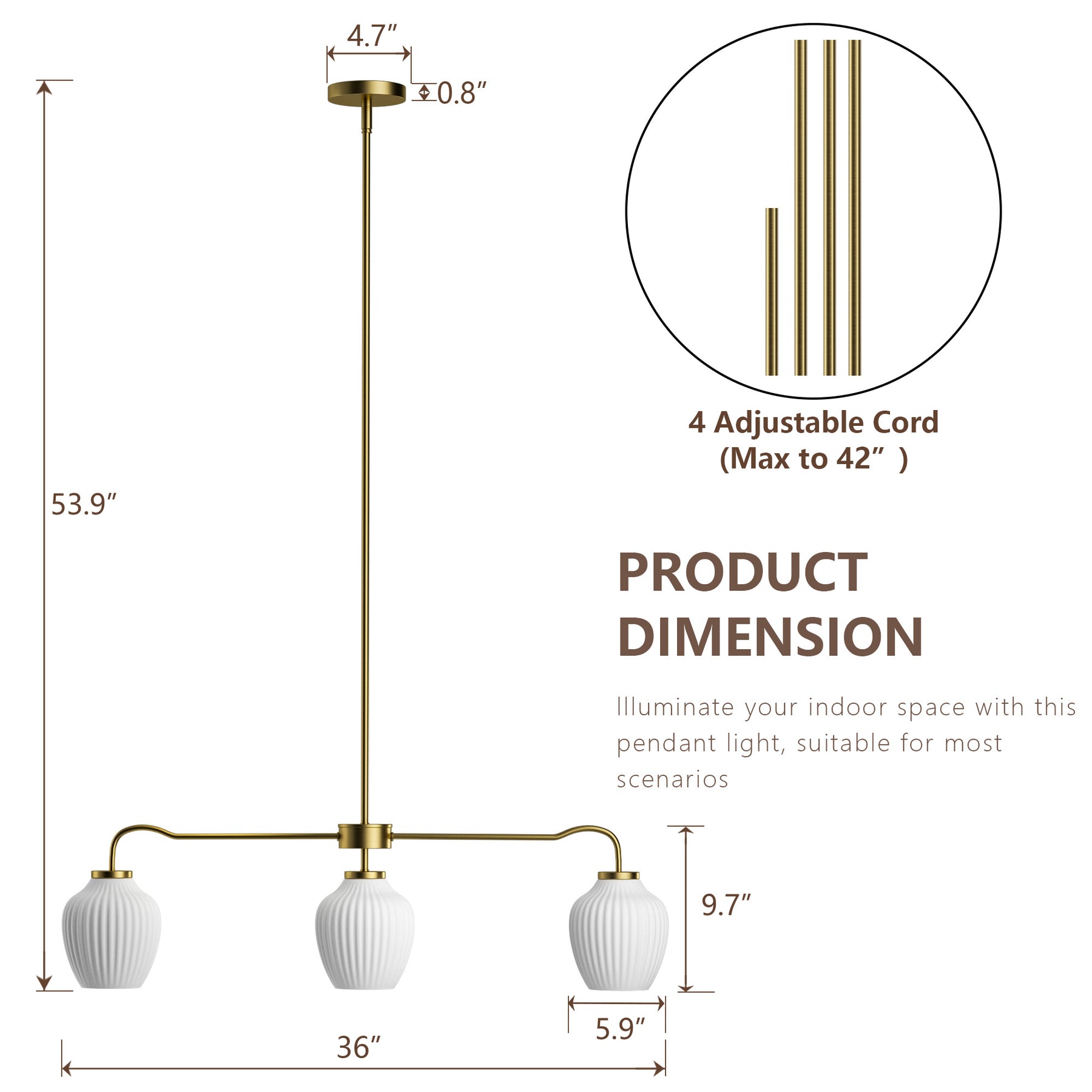 - Wide 36" Modern Design — Ideal scale for dining tables and kitchen islands, creating balanced, even illumination.