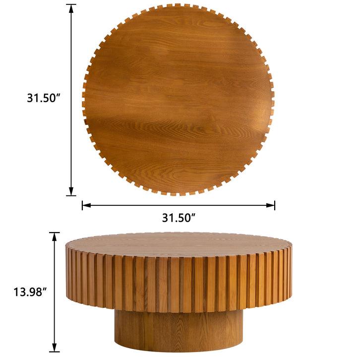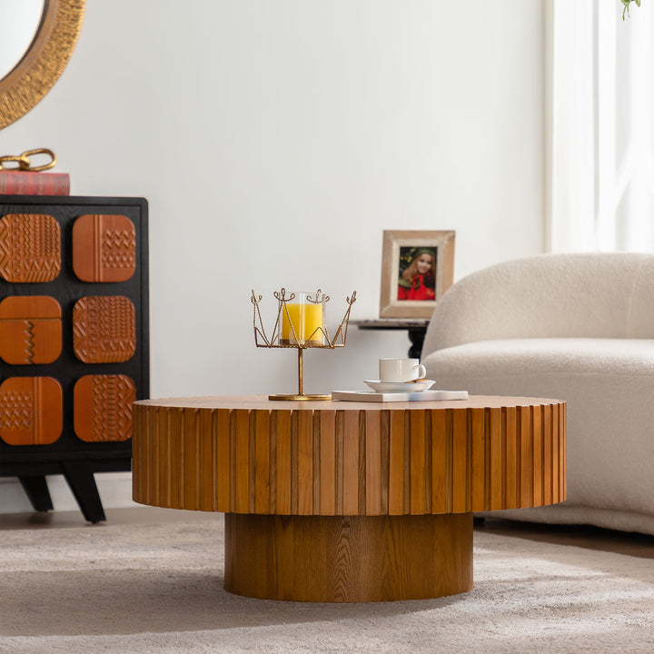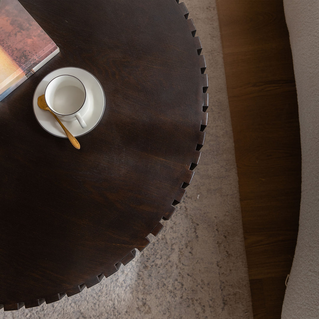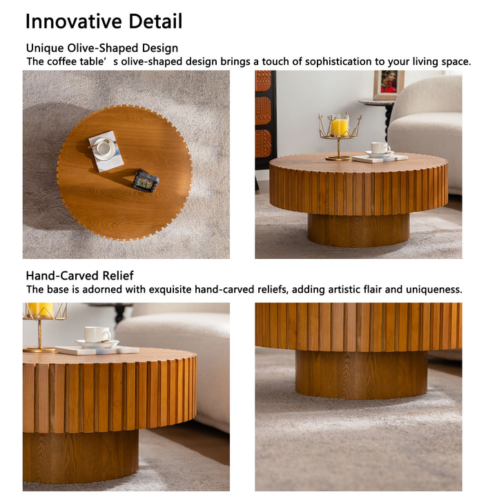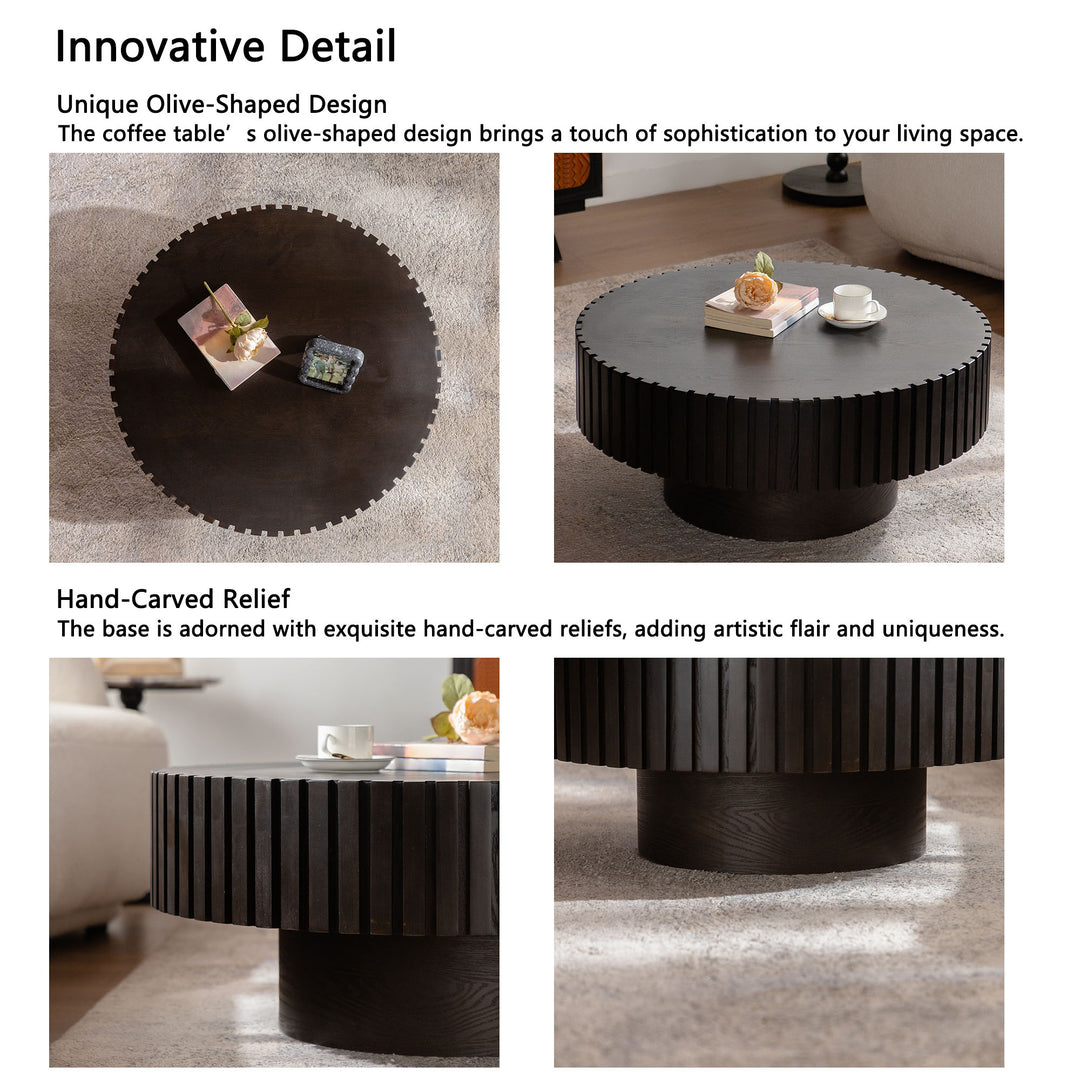 Timeless Round Coffee Table Handcrafted Relief Wooden Olive-Shaped Tea Table For Living Room #25014