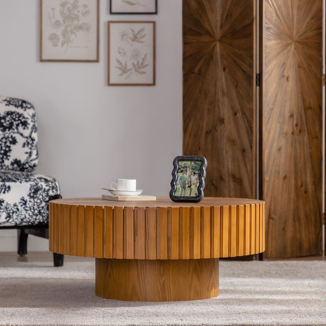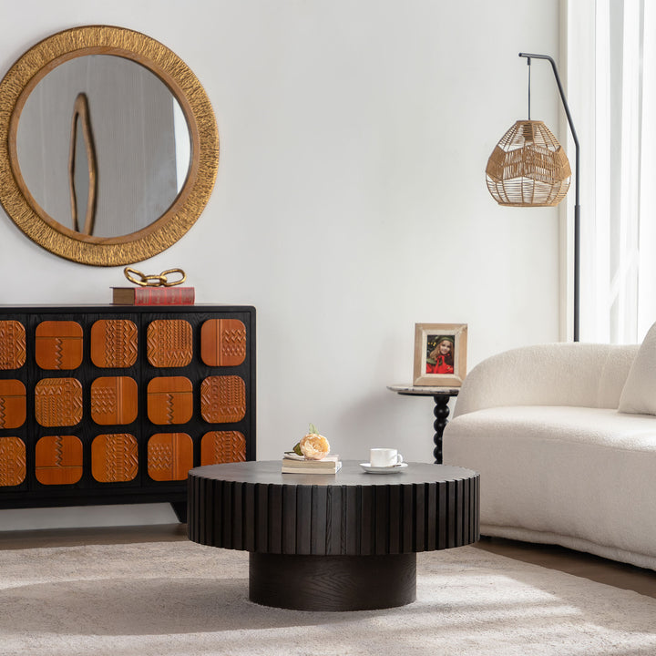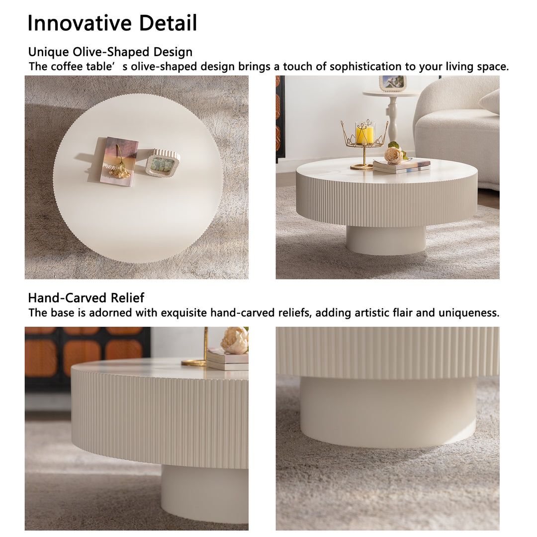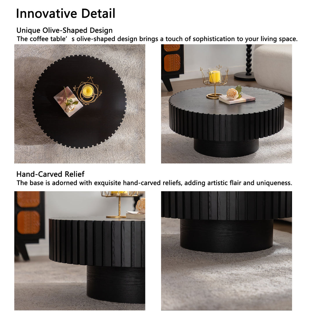 I couldn’t be happier with this Timeless Round Coffee Table! The handcrafted relief design is truly a work of art, adding a unique and elegant touch to my living room. The olive-shaped design makes it stand out beautifully, and the quality of the wood is exceptional—sturdy, durable, and clearly made with great craftsmanship.