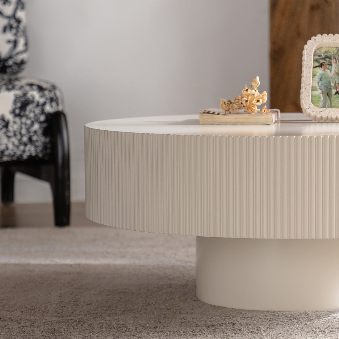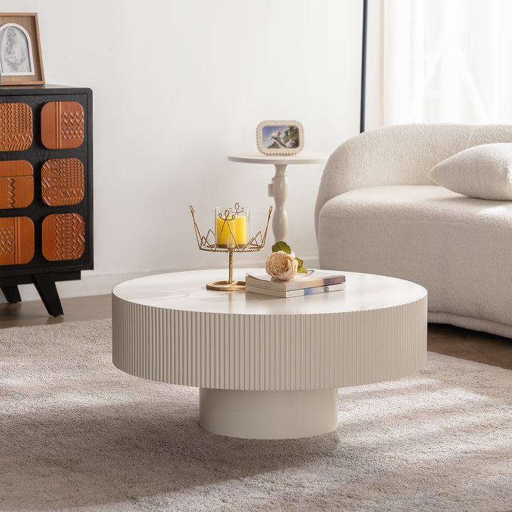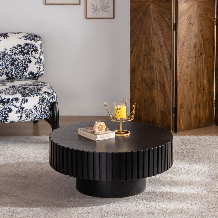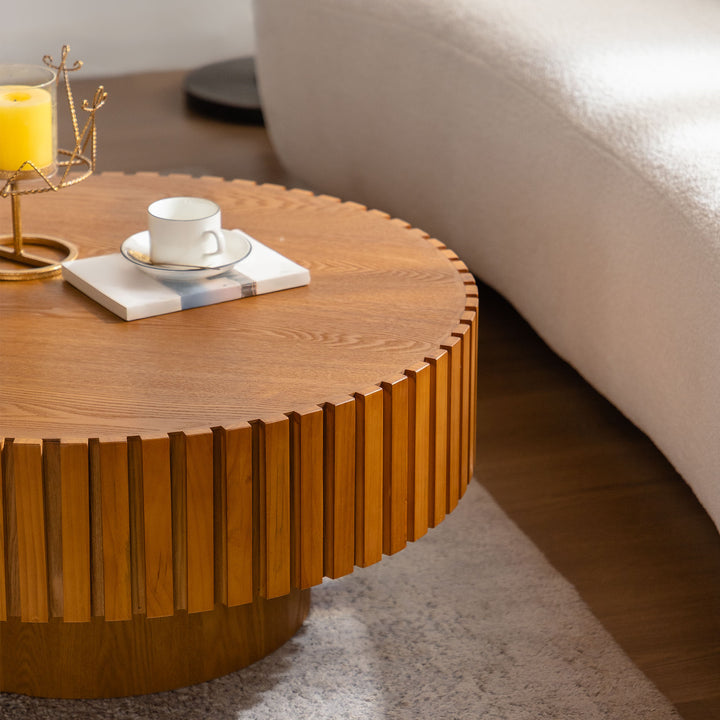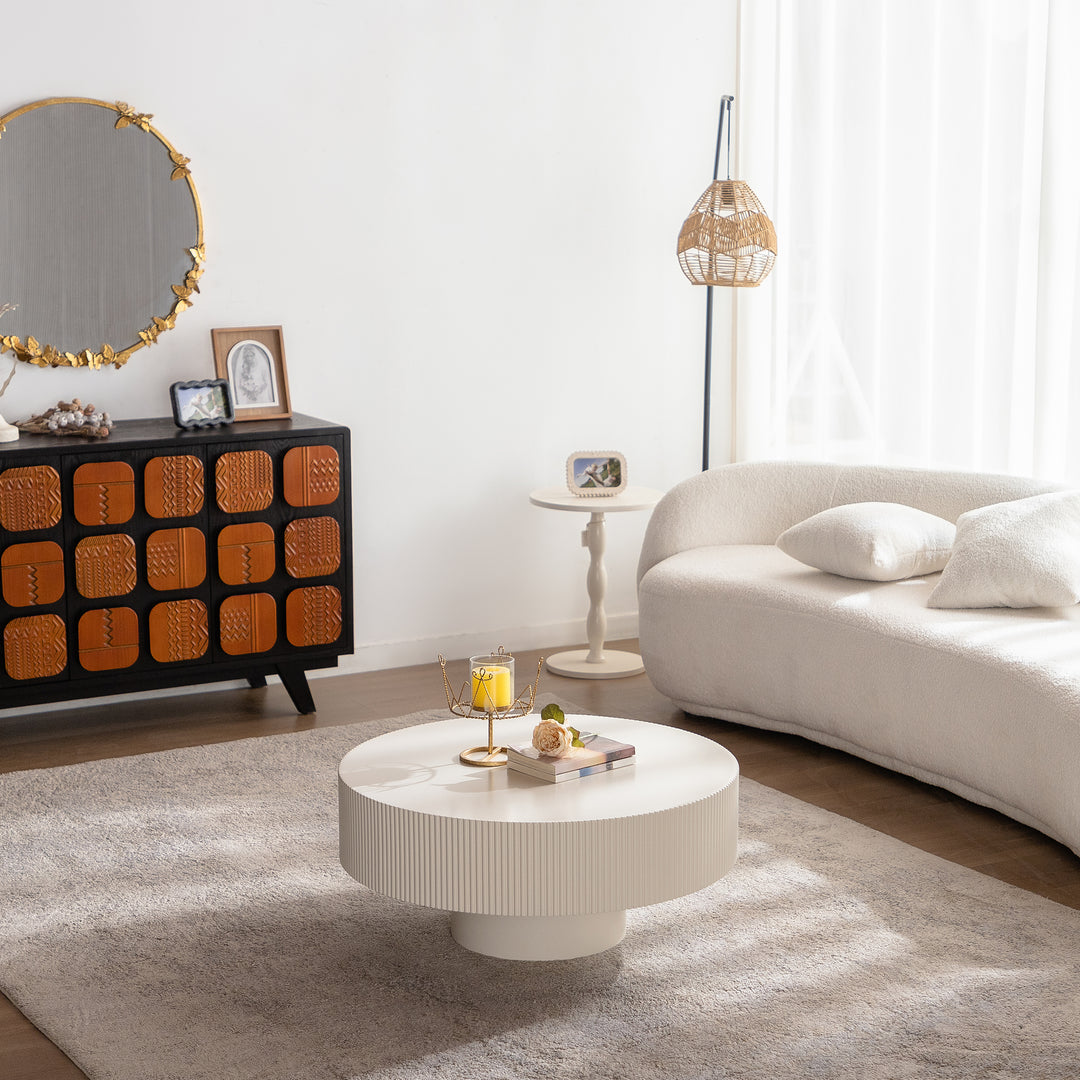 I couldn’t be happier with this Timeless Round Coffee Table! The handcrafted relief design is truly a work of art, adding a unique and elegant touch to my living room. The olive-shaped design makes it stand out beautifully, and the quality of the wood is exceptional—sturdy, durable, and clearly made with great craftsmanship.