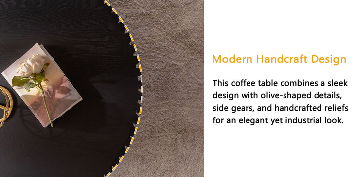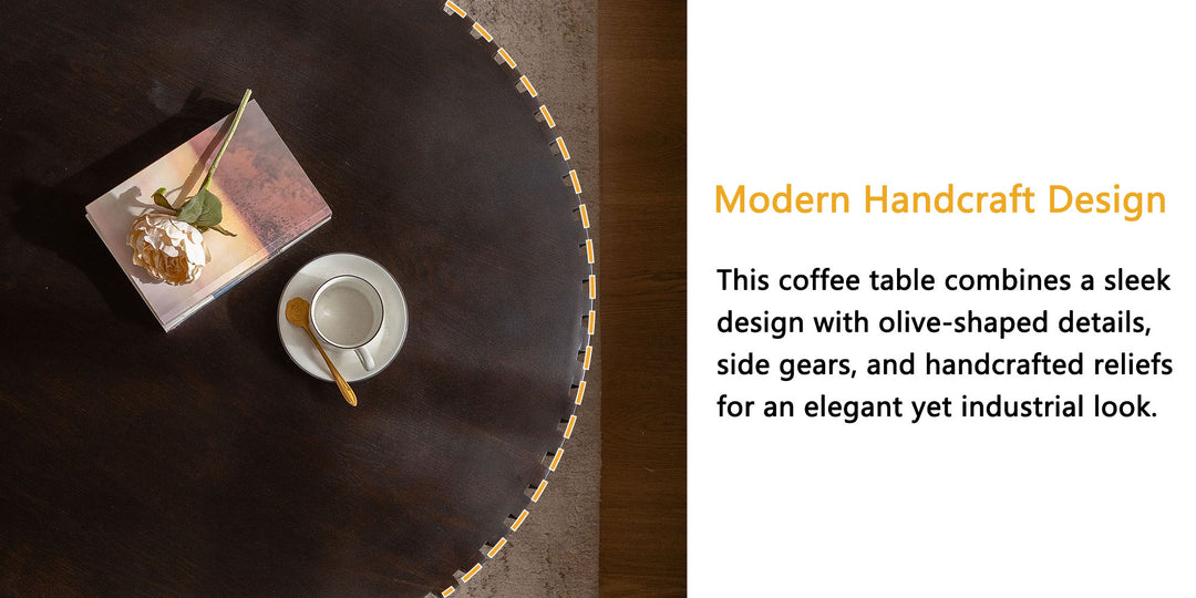 • Modern Handcraft Design: The overall design of this coffee table is fashionable and simple, with small olive-shaped. The design of the side gears and grooves makes it both elegant and industrial. And the surrounding grooves and reliefs are all handmade designs.