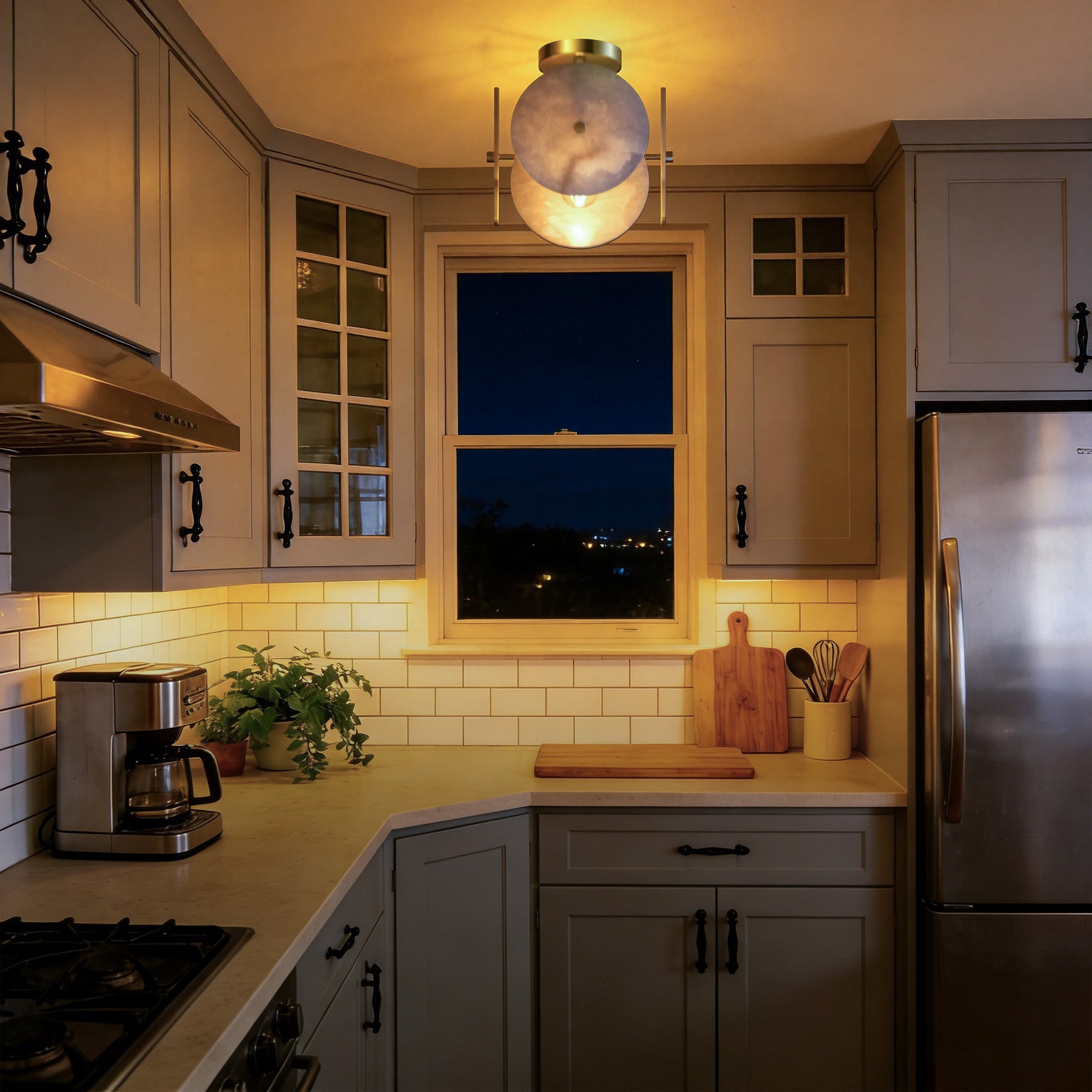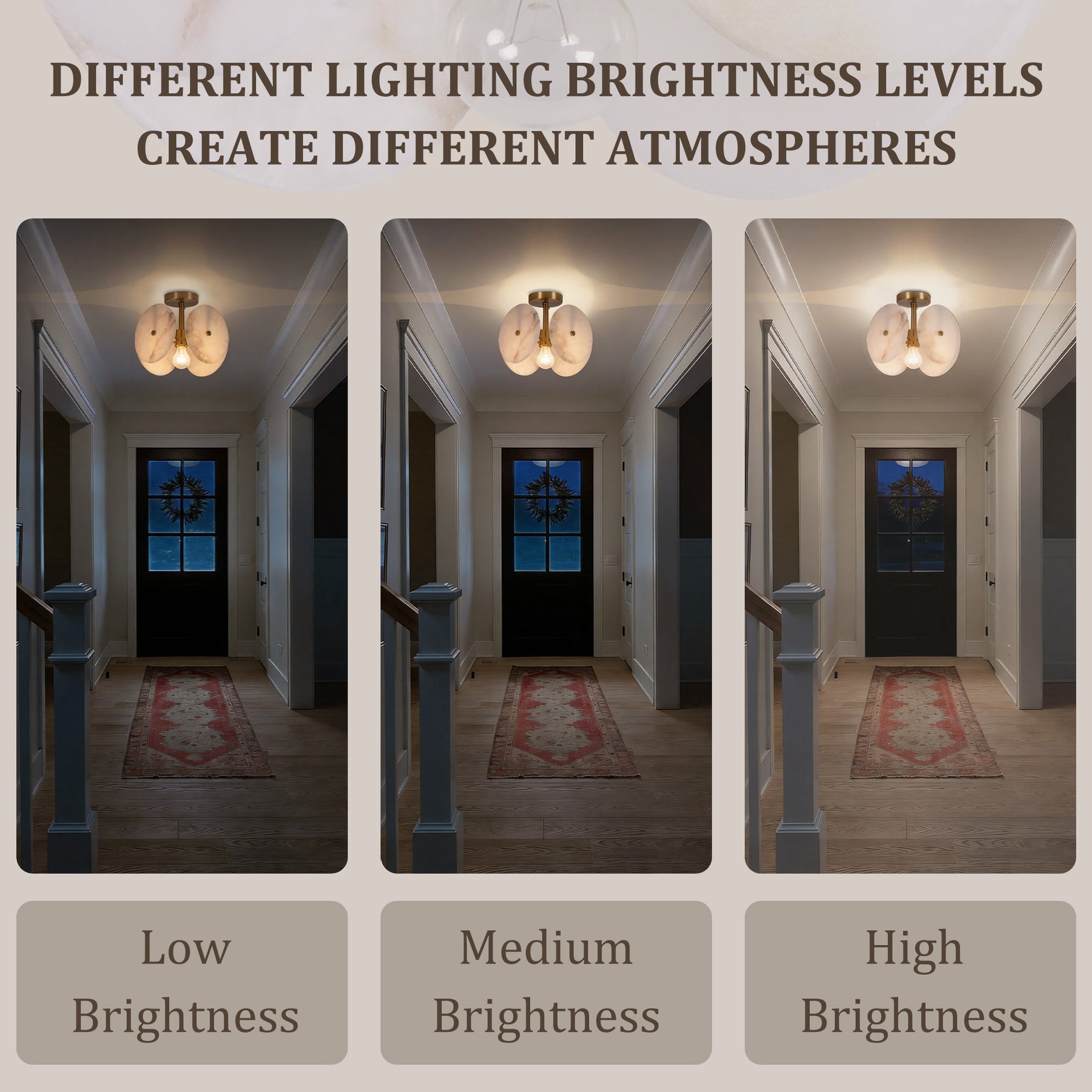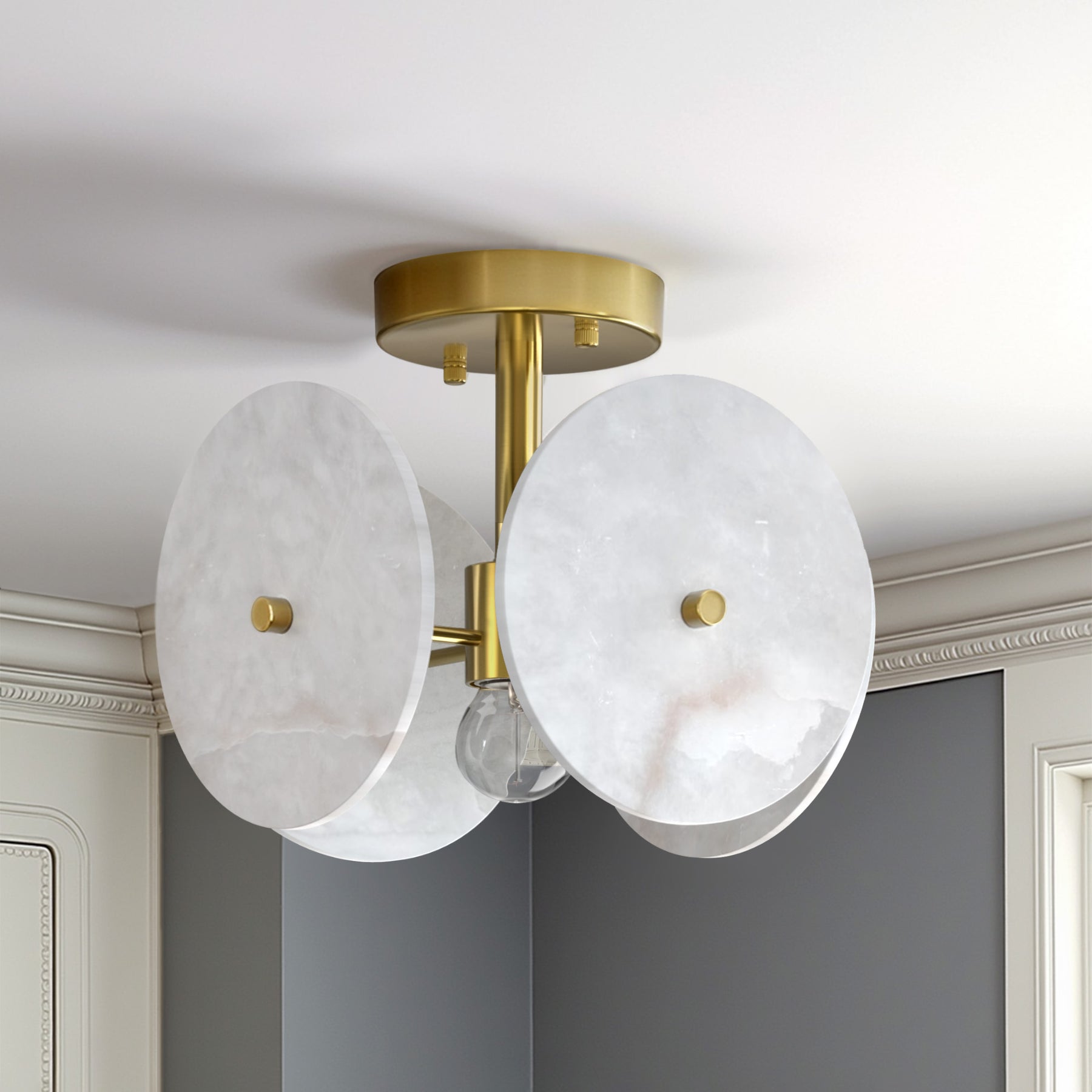 Nest 9.8" 1-Light Modern Brushed Brass Unique/Statement Semi-Flush Mount With White Jade Marble Shade For Hallways, Stairwells & Dining Rooms #19237