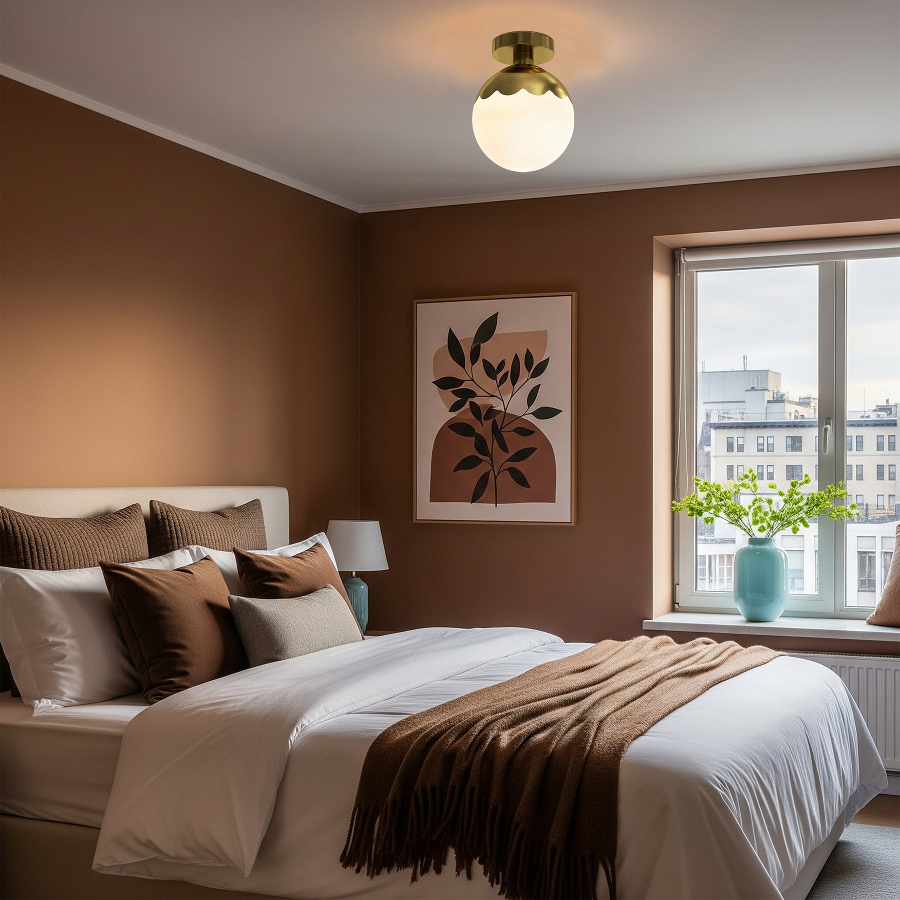 Soft Ambient Lighting – The milky glass shade gently diffuses light, creating a cozy and glare-free environment.