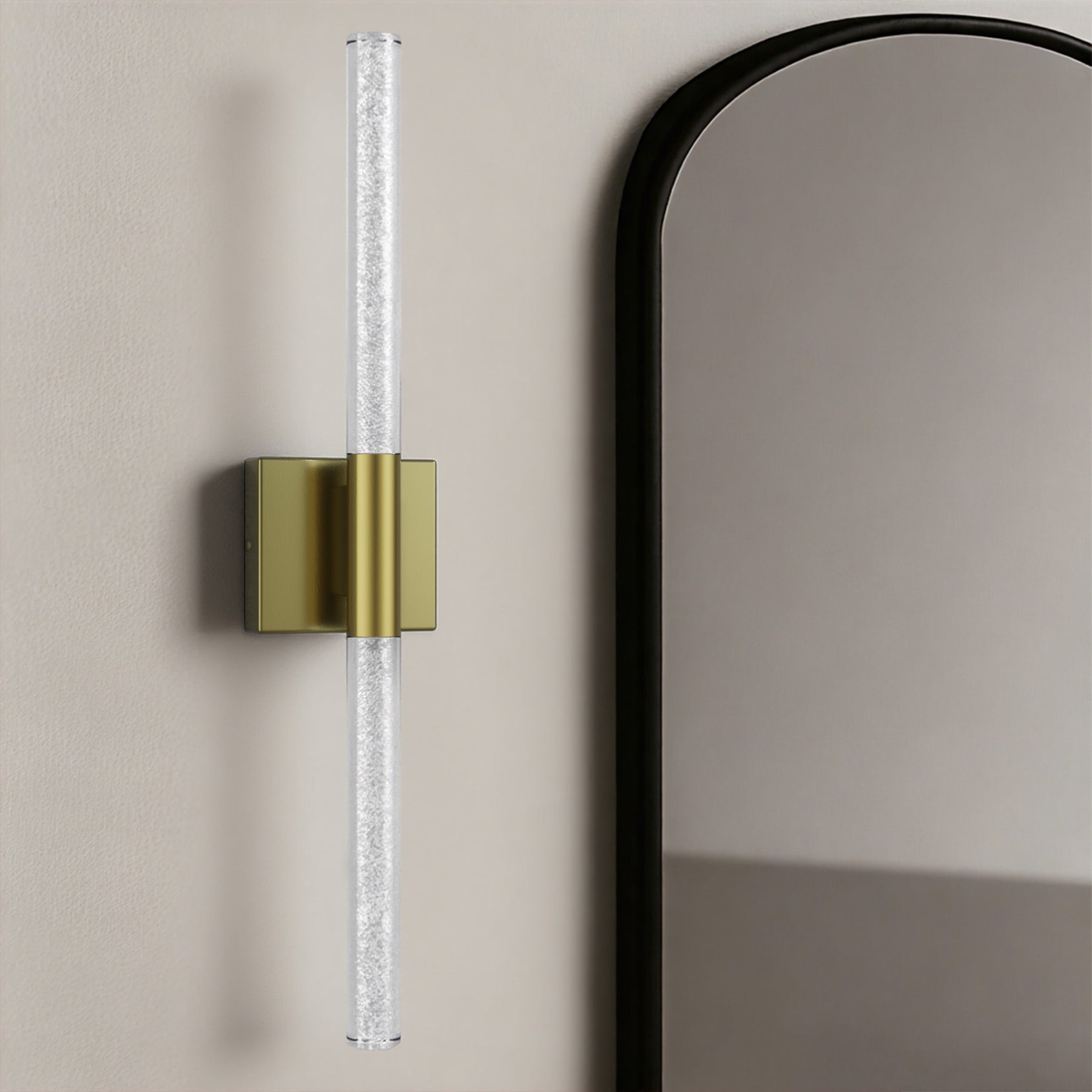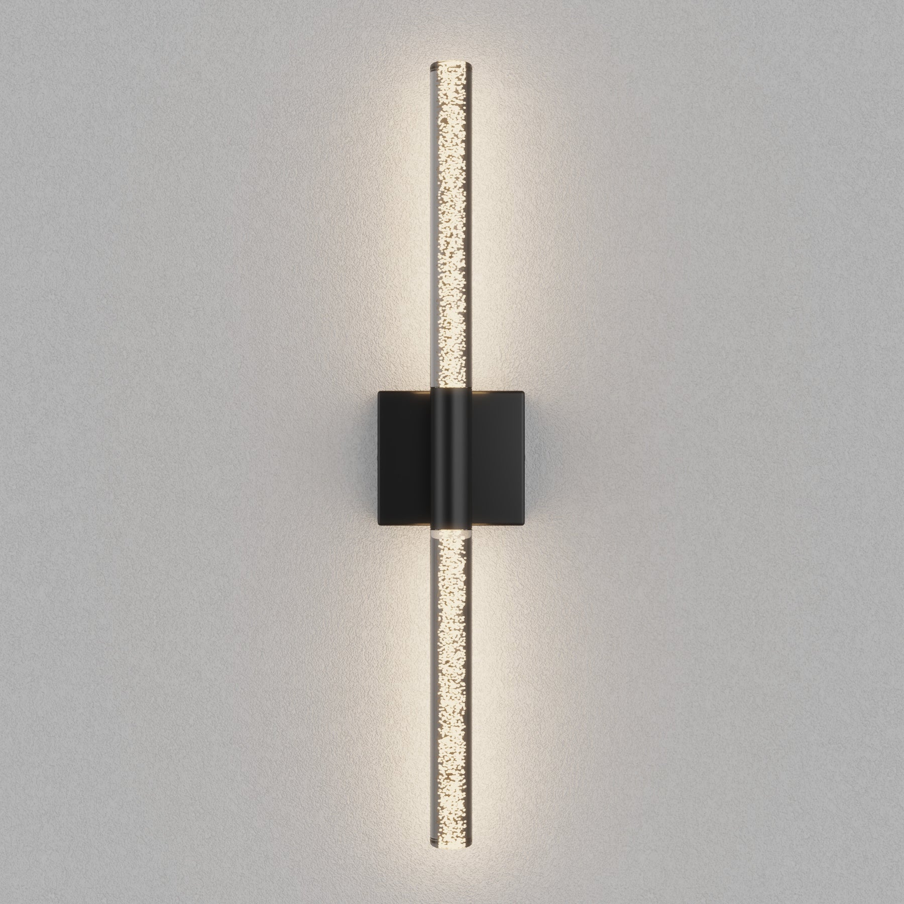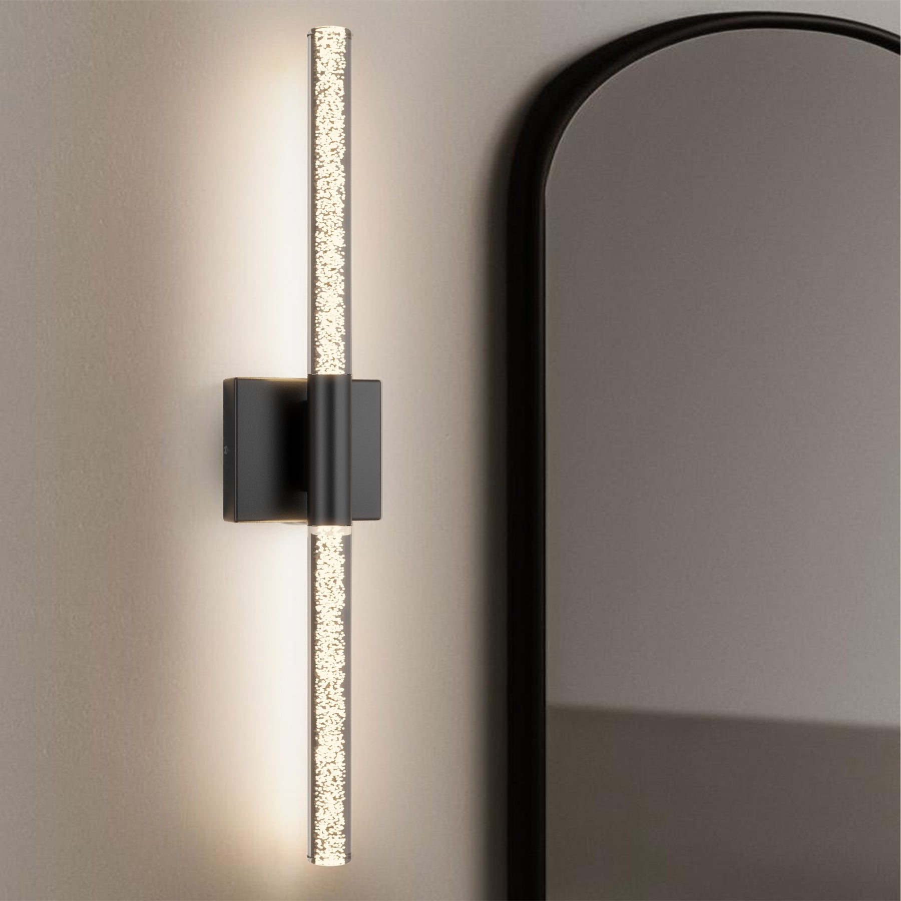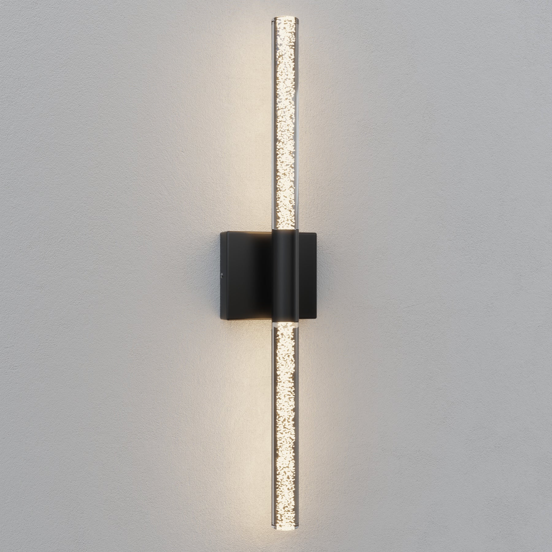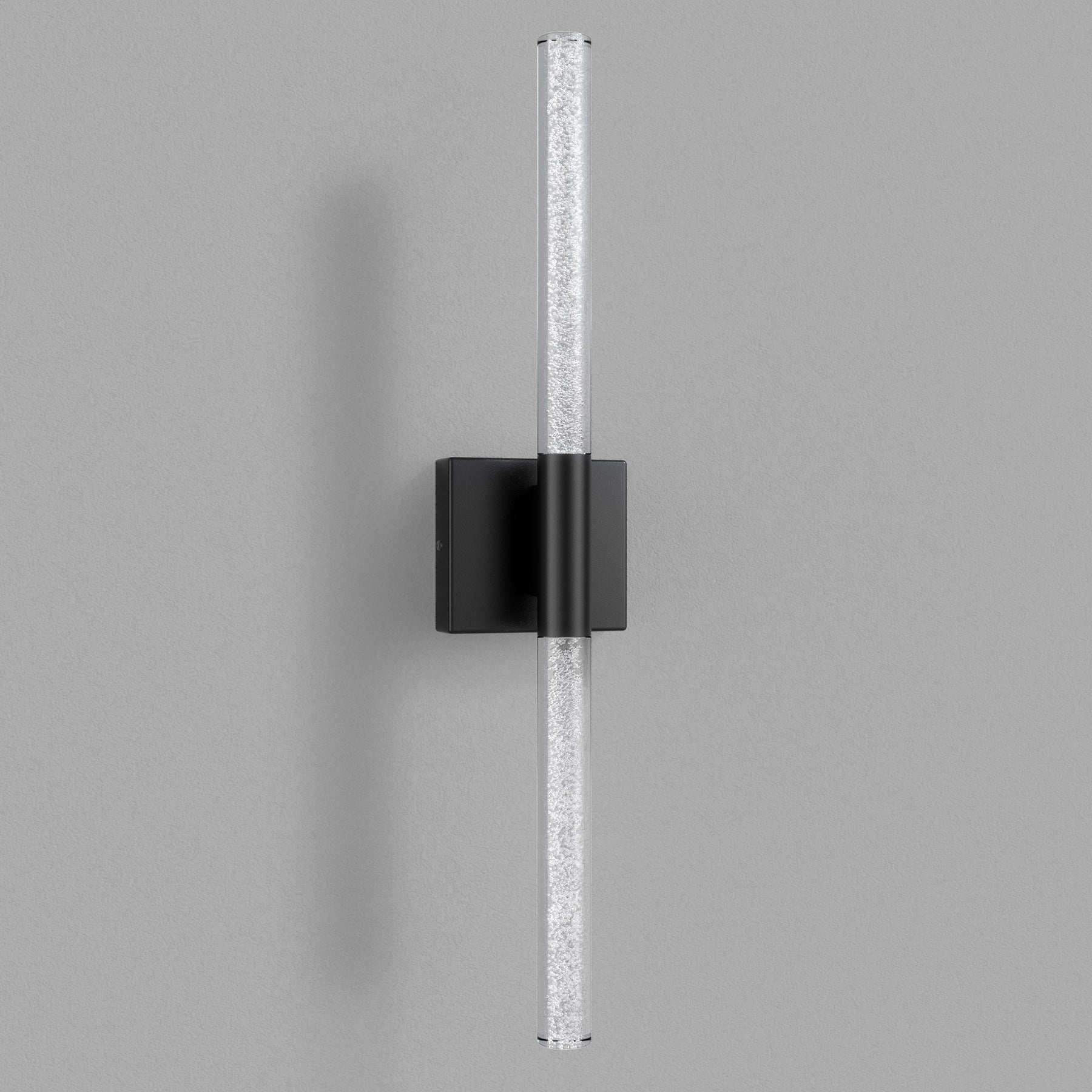 This 24'' integrated LED outdoor sconce captivates with its sleek, minimalist design! Its standout feature is the unique silhouette formed by two slender tubes crafted from acrylic bubble glass, creating a stylish ambiance that immerses you in an atmosphere of elegant harmony. Constructed from premium metal, it boasts clean, flowing contours that infuse your space with contemporary flair. The built-in LED light source delivers soft, bright illumination while offering durability and energy efficiency, helping you save on long-term costs. With outstanding weather resistance, it's suitable for indoor, outdoor, and damp environments—enhancing the charm and sophistication of spaces like porches, backyards, or garages. Additionally, this wall light features dimming functionality compatible with dimmable switches, allowing you to effortlessly adjust the lighting to your desired effect.