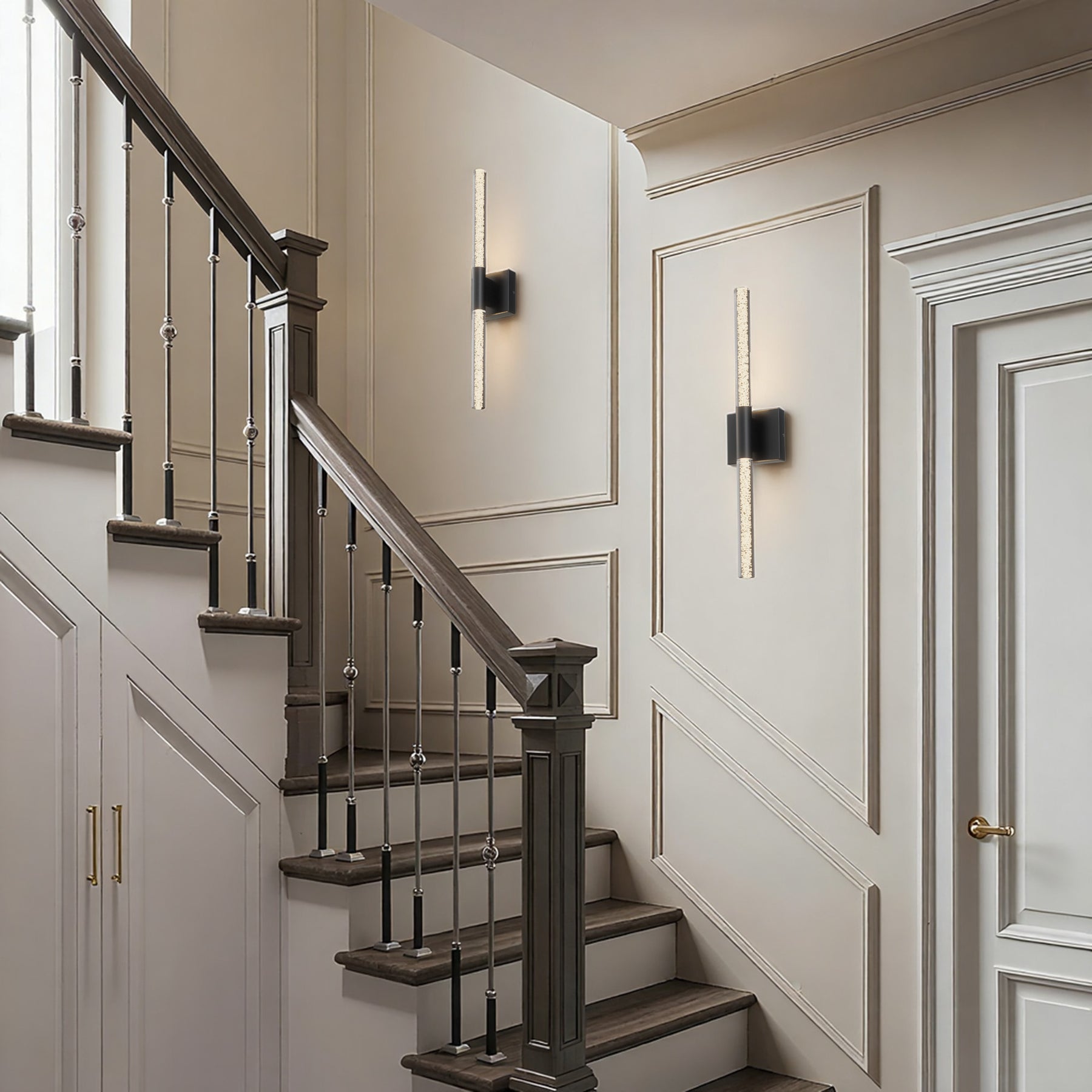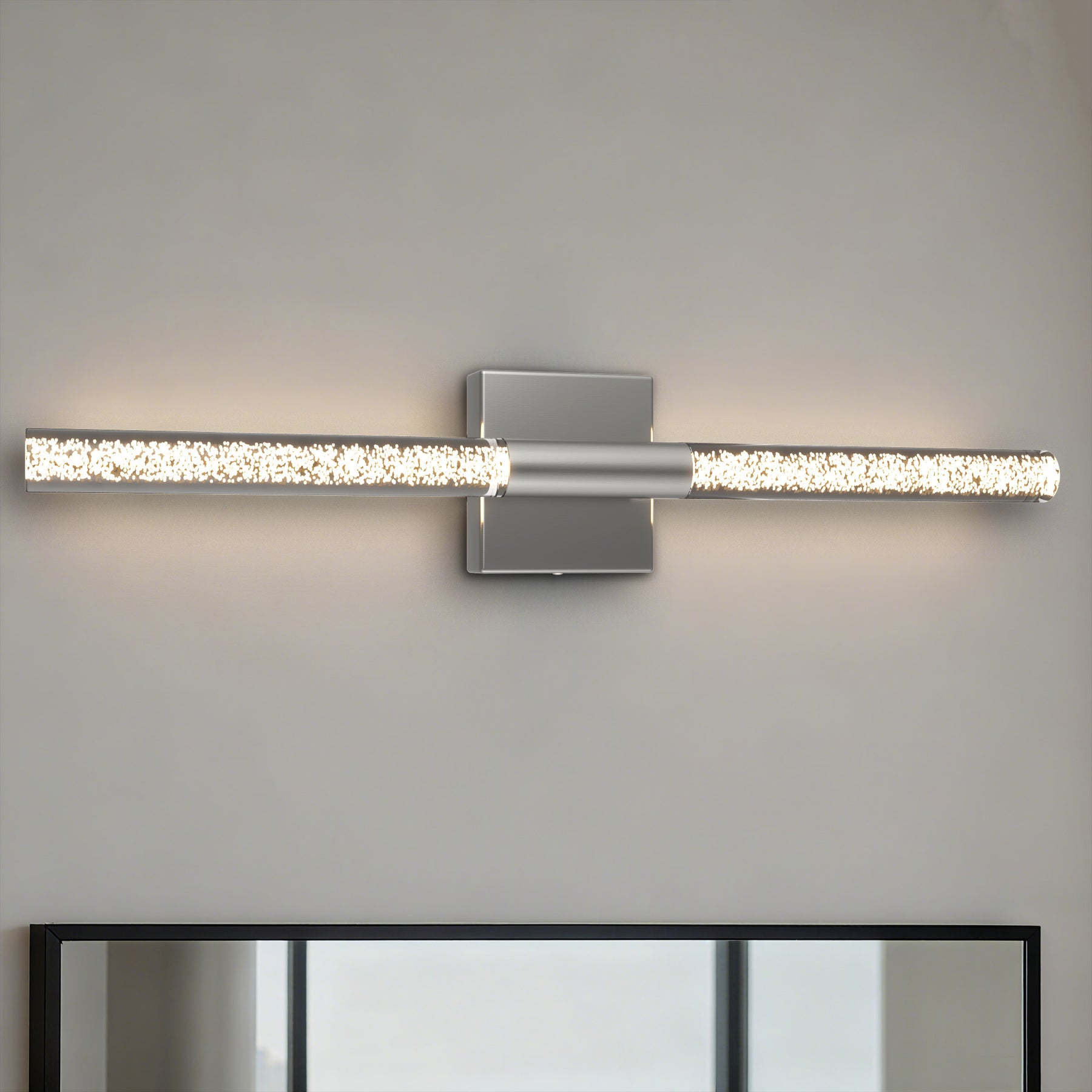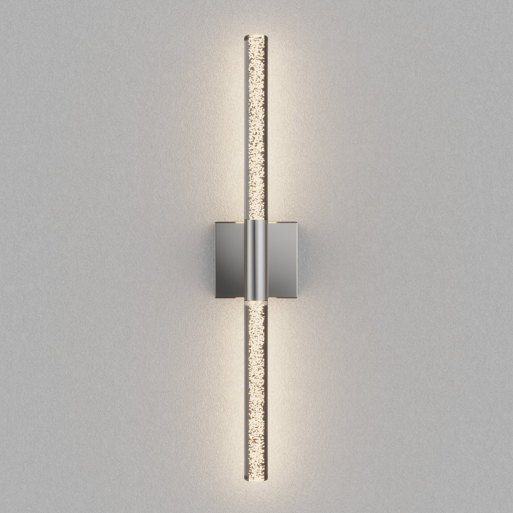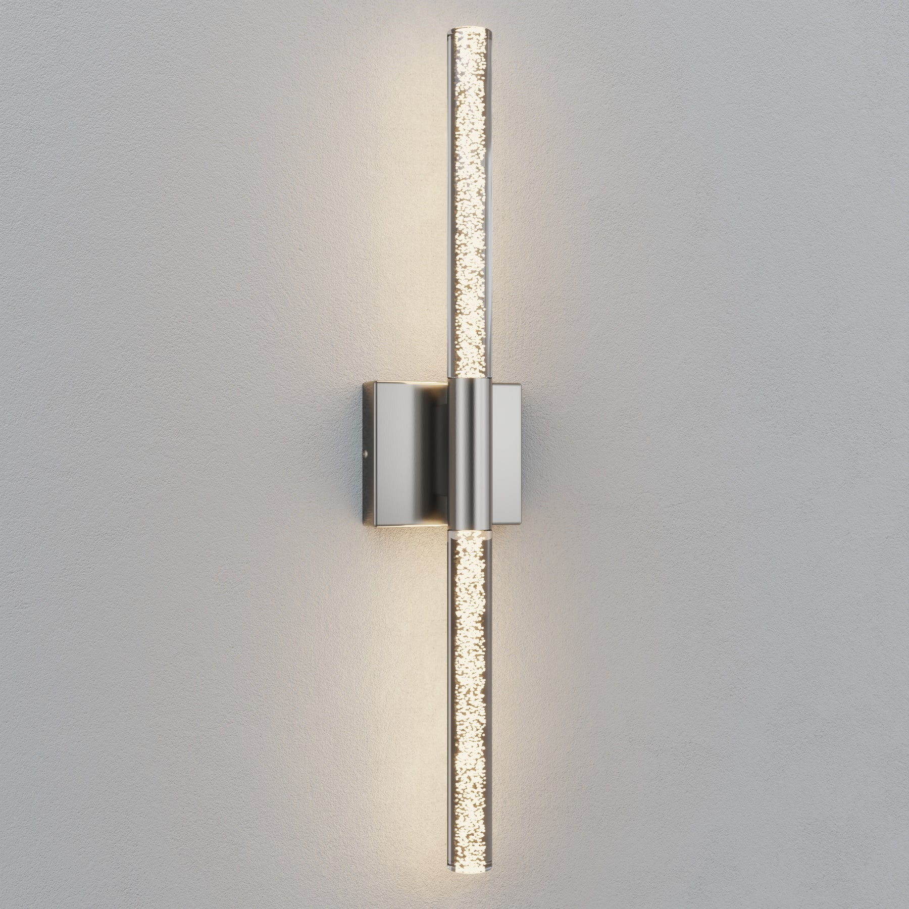 This 24'' integrated LED outdoor sconce captivates with its sleek, minimalist design! Its standout feature is the unique silhouette formed by two slender tubes crafted from acrylic bubble glass, creating a stylish ambiance that immerses you in an atmosphere of elegant harmony. Constructed from premium metal, it boasts clean, flowing contours that infuse your space with contemporary flair. The built-in LED light source delivers soft, bright illumination while offering durability and energy efficiency, helping you save on long-term costs. With outstanding weather resistance, it's suitable for indoor, outdoor, and damp environments—enhancing the charm and sophistication of spaces like porches, backyards, or garages. Additionally, this wall light features dimming functionality compatible with dimmable switches, allowing you to effortlessly adjust the lighting to your desired effect.