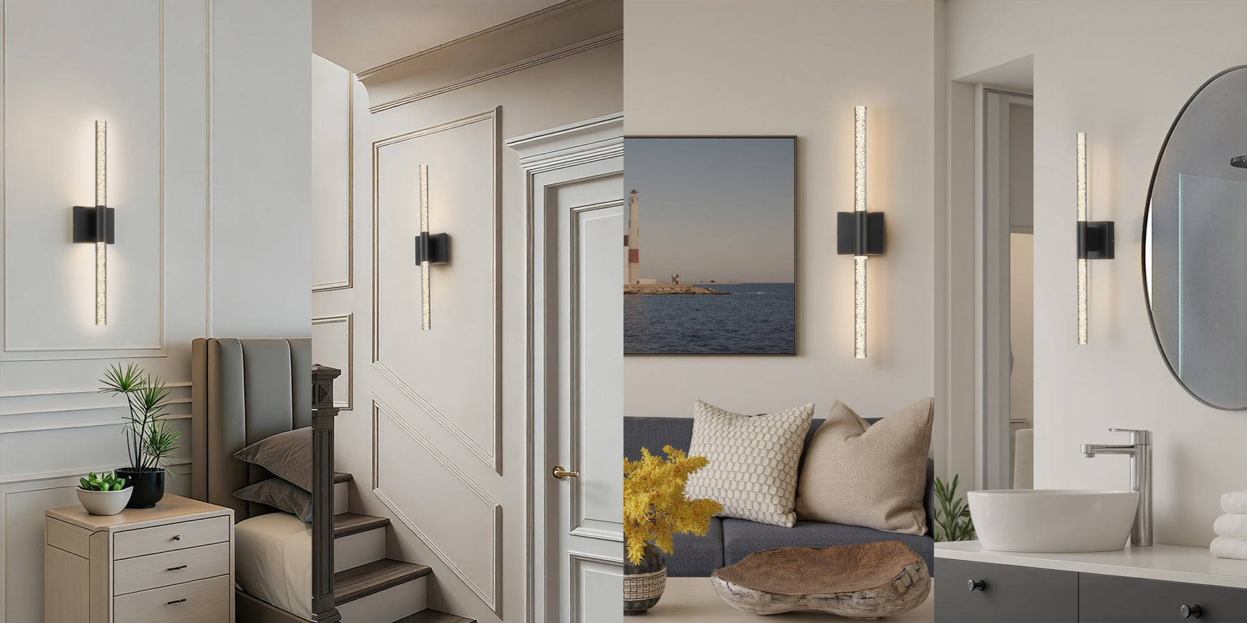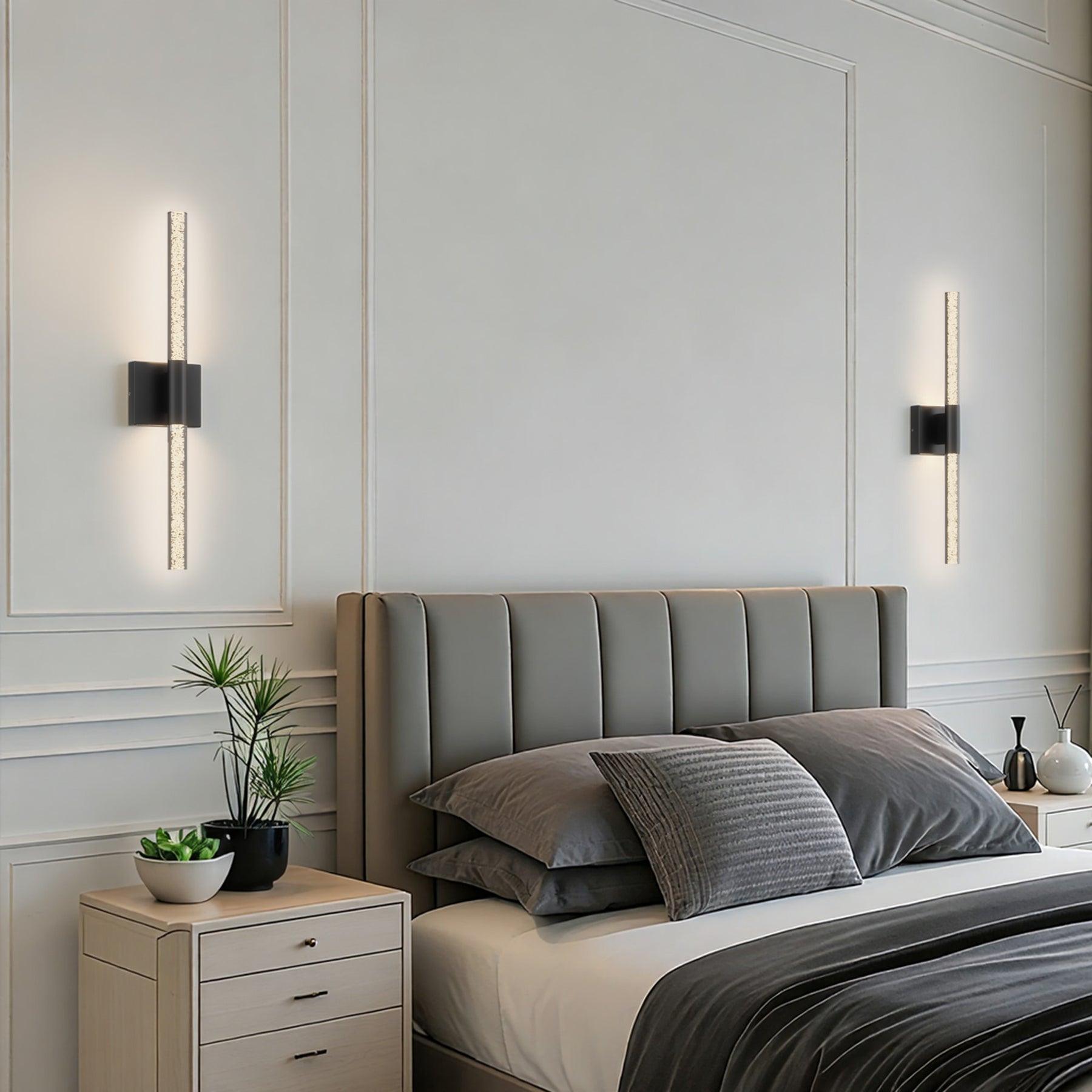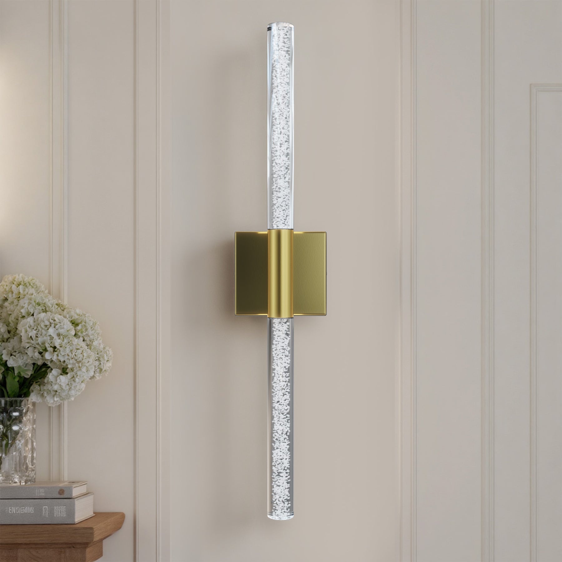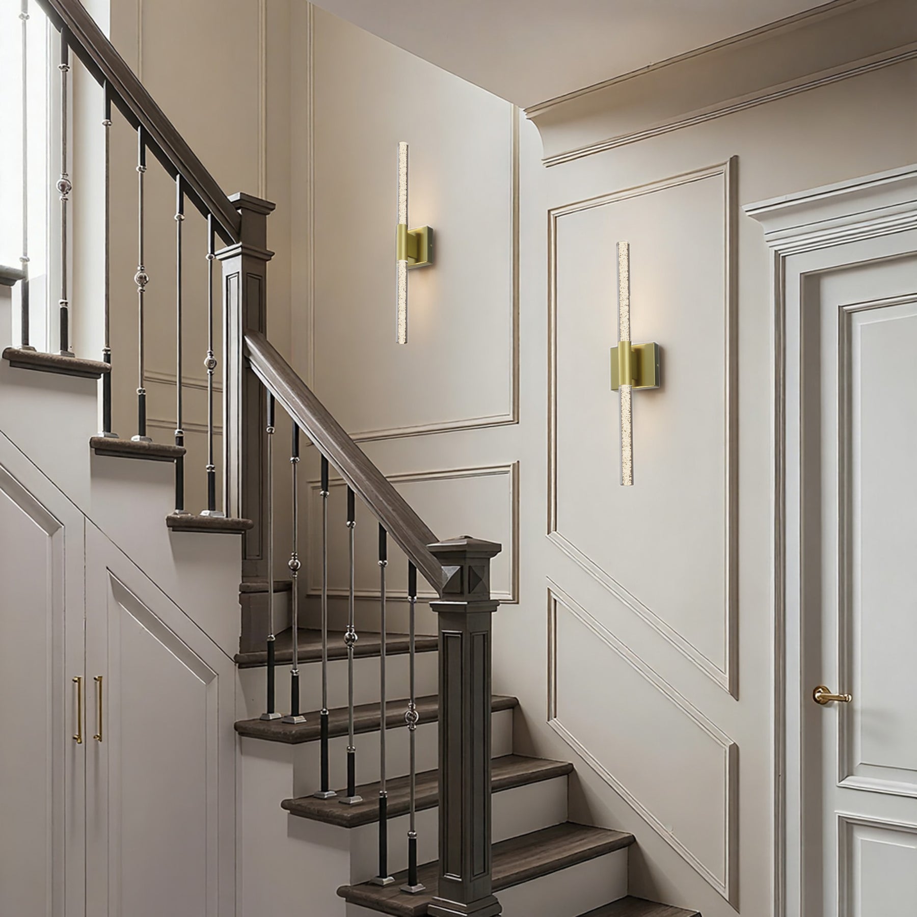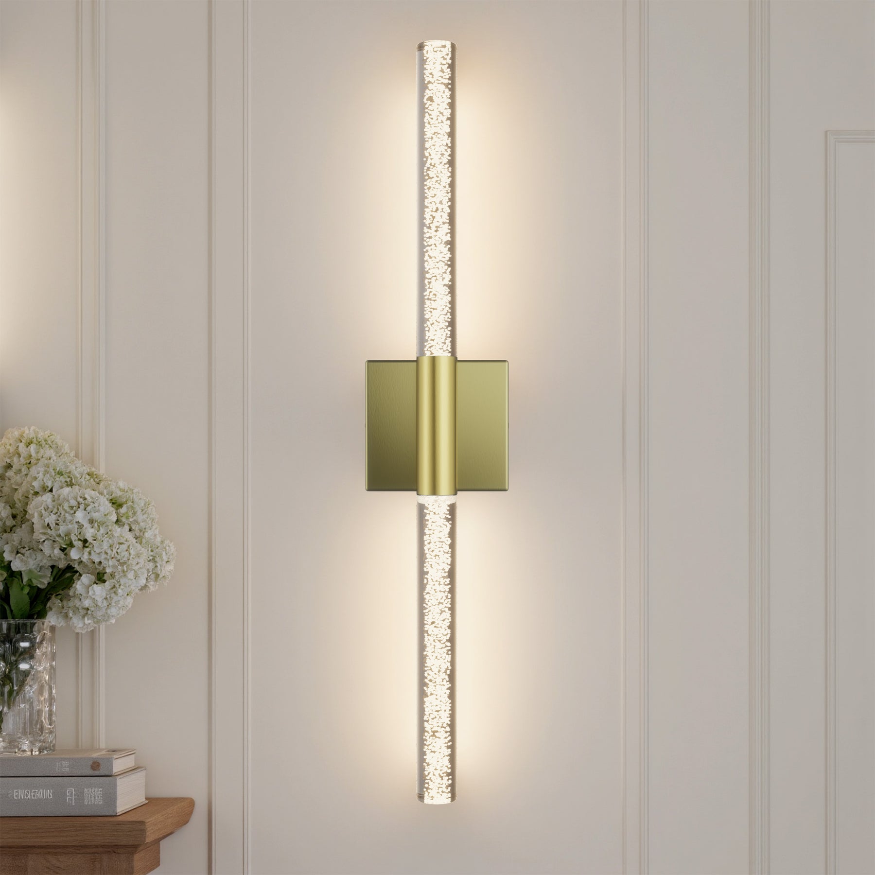 This 24'' integrated LED outdoor sconce captivates with its sleek, minimalist design! Its standout feature is the unique silhouette formed by two slender tubes crafted from acrylic bubble glass, creating a stylish ambiance that immerses you in an atmosphere of elegant harmony. Constructed from premium metal, it boasts clean, flowing contours that infuse your space with contemporary flair. The built-in LED light source delivers soft, bright illumination while offering durability and energy efficiency, helping you save on long-term costs. With outstanding weather resistance, it's suitable for indoor, outdoor, and damp environments—enhancing the charm and sophistication of spaces like porches, backyards, or garages. Additionally, this wall light features dimming functionality compatible with dimmable switches, allowing you to effortlessly adjust the lighting to your desired effect.