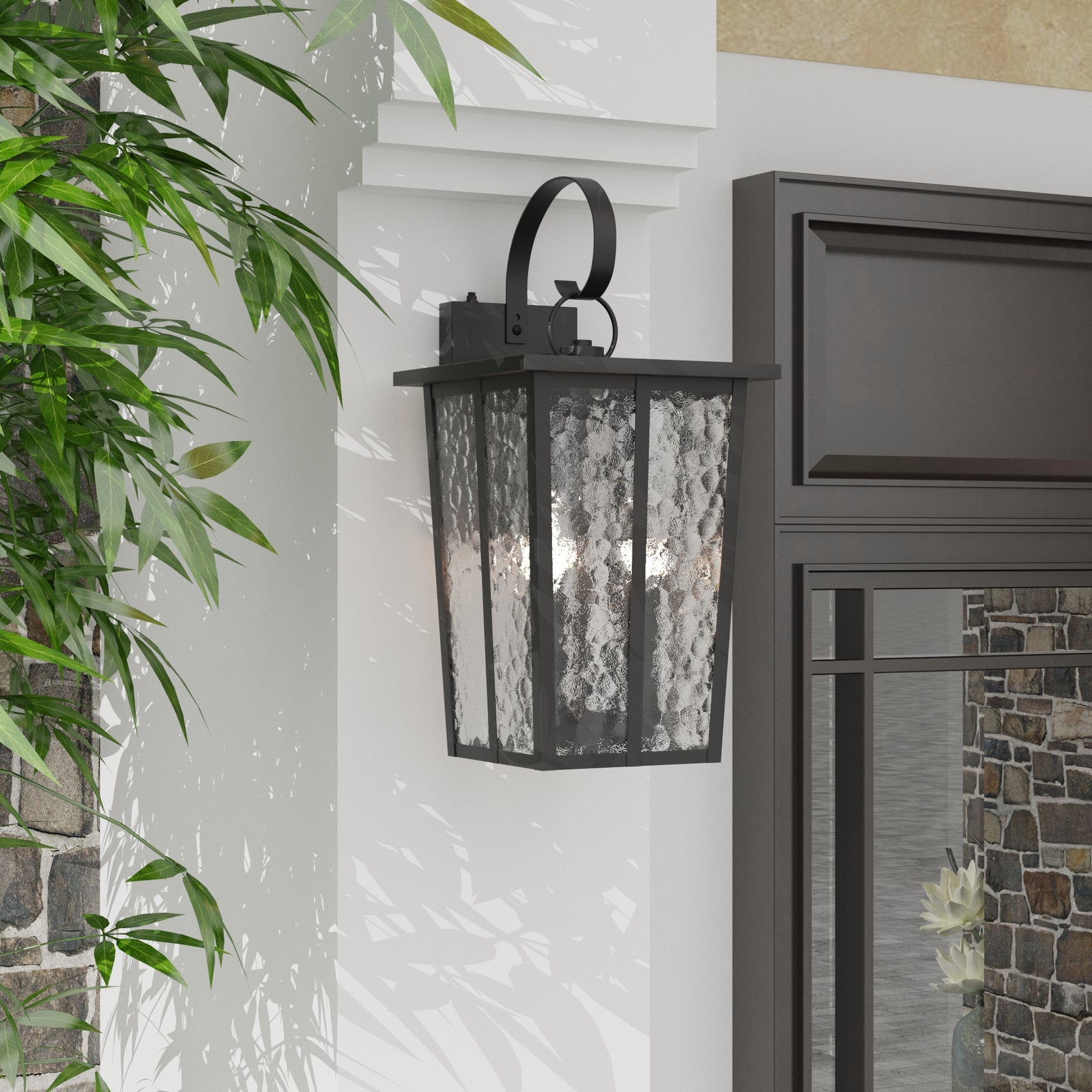 1-Light 12.5'' Lron And Hammered Glass Outdoor Wall Lantern With Dusk To Dawn #7052