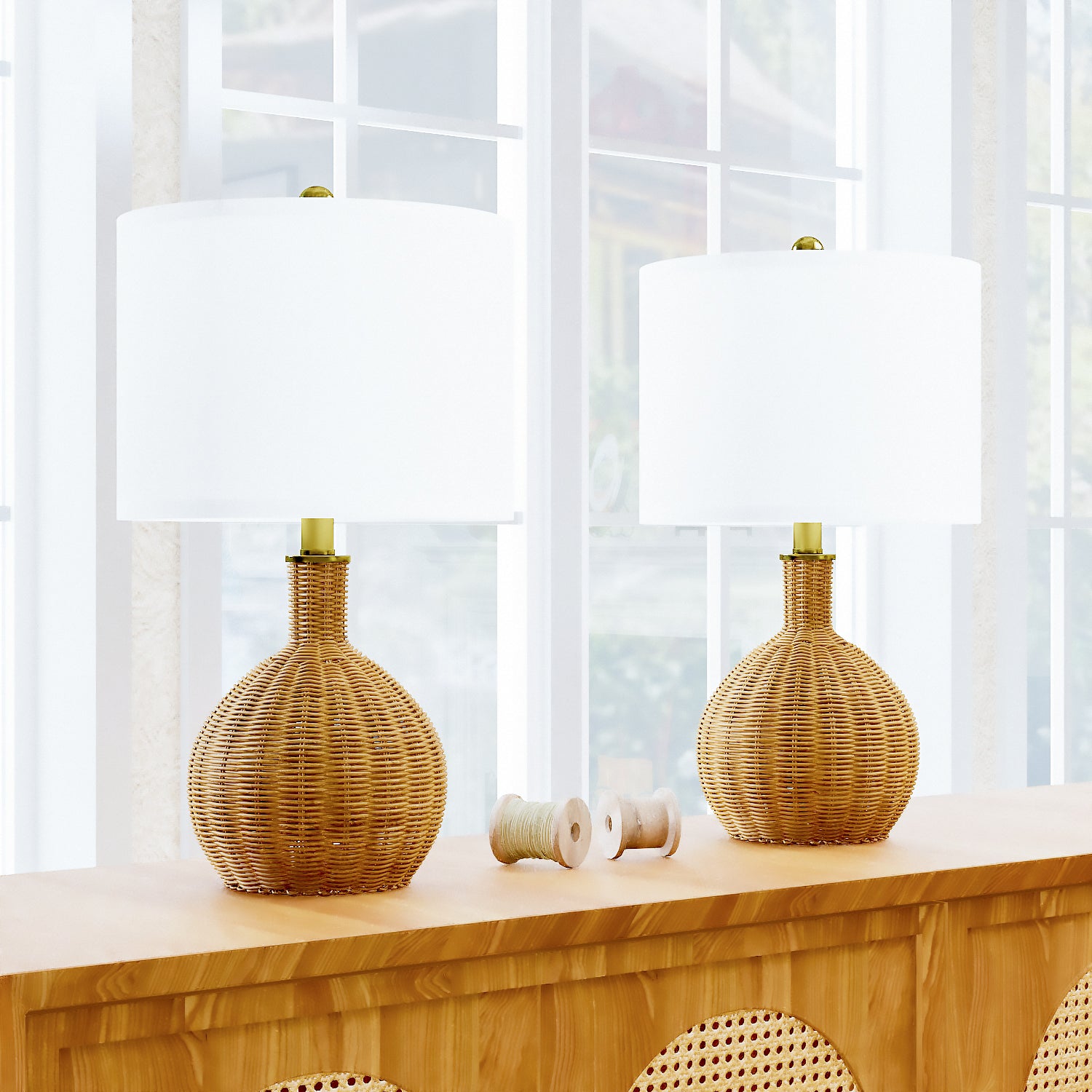 Boho Style Ceramic Rattan Table Lamp For Living Room/Bedroom/Entryway Console/Decorative Supplements With Rattan Accent #T213-WH-S