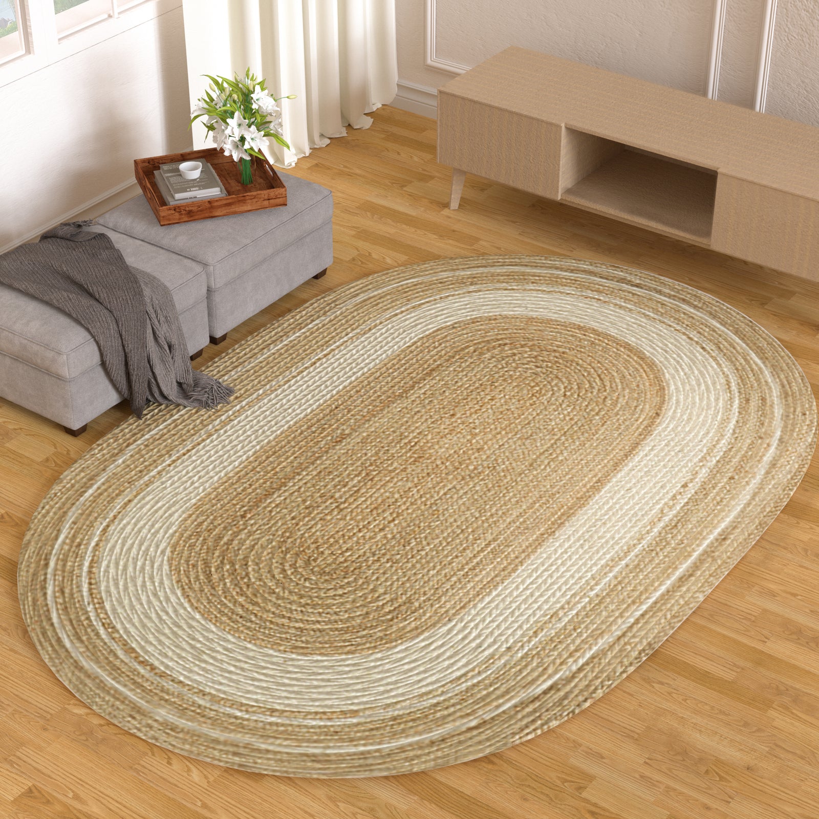 4modernhome Jute Hand Braided Zigzag Stitch Natural Fibers Farmhouse Style Area Rug For Dining Room Living Room Kitchen, Off White/Natural #DT23-5