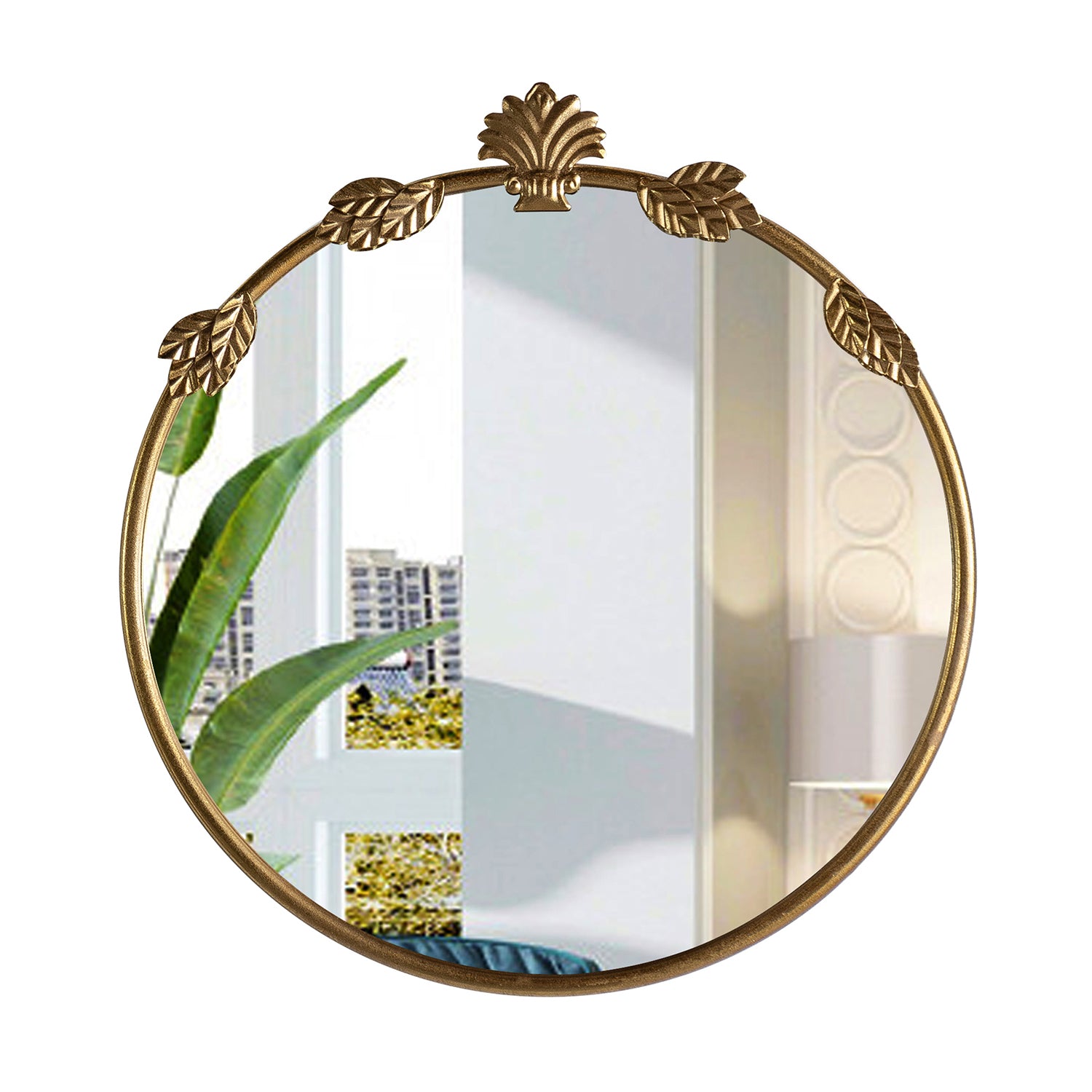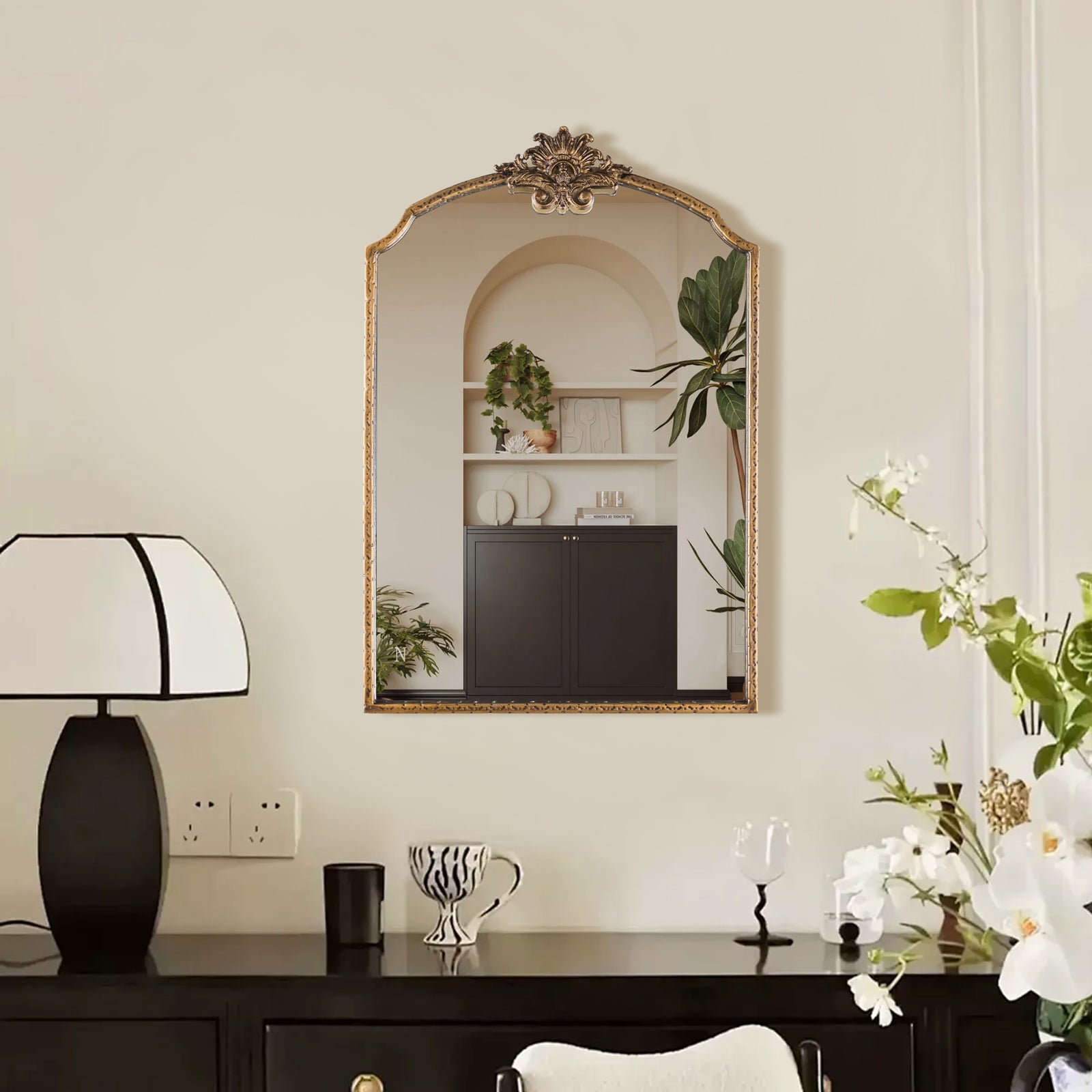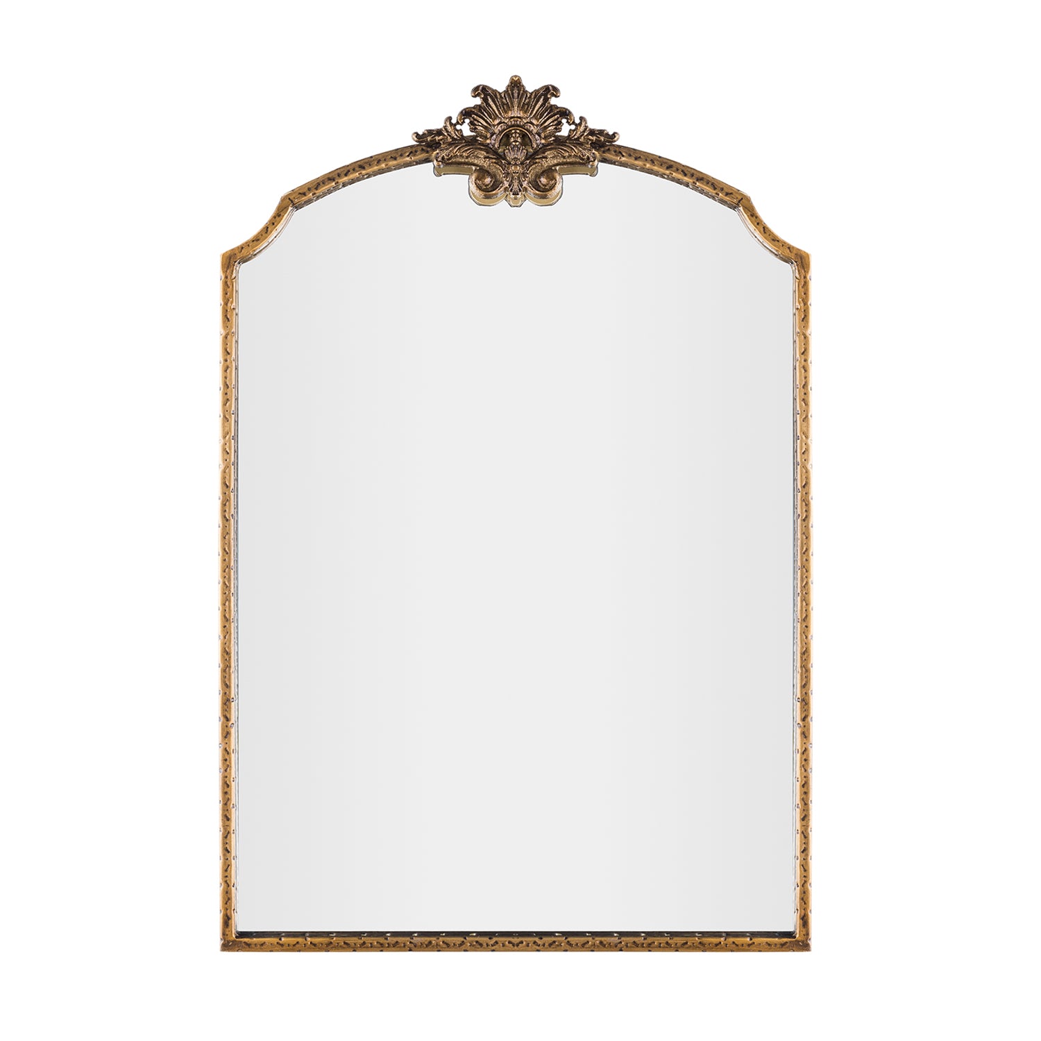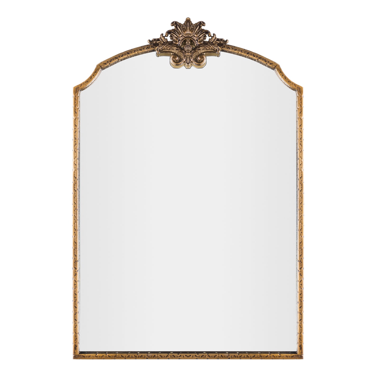 Constructed with a sturdy metal frame and finished with baked varnish and antique detailing, this mirror is not only visually appealing but also durable. The high-definition glass provides clear and accurate reflections, ensuring both functionality and style.