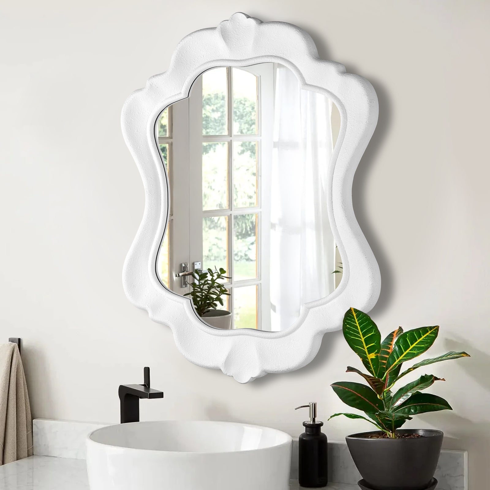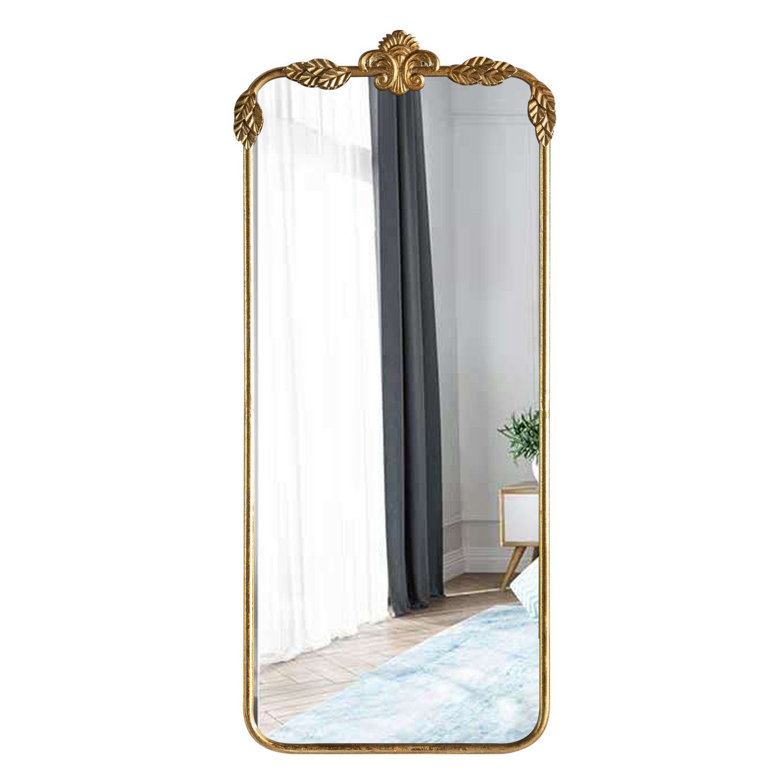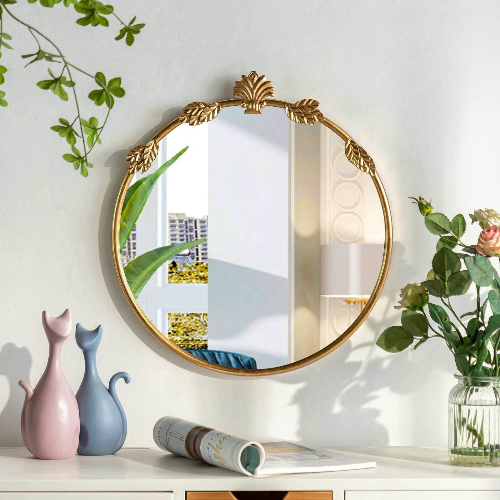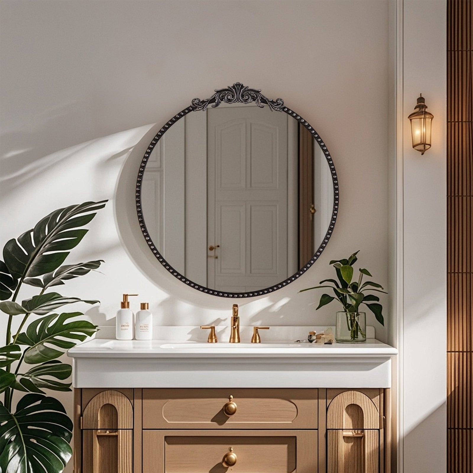 Constructed with a sturdy metal frame and finished with baked varnish and antique detailing, this mirror is not only visually appealing but also durable. The high-definition glass provides clear and accurate reflections, ensuring both functionality and style.