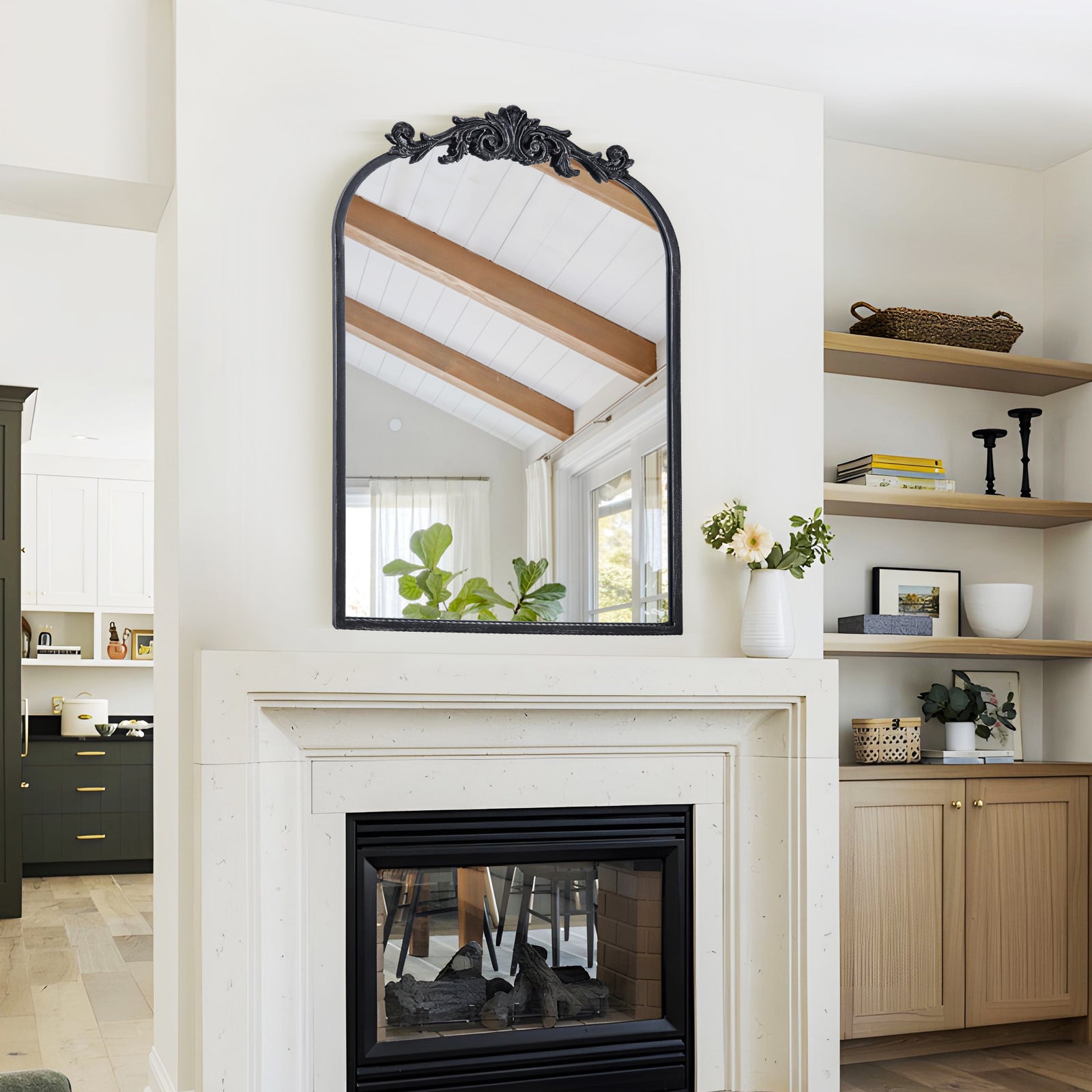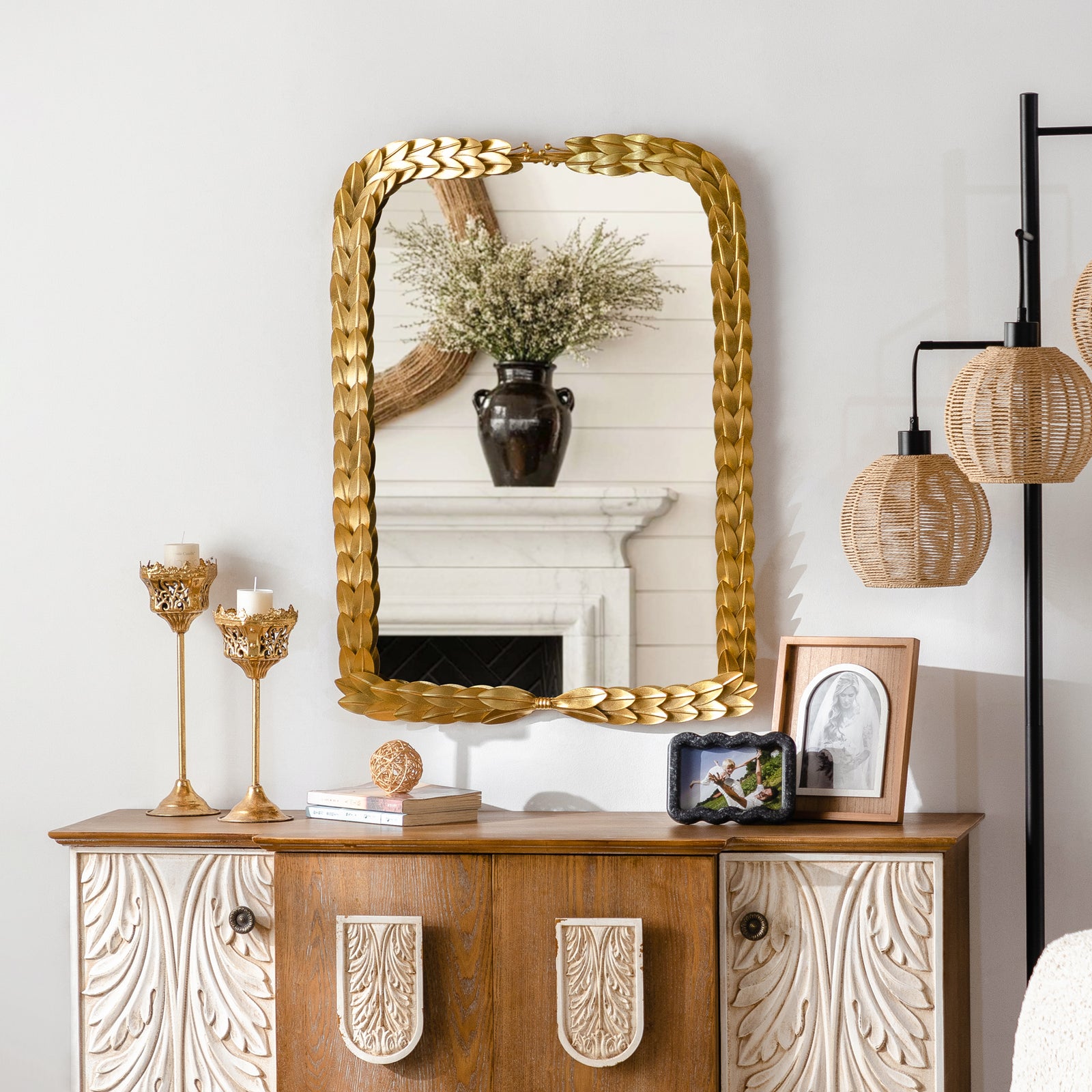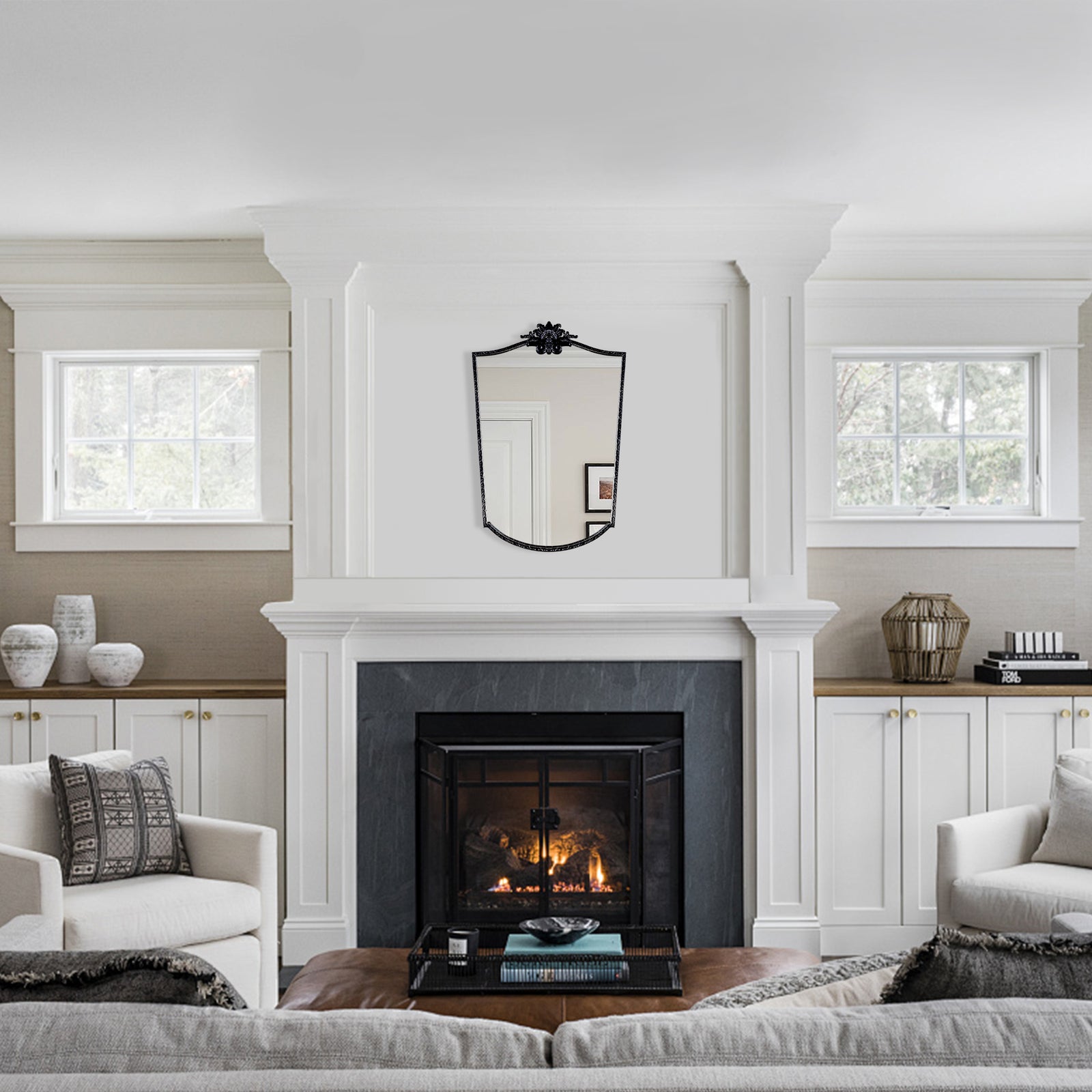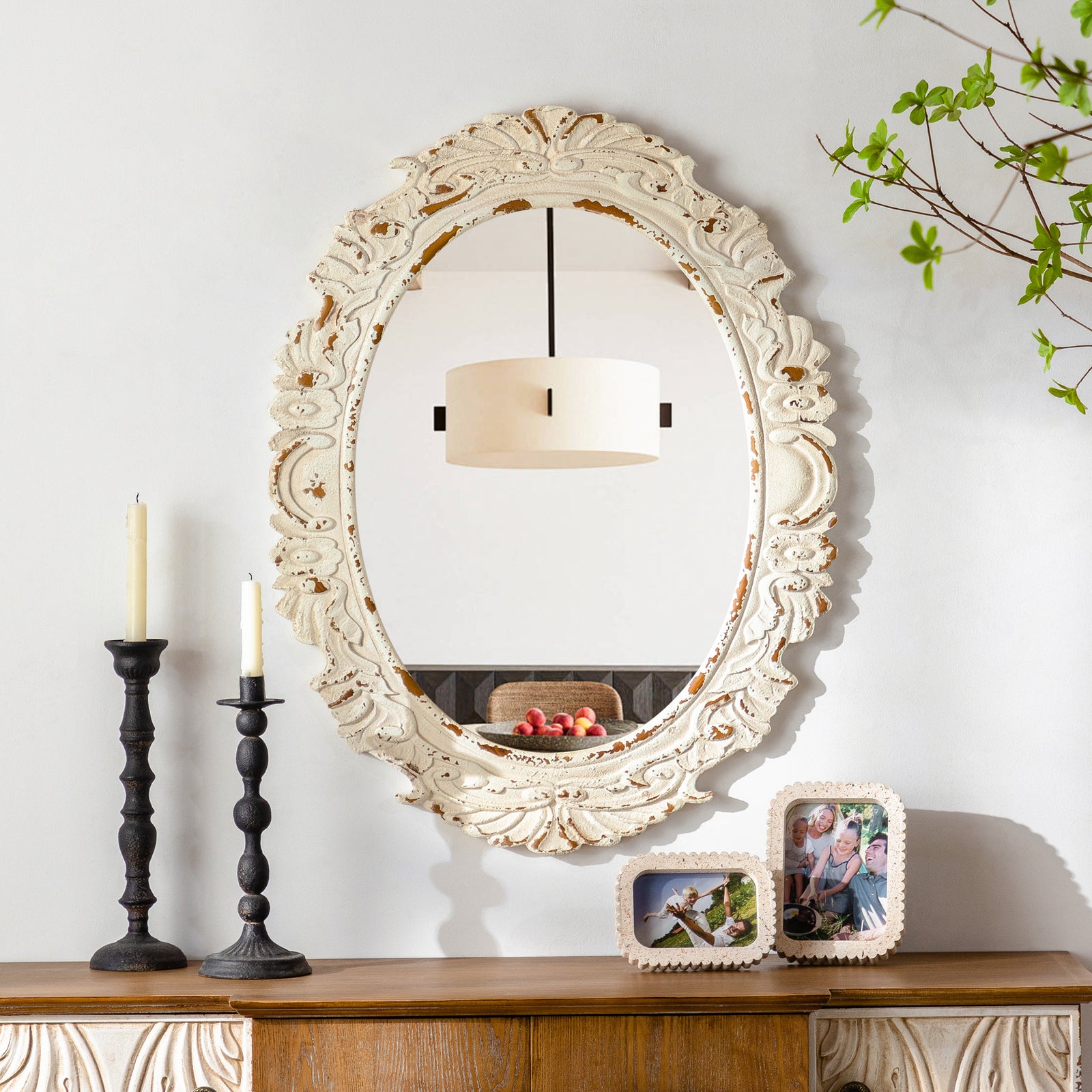 Constructed with a sturdy metal frame and finished with baked varnish and antique detailing, this mirror is not only visually appealing but also durable. The high-definition glass provides clear and accurate reflections, ensuring both functionality and style.