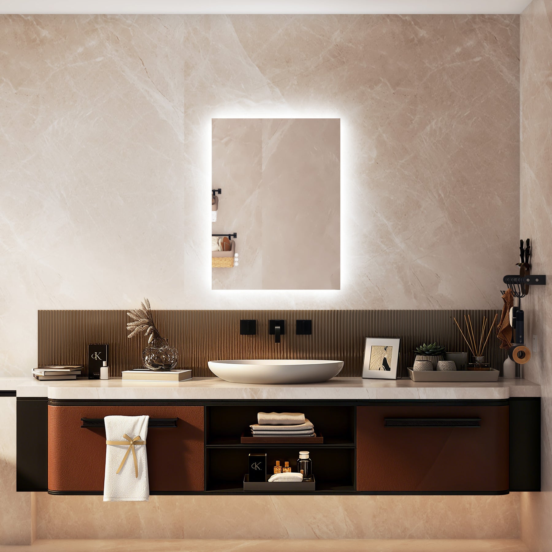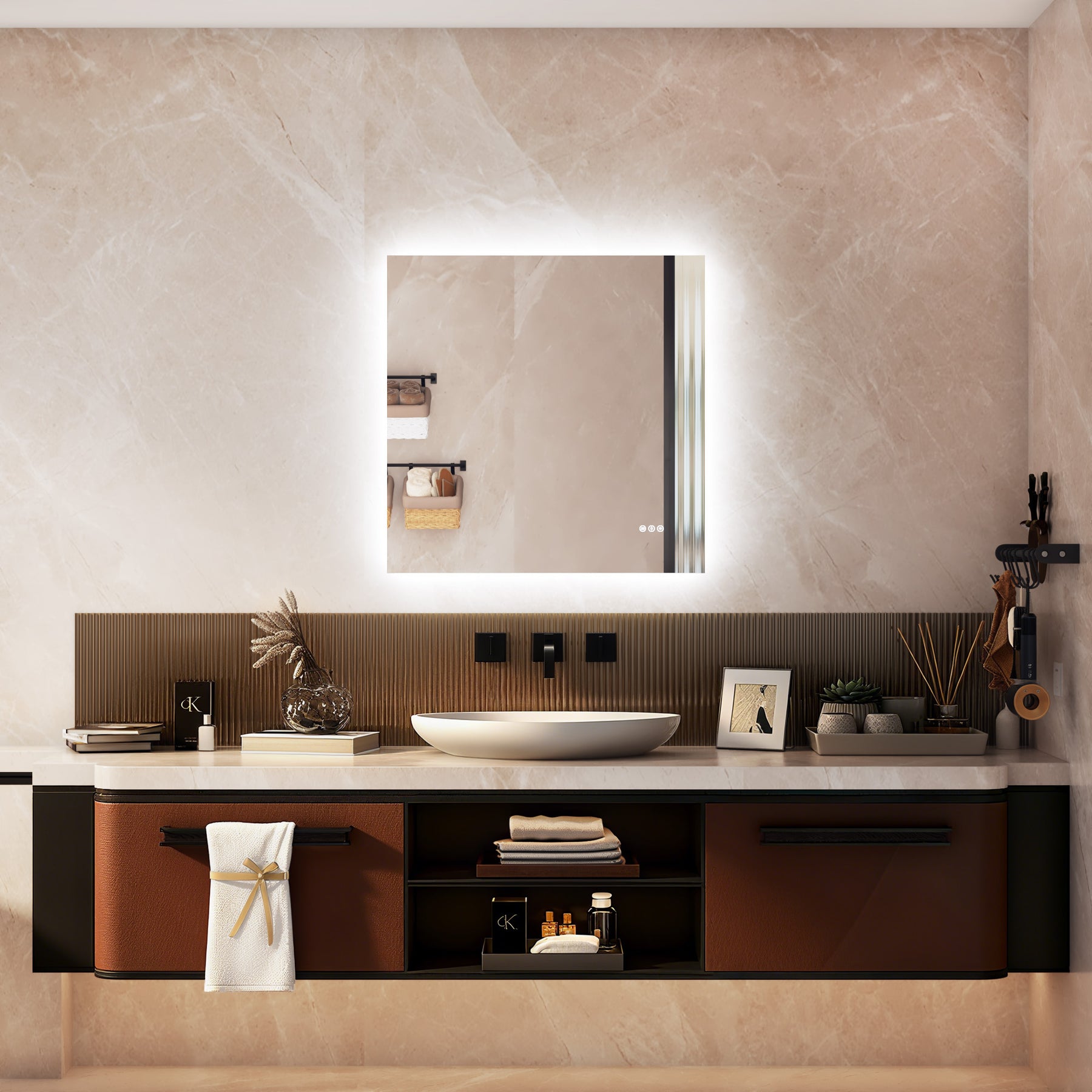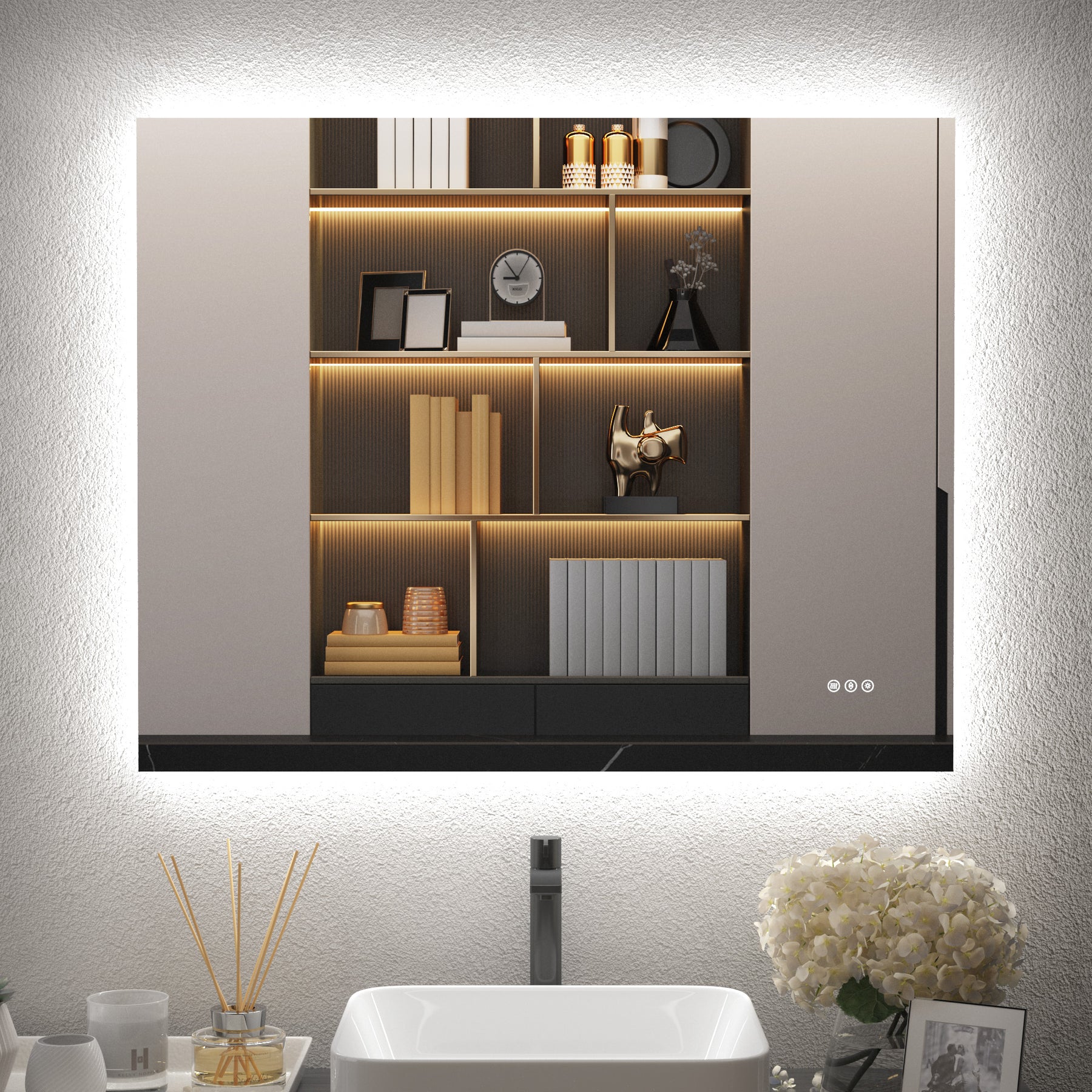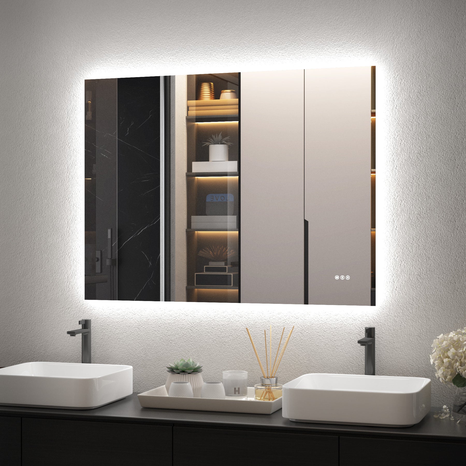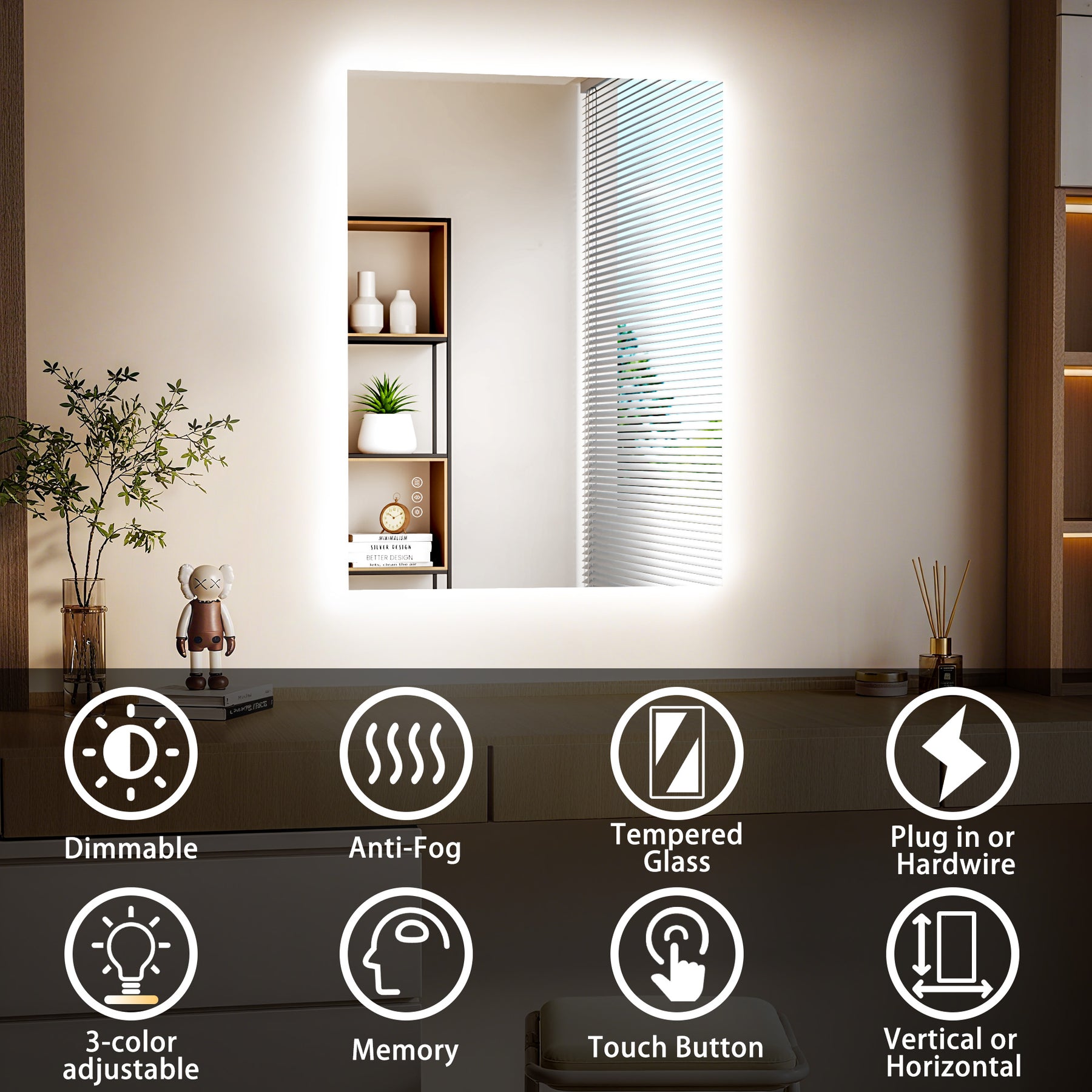 - Smart Anti-Fog Mode (1-Hour Auto-Shutoff) Say goodbye to forgetting to turn off lights in the bathroom, plus one-touch control to turn off all lights.