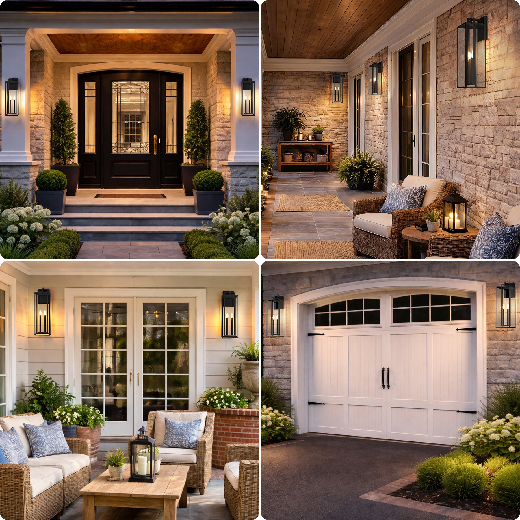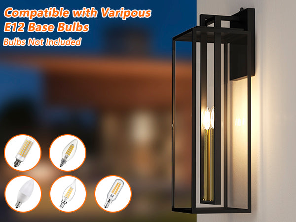 Built-in dusk-to-dawn sensor activates automatically at night and shuts off at dawn for hands-free operation. E12 socket design works with a variety of candle-shaped bulbs for customizable styling. Sturdy construction with premium metal frame and tempered clear glass for long-lasting durability. All-weather performance: windproof, heat-resistant, waterproof, and snowproof for reliable outdoor use. 26-inch large size makes a bold statement, perfect for enhancing the curb appeal of homes, villas, and patios.
