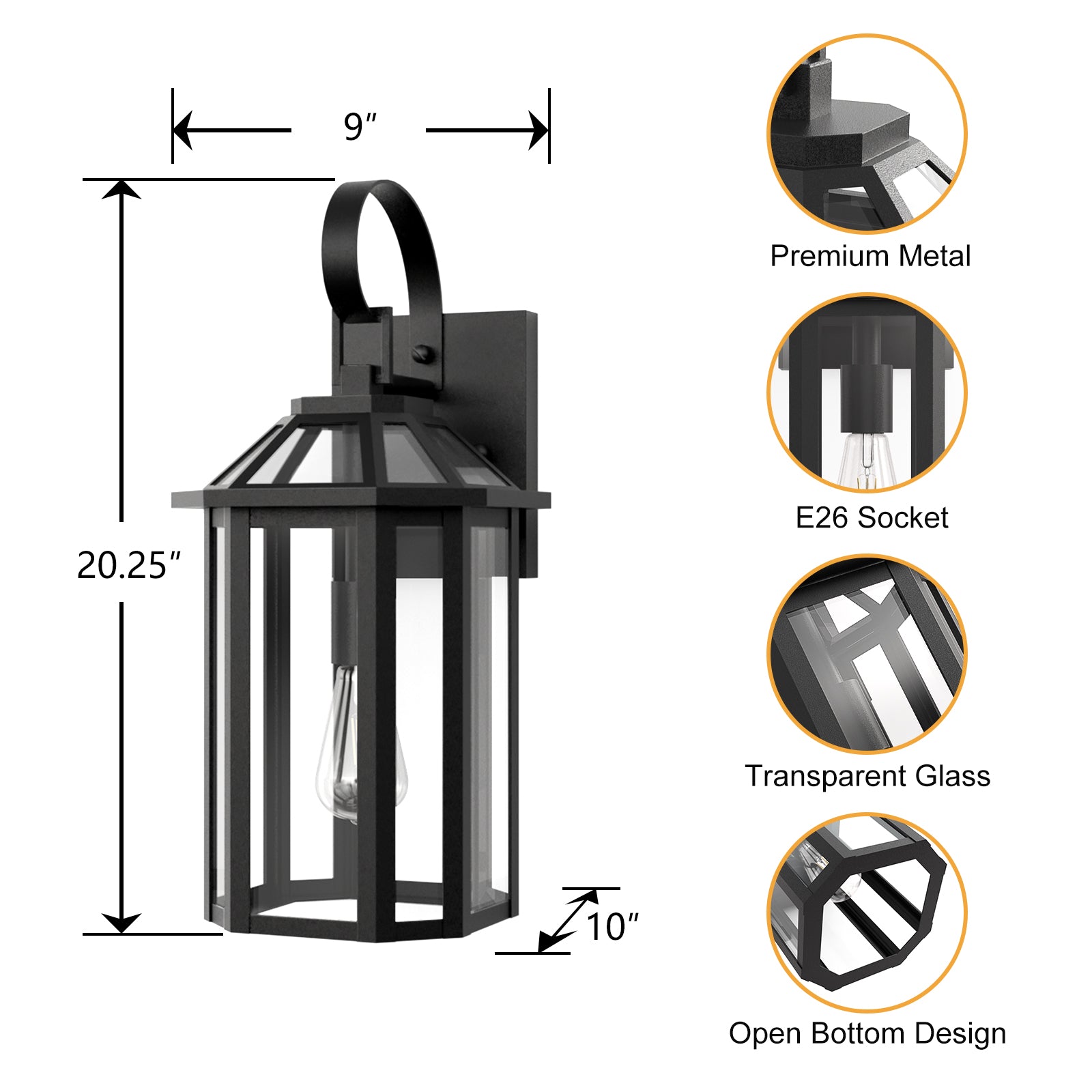 This outdoor wall lamp features an iron frame paired with glass, boasting a sleek and elegant design that instantly elevates any outdoor space upon installation. More importantly, it's a true all-rounderโits iron components undergo special treatment to resist rust, withstanding intense heat, freezing winters, and even holding firm against fierce storms. Whether illuminating your path home at the entrance or creating a warm ambiance in a garden corner, its soft glow diffuses through the glass. It delivers ample practical light while adding warmth to outdoor scenes. Built to withstand the test of time, it will faithfully guard every inch of your outdoor space, illuminating every moment.