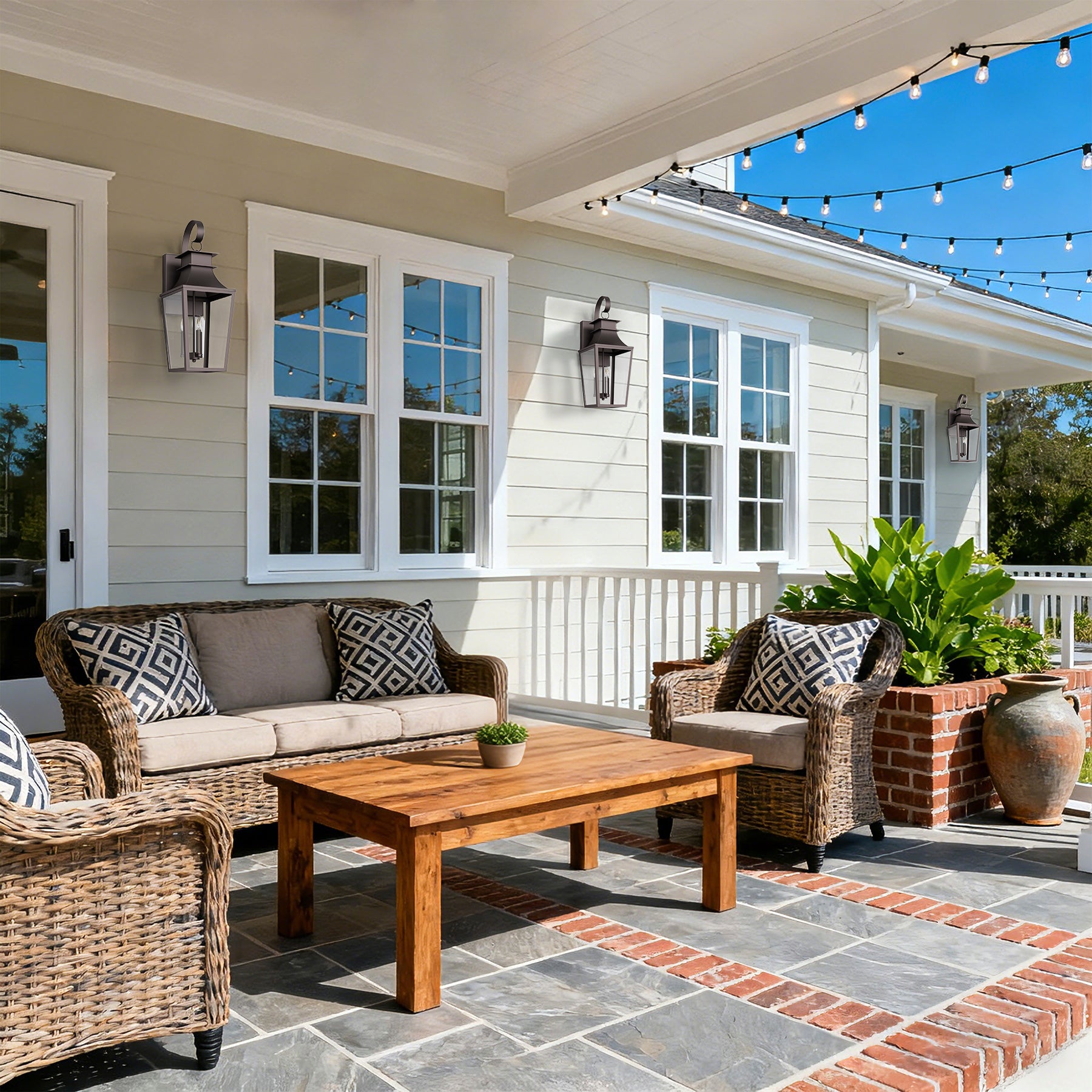 Elevate your outdoor space with this contemporary?Hardwired Outdoor Wall Ligh(Bulb not included), combining durability and modern aesthetics. Perfect for enhancing entryways, patios, or garden pathways, its?automatic dusk-to-dawn sensor?ensures effortless illumination from twilight to darkness, boosting both security and ambiance.