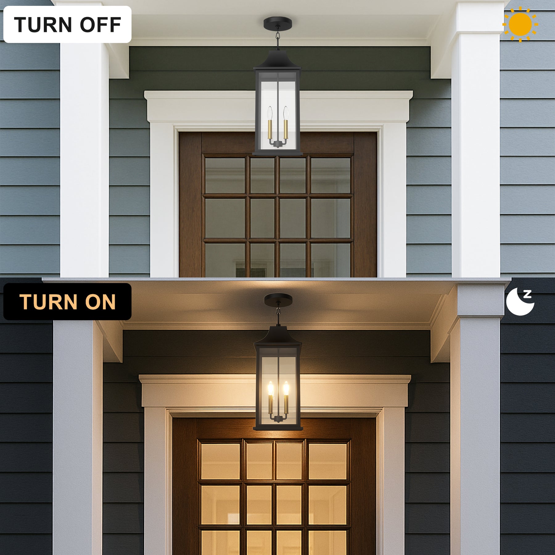 - Retro Aesthetic Appeal: Matte black frame + Gold candlestick design paired with a clear glass shade complements American, rustic, and various outdoor decor styles, blending decorative charm with ambiance.