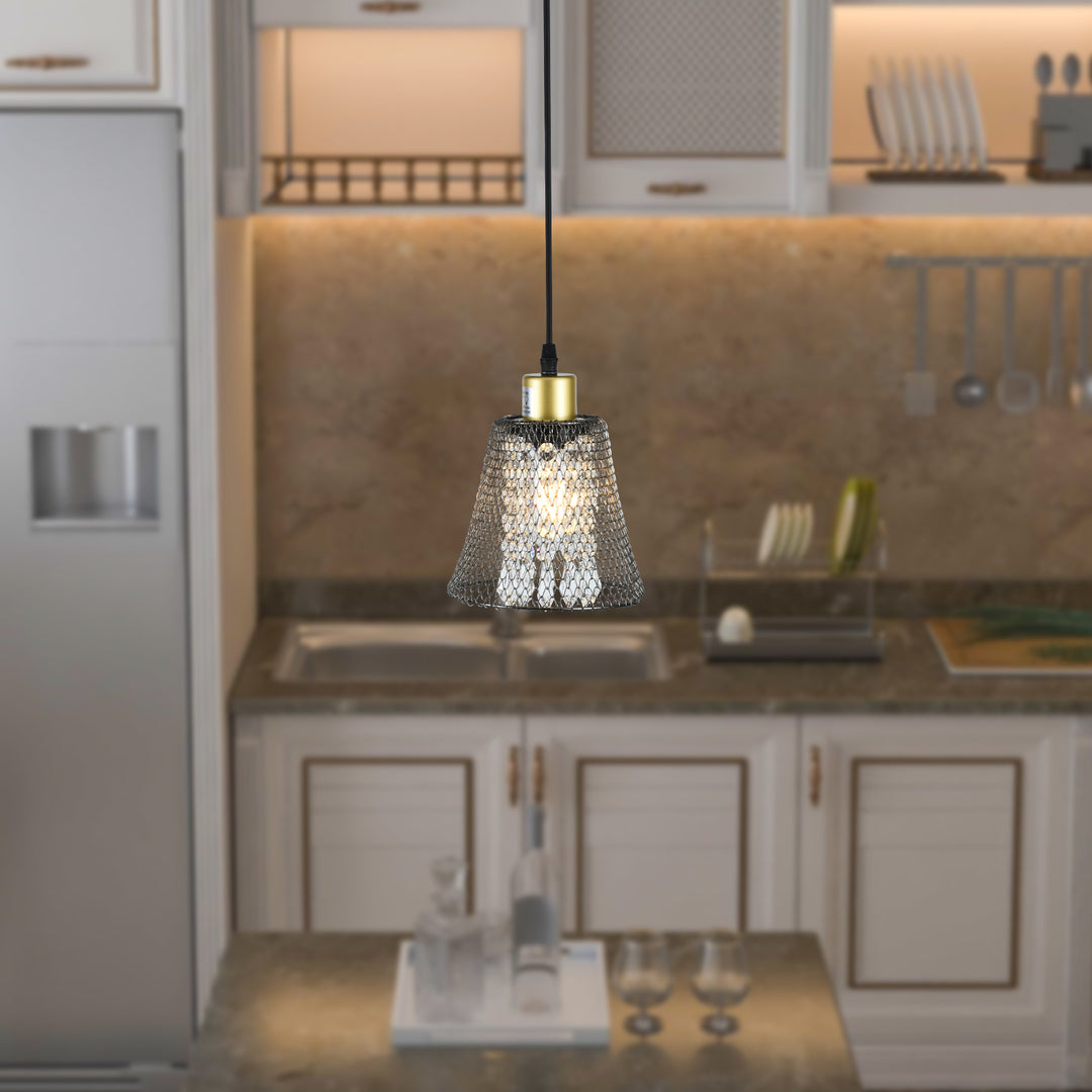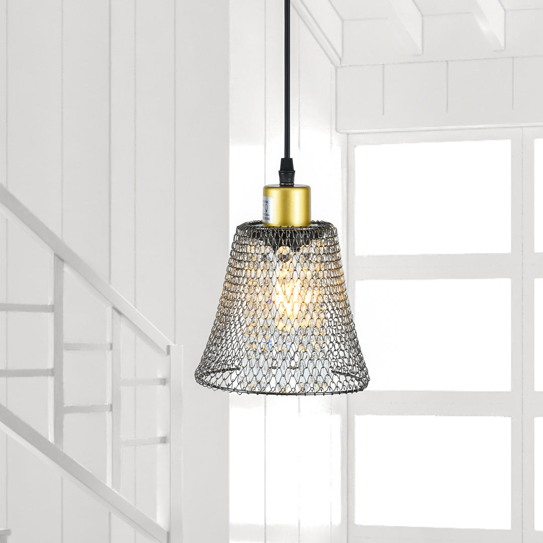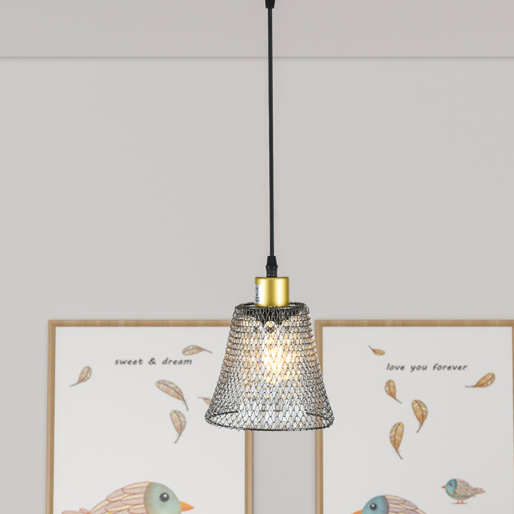 Introducing our captivating pendant light with a distinctive twist! Featuring a cone-shaped shade crafted from iron netting, this fixture effortlessly combines rustic charm with industrial flair, making it an ideal choice for modern interiors. The open-bottom design ensures optimal light distribution, bathing your space in a warm, welcoming glow.