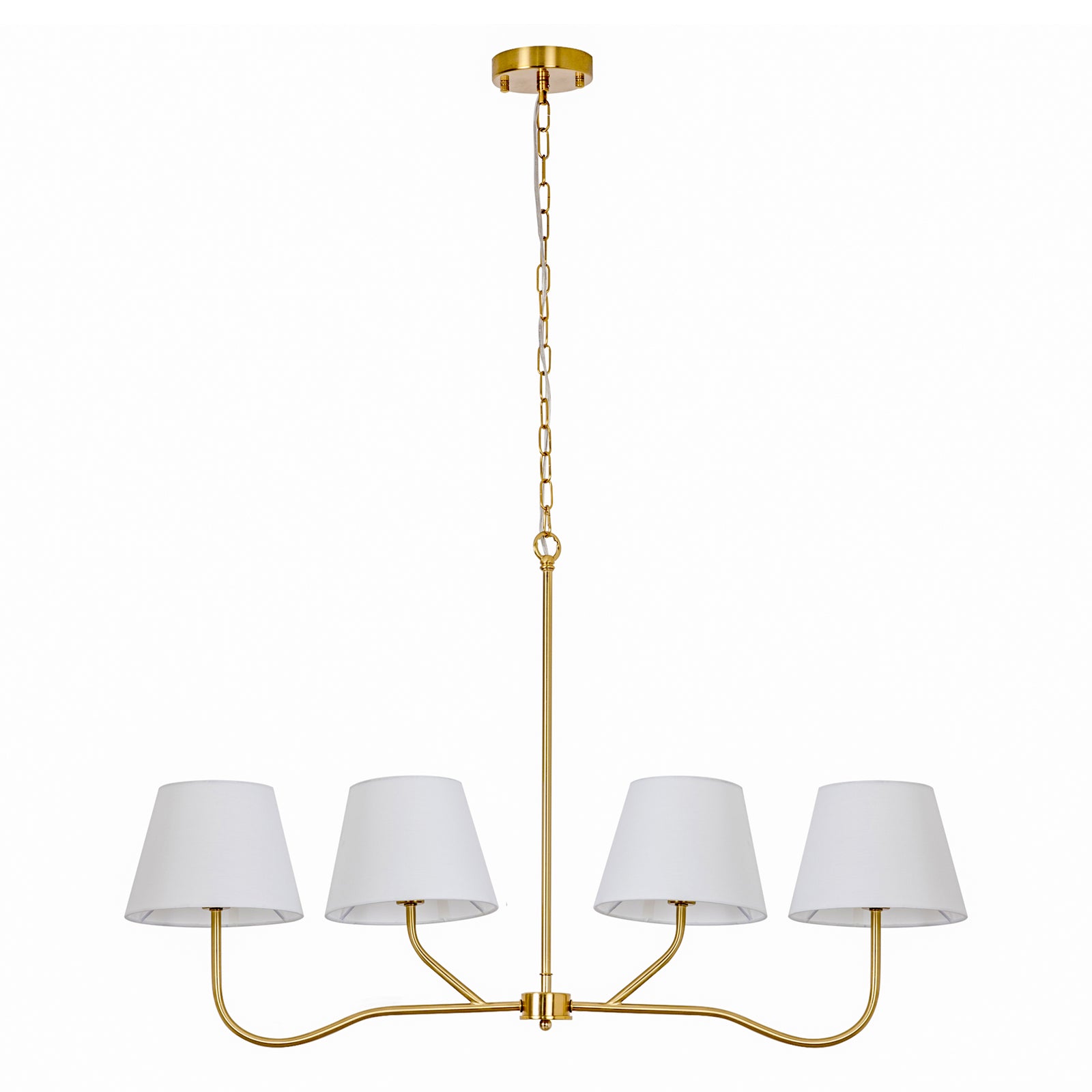 4-light Brass Finish Chandelier With White Linen Lampshades #19231