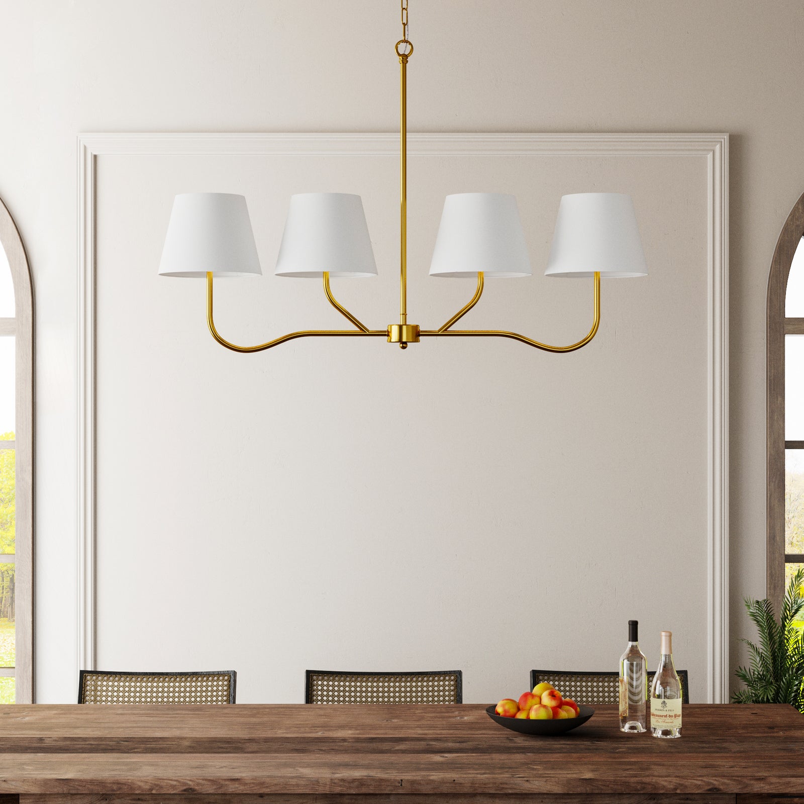 Twilight 3-Light Brass & White Modern Farmhouse Chandelier Light With Adjustable Height For Dining Room #P39002