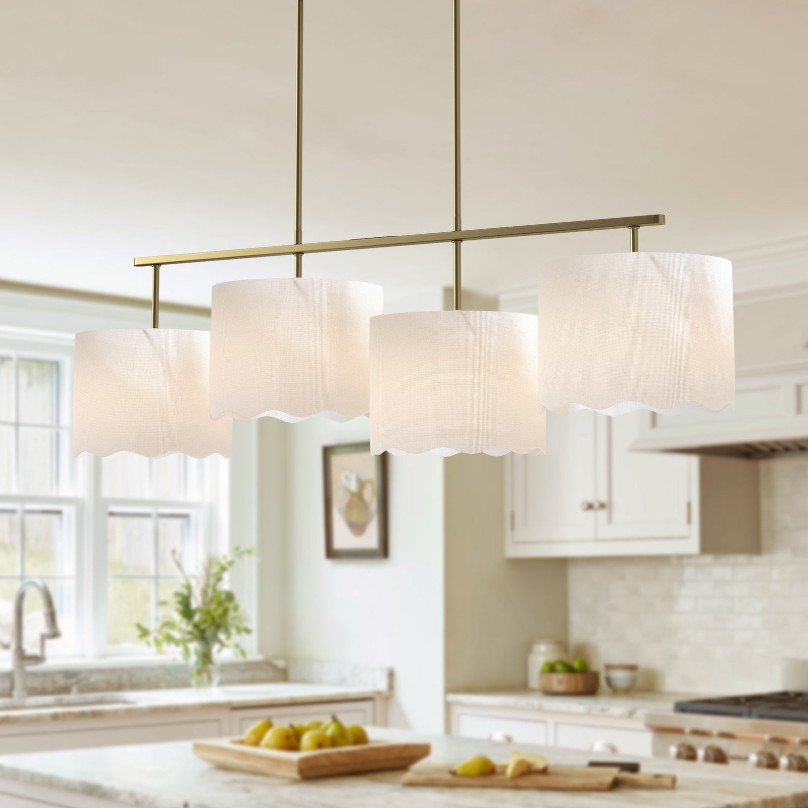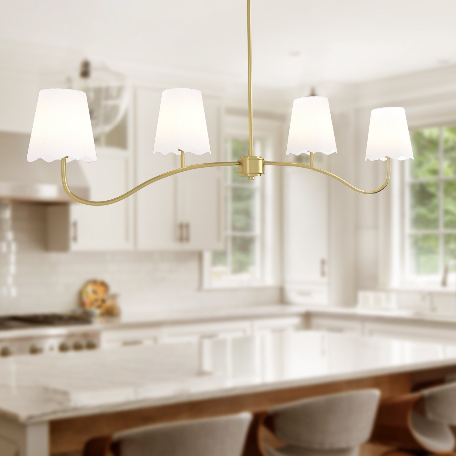 Twilight 4-Light Brushed Brass & White Modern Linear Pendant Light #P39003