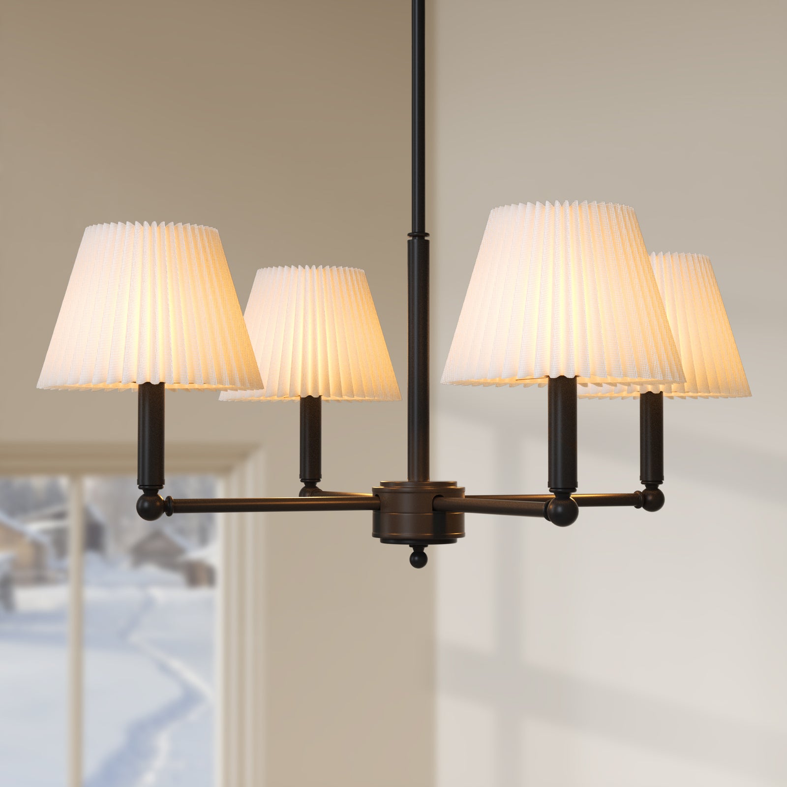 Glow 4-light Mid-century Modern Adjustable Sloped Chandelier With Iron Frame And White Linen Shades For Dining Room #39008