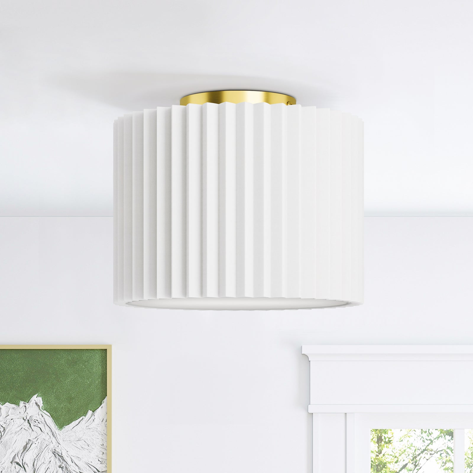 1-Light Electroplating Brass Metal And White Linen Flush Mount Lighting For Dining Room/Bedroom #28031
