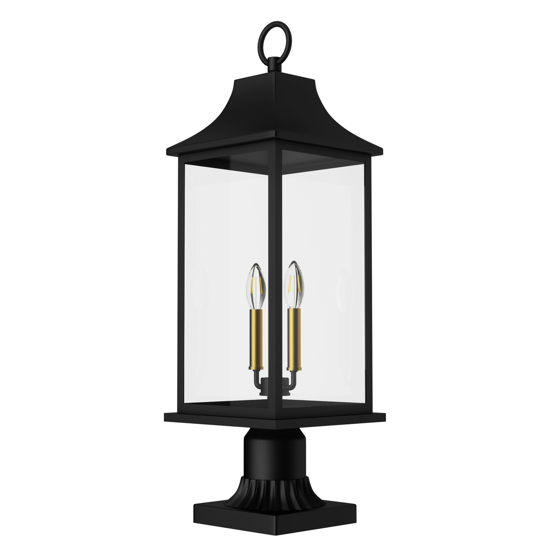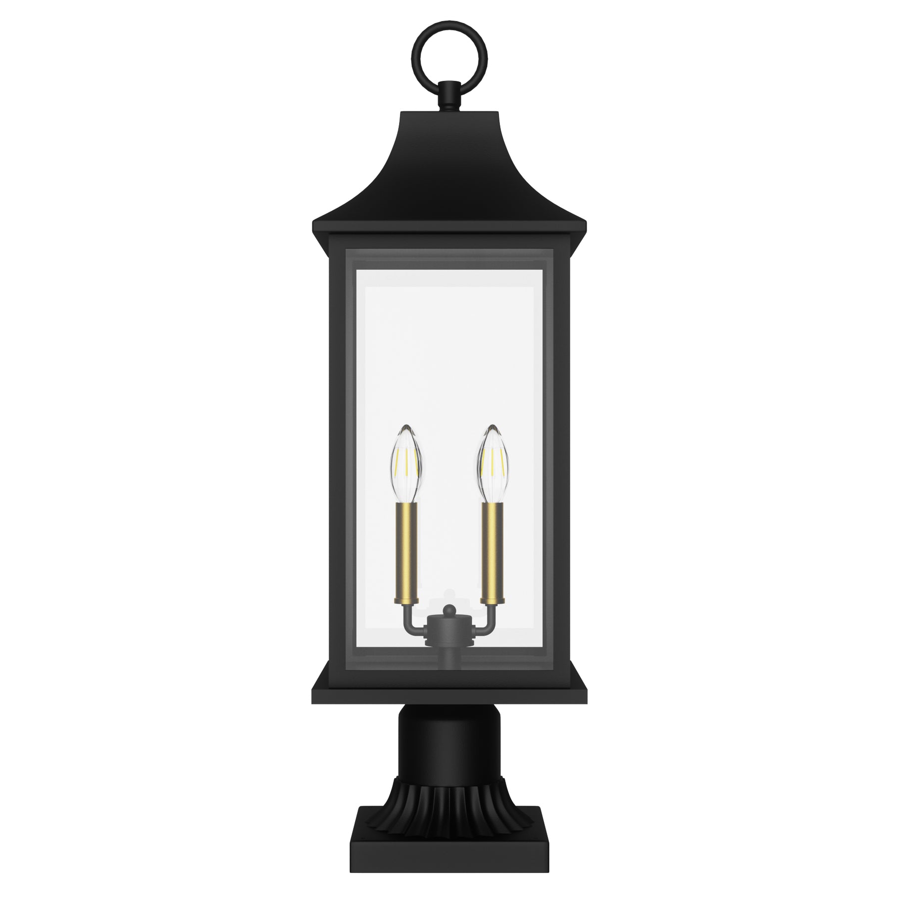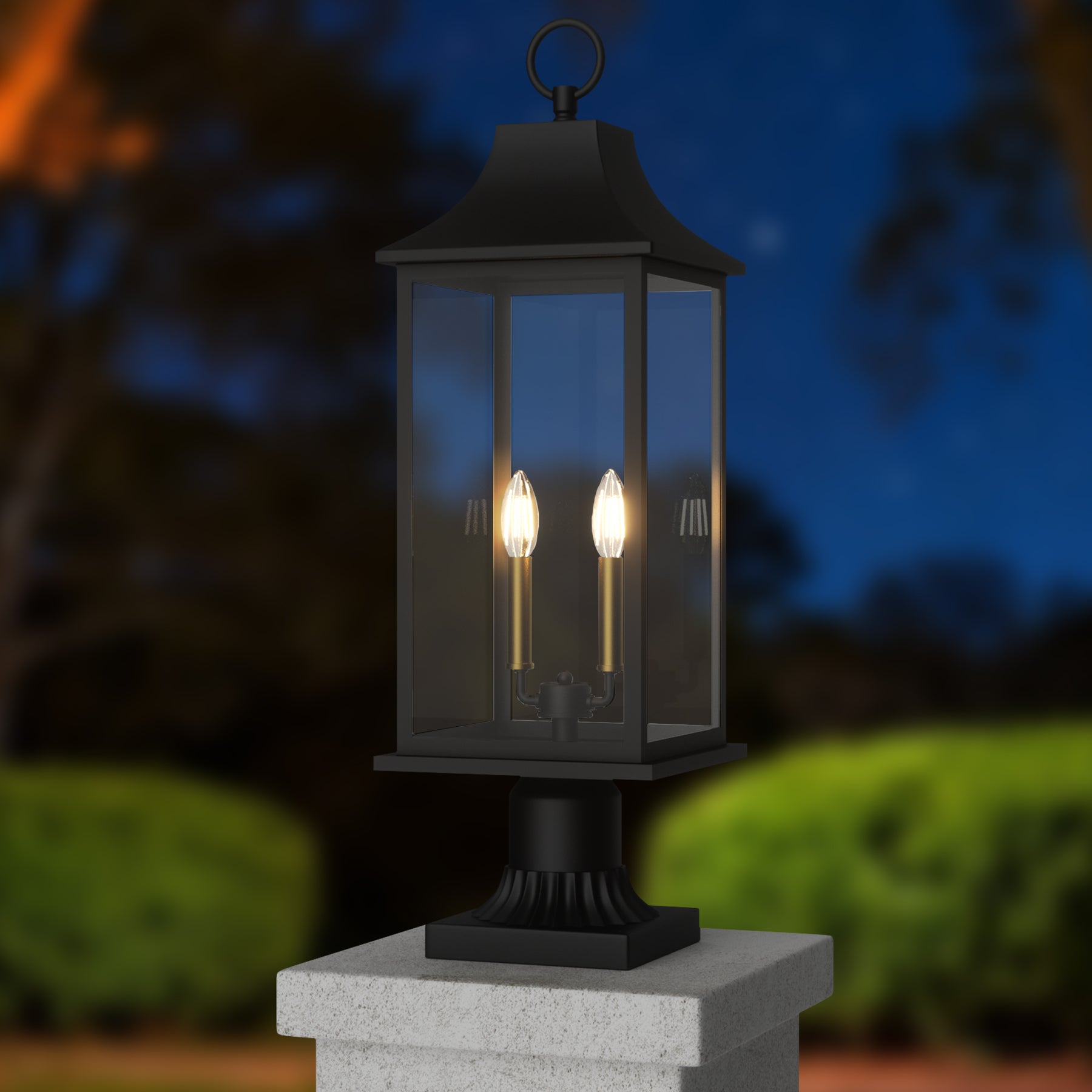 Pathfinder 2 - Light 23.6''h Black And Gold Iron Outdoor Post Light With Clear Tempered Glass #7091