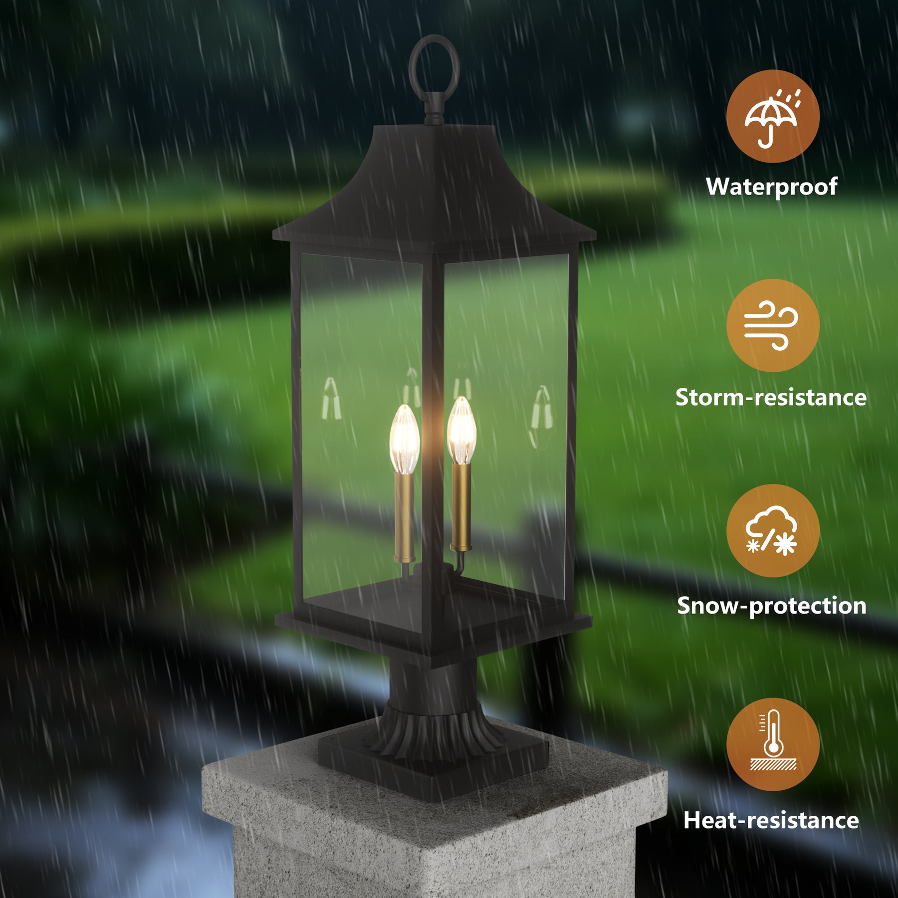 Transform your outdoor space into a timeless retreat with our Lantern Post Light—where classic charm meets all-weather durability. Whether it’s gracing your fence line, lighting a garden path, or welcoming guests at the front door, this black metal lantern blends seamlessly with any home style, from modern estates to cozy suburban yards. The crisp, clear glass panels and dual candle-style bulbs cast a warm, inviting glow after dark, turning ordinary evenings into something special. Built to stand up to rain, wind, snow, and sweltering heat, it’s not just a light—it’s a long-lasting addition that elevates your curb appeal and your outdoor ambiance. No more compromising on style or strength: this post light works as hard as it looks good.