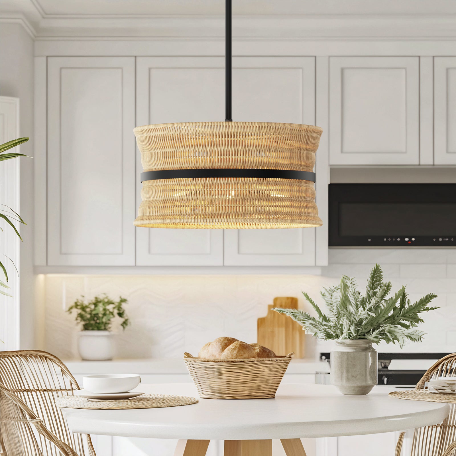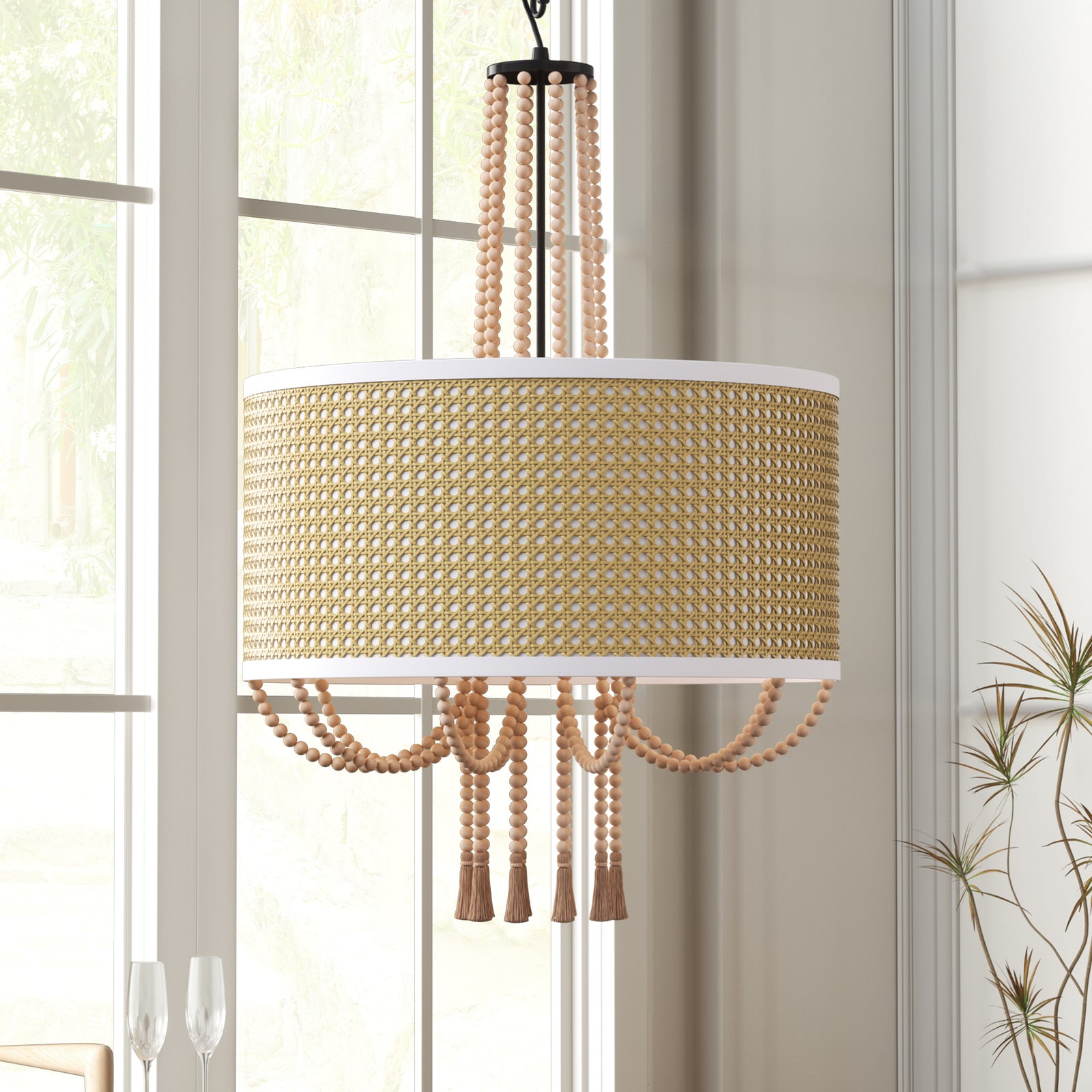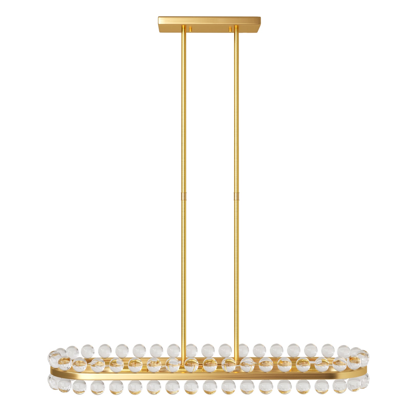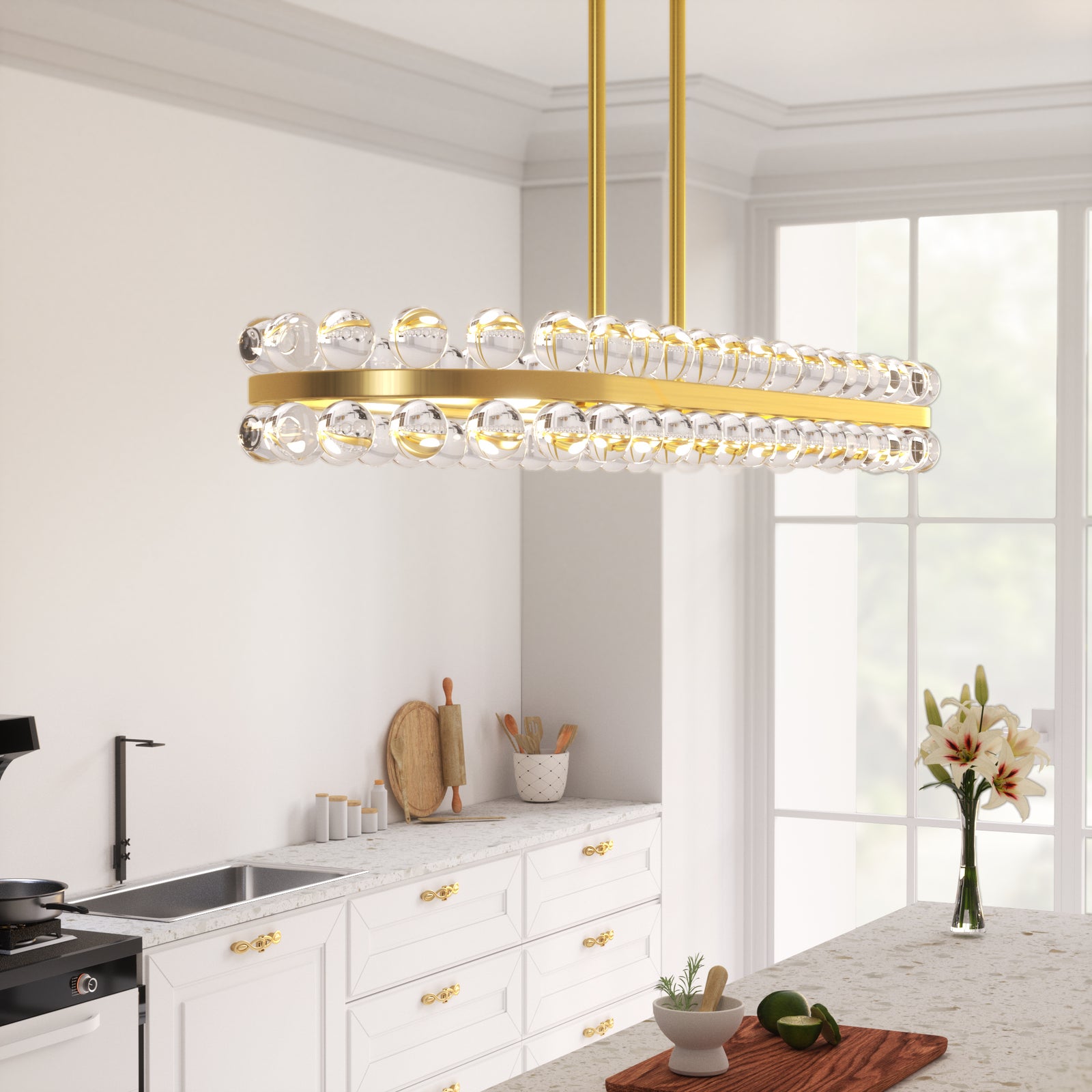 It is a beautiful chandelier. It took some time to figure out and assemble. The design was too ornate for my humble dining room with a standard high ceiling, so eliminated bottom danglers and connecting danglers. With no danglers, the bottom of the chandelier is about 6 feet from the floor. The light bulbs make a big difference in their look. I used traditional standard CLEAR light bulbs for a sparkling effect. The plain ceiling medallion was also installed.