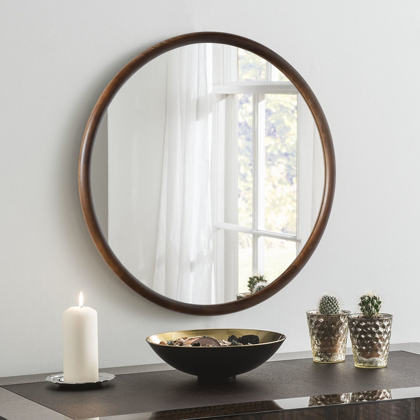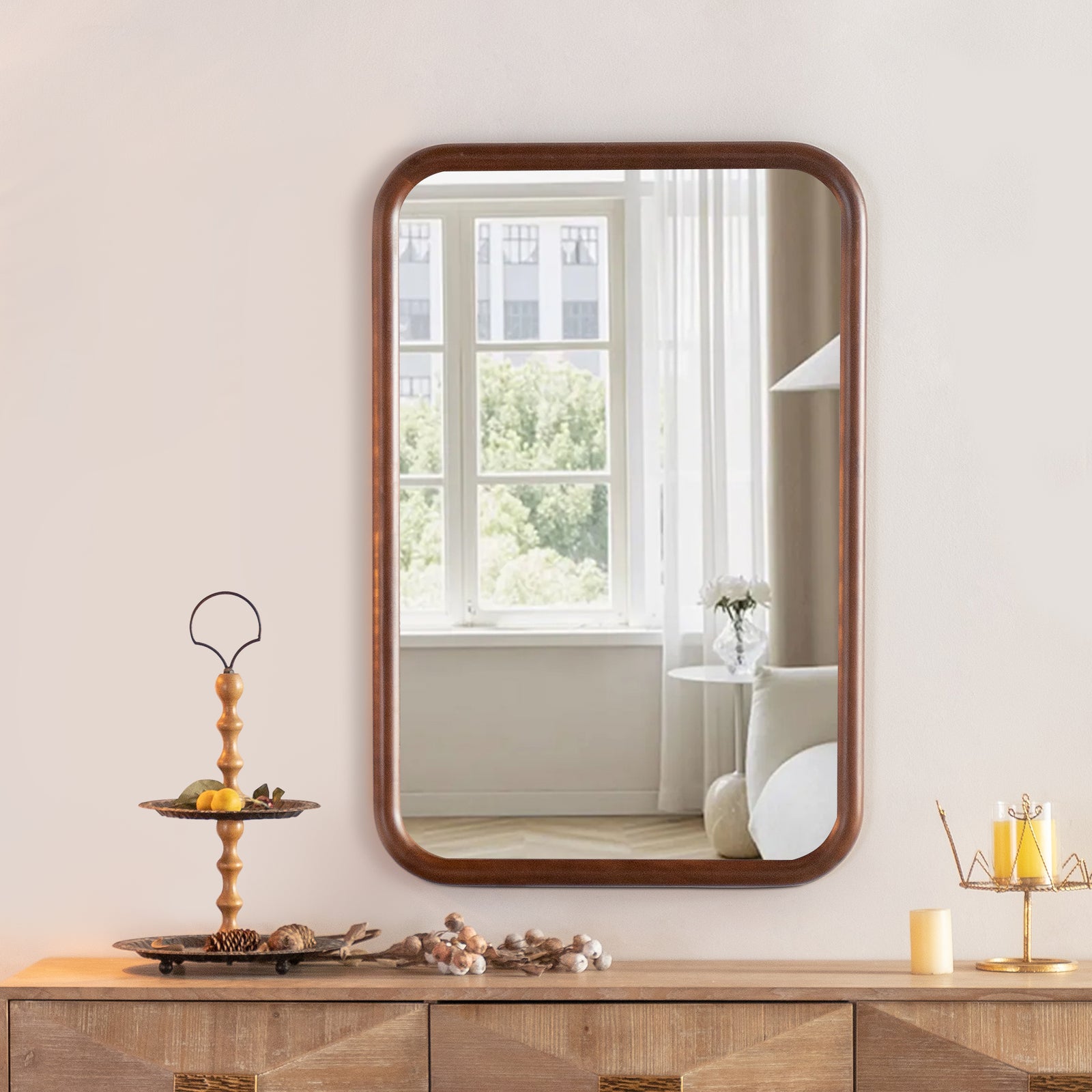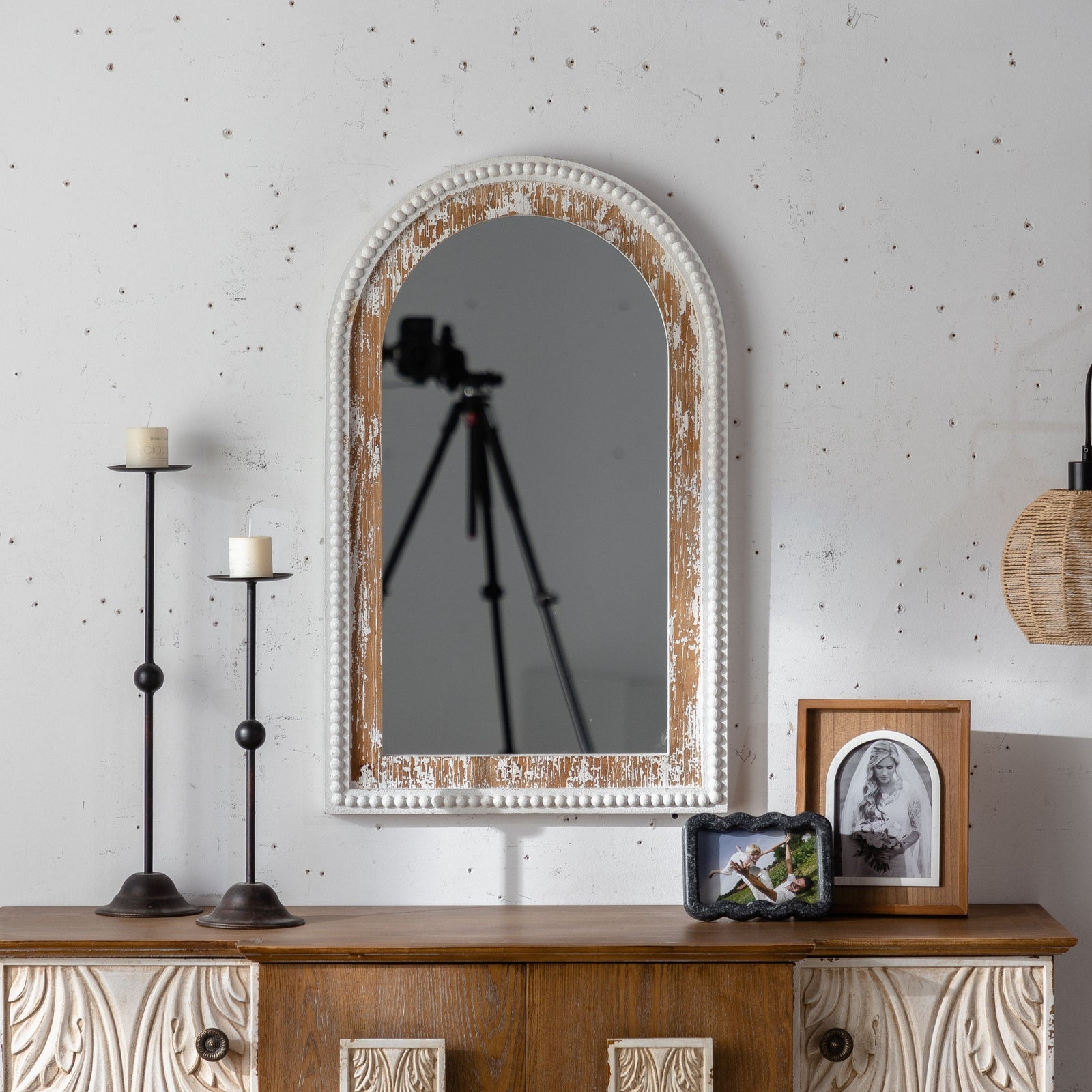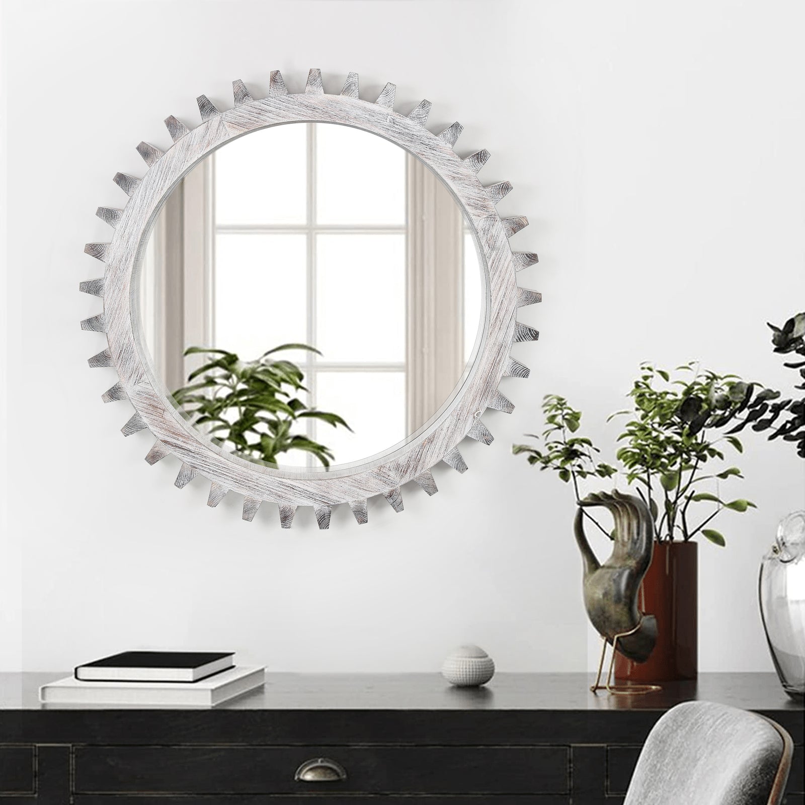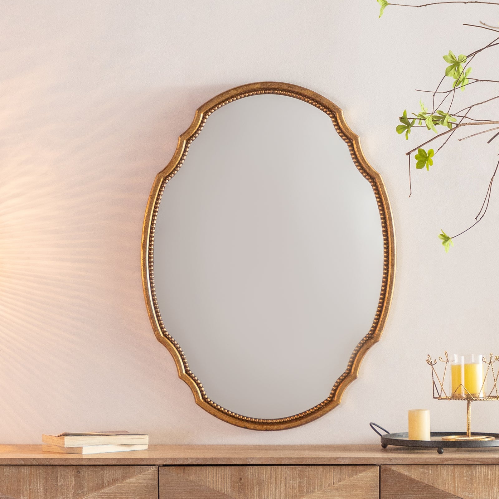 Constructed with a sturdy metal frame and finished with baked varnish and antique detailing, this mirror is not only visually appealing but also durable. The high-definition glass provides clear and accurate reflections, ensuring both functionality and style.