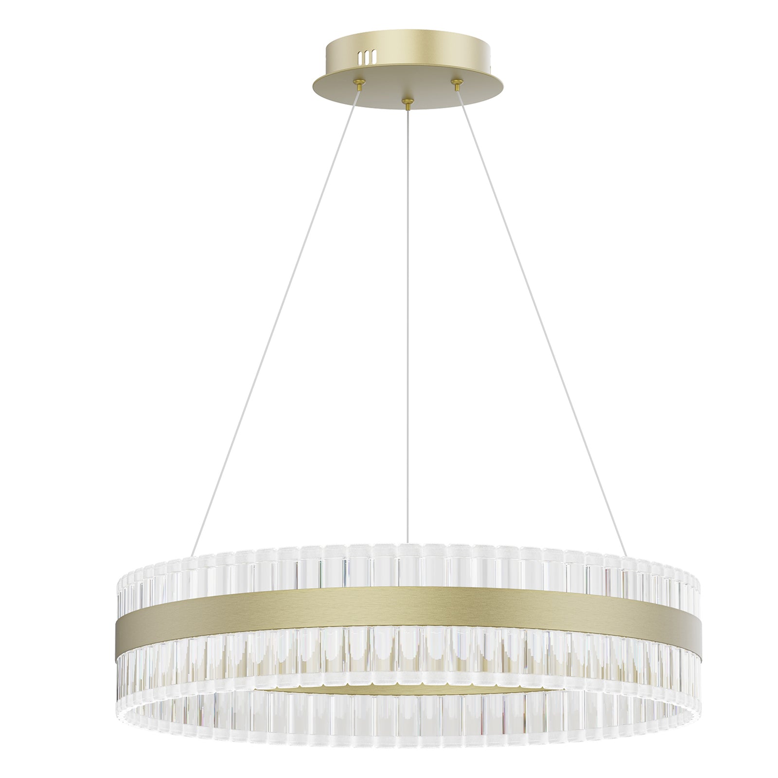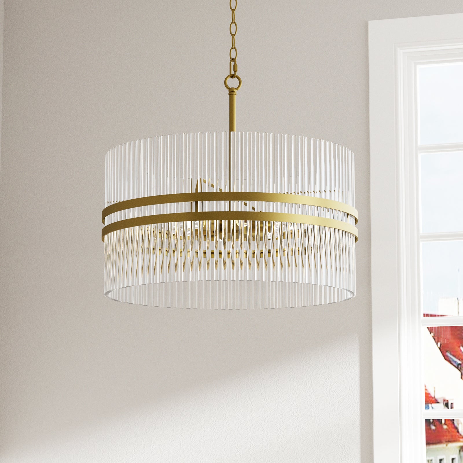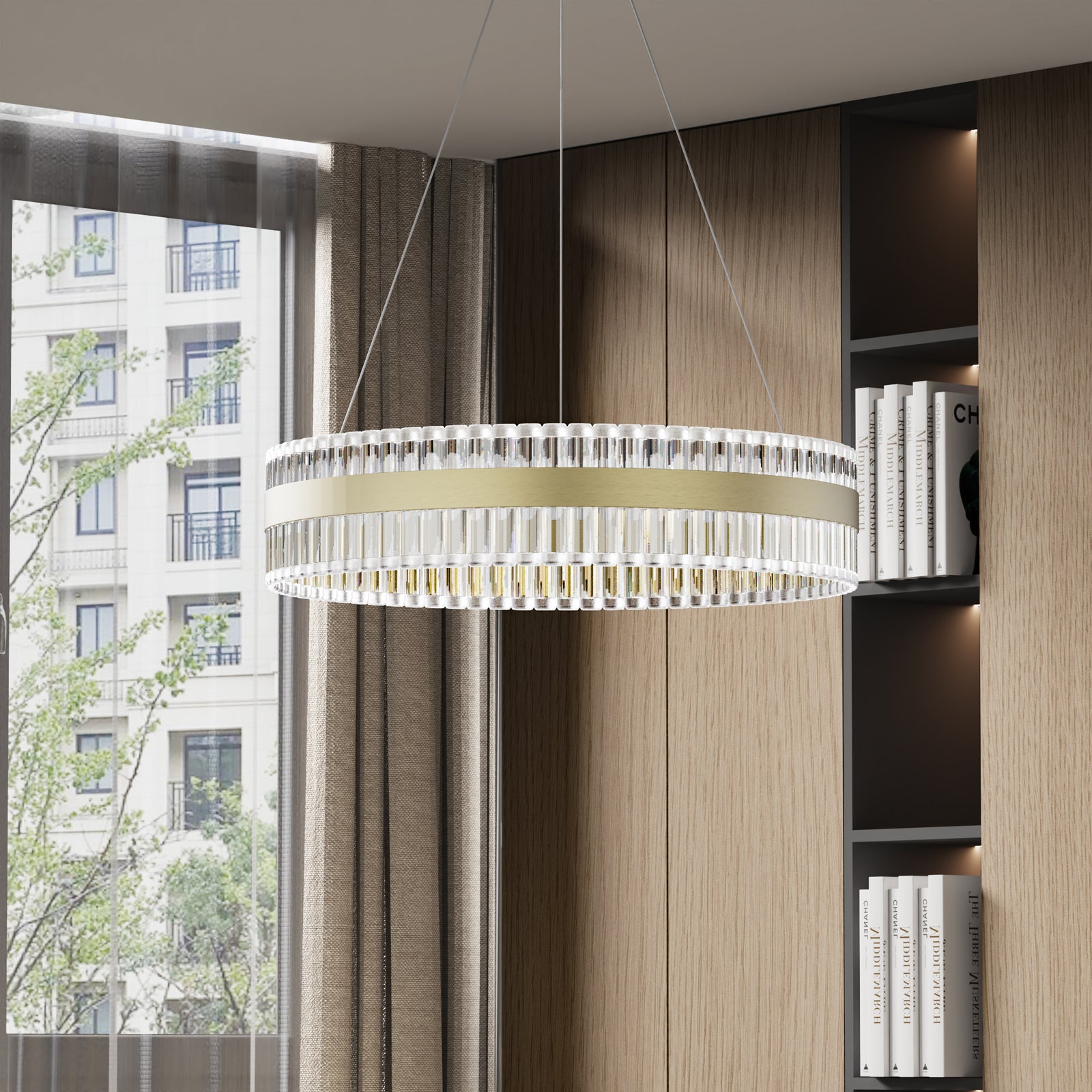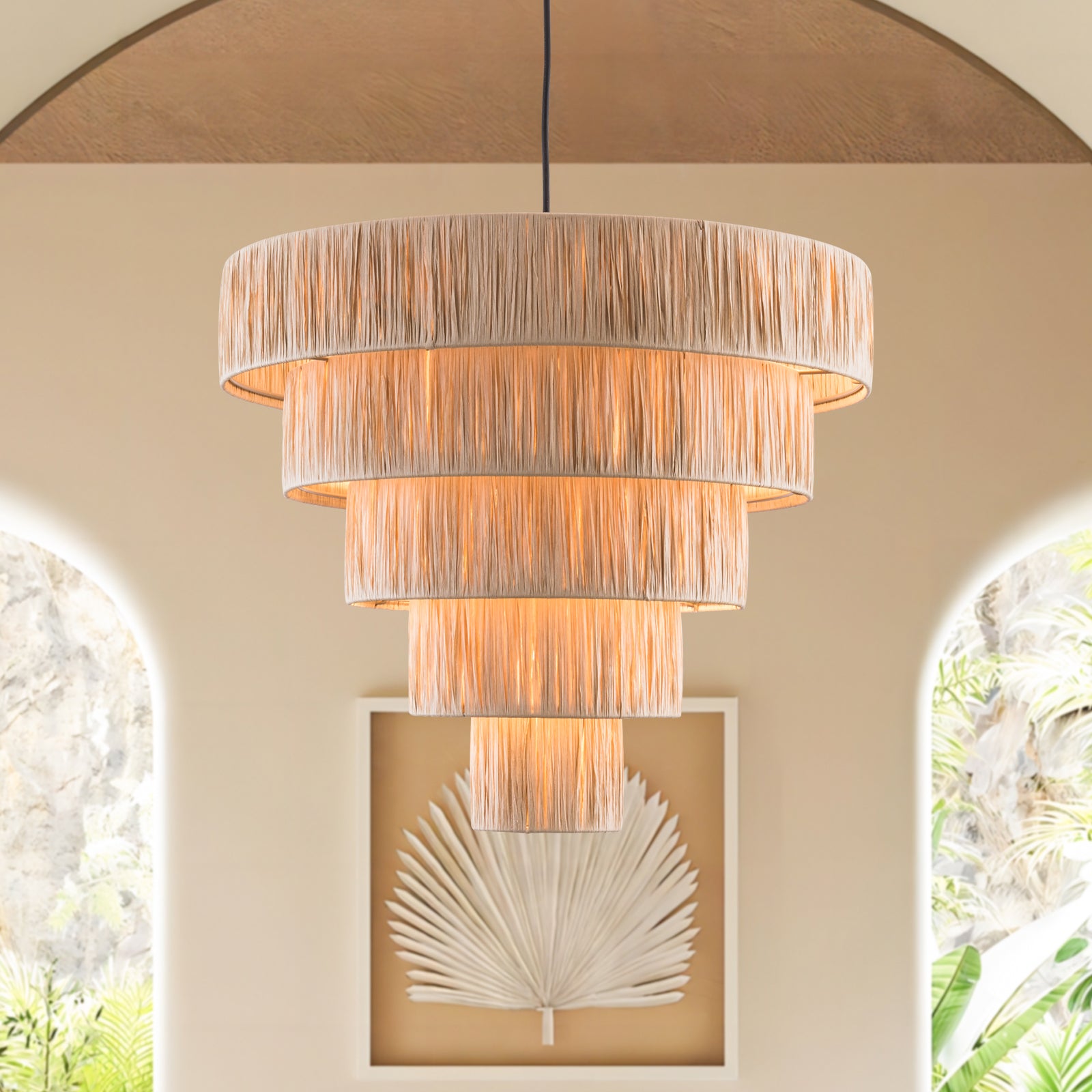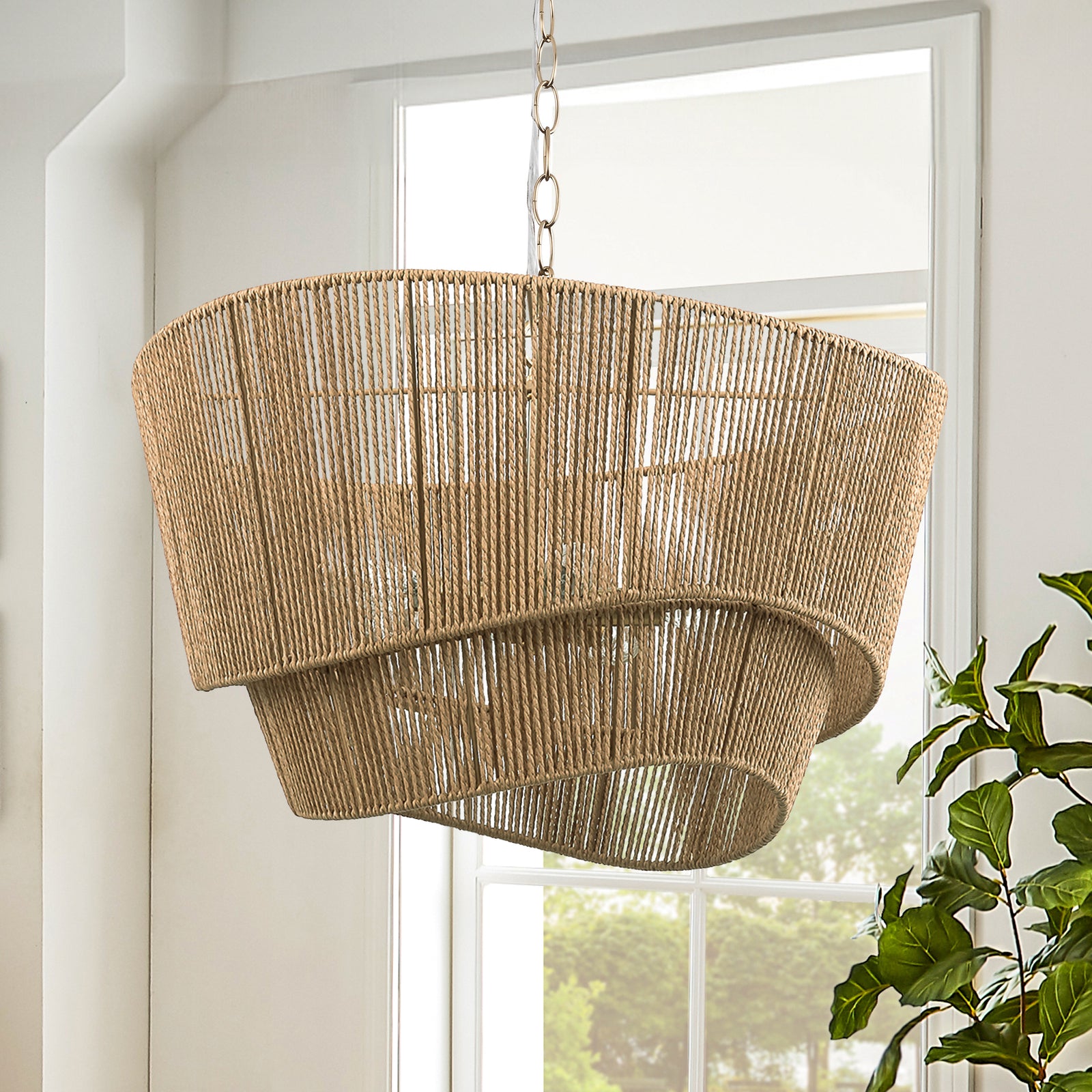 You now how the item you purchased often doesn't look as good as the photographs found on the website? Well, in this case, this Chandelier met and exceeded our expectations in terms of beauty, elegance and lighting. The LED lights provided plenty of light and this chandelier looks beautiful whether on or off. The only suggestion is that you will want to shape and angle the rings before you hang it. We actually hung it from a tree branch, then used a ladder to make the angle adjustments before we hung in our 22' foyer ceiling. Very happy with this purchase.