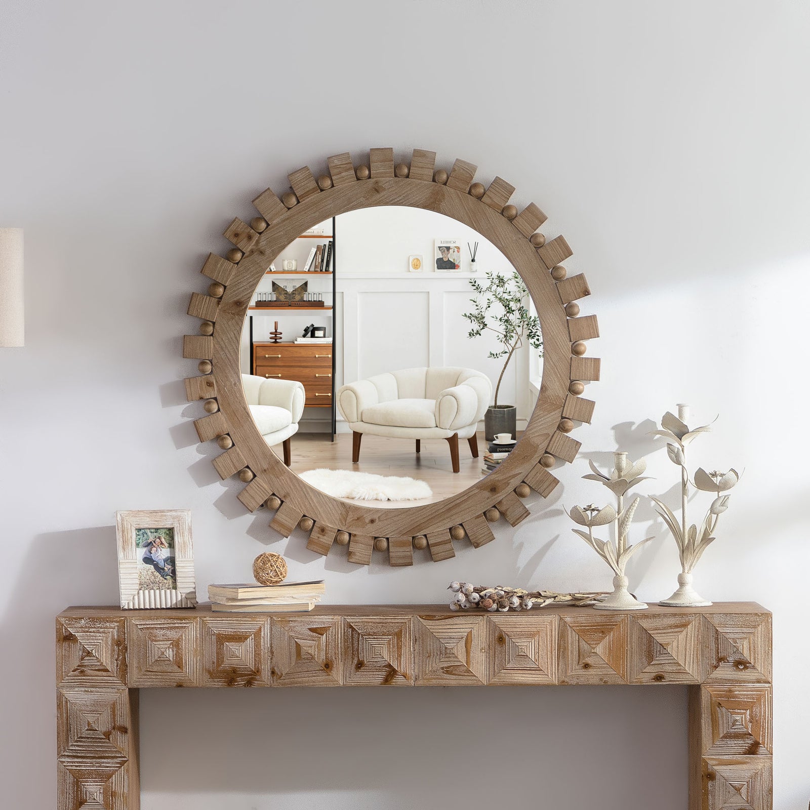 I couldn’t be happier with this Timeless Round Coffee Table! The handcrafted relief design is truly a work of art, adding a unique and elegant touch to my living room. The olive-shaped design makes it stand out beautifully, and the quality of the wood is exceptional—sturdy, durable, and clearly made with great craftsmanship.