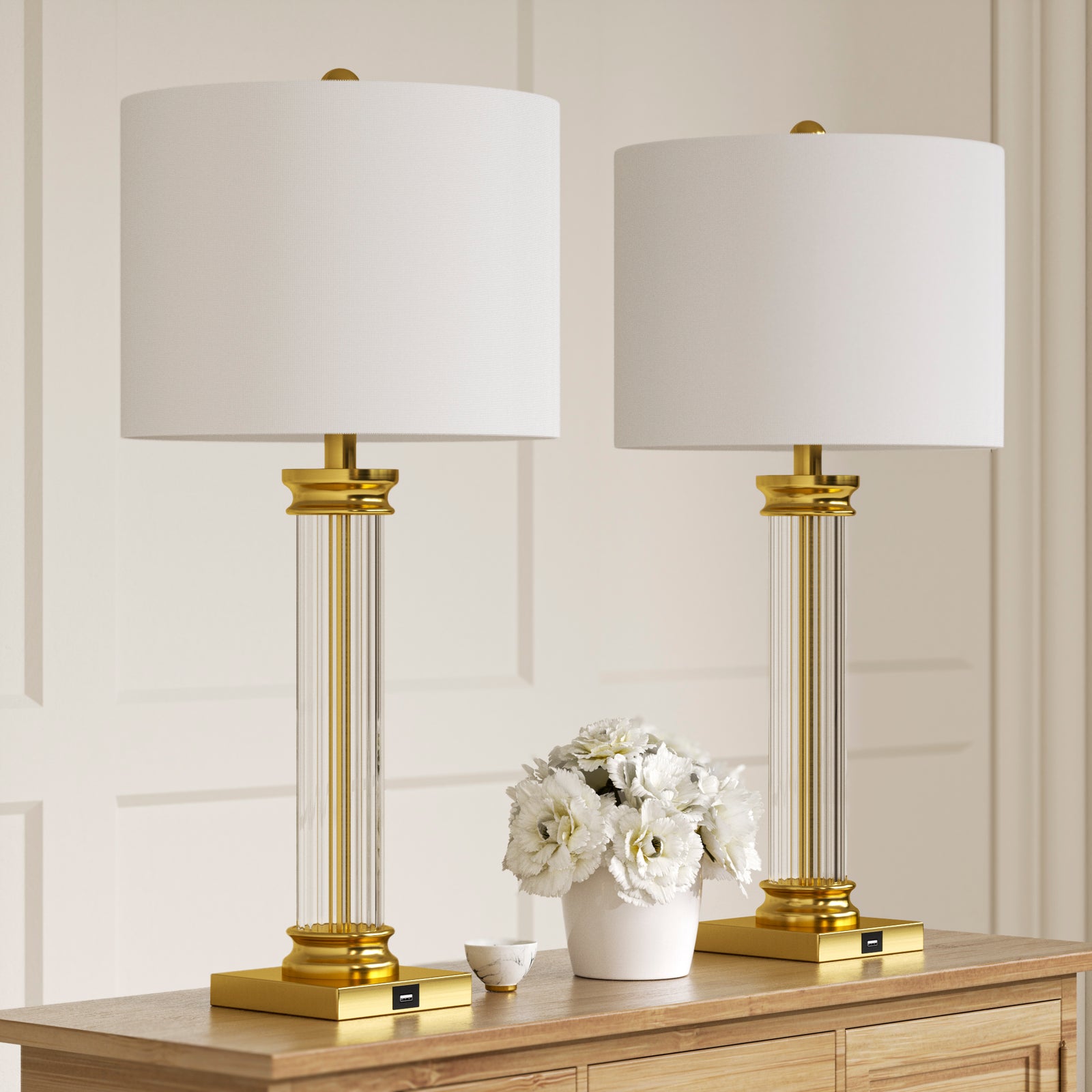 Love, love, love this lamp! Features include cute little table with USB port and light switch on the table. It was very easy to assemble, stylish and fits just where I wanted to put it. Only con would be the directions didn't say what wattage bulb to use. Found that information on the light socket. Max wattage is 100.