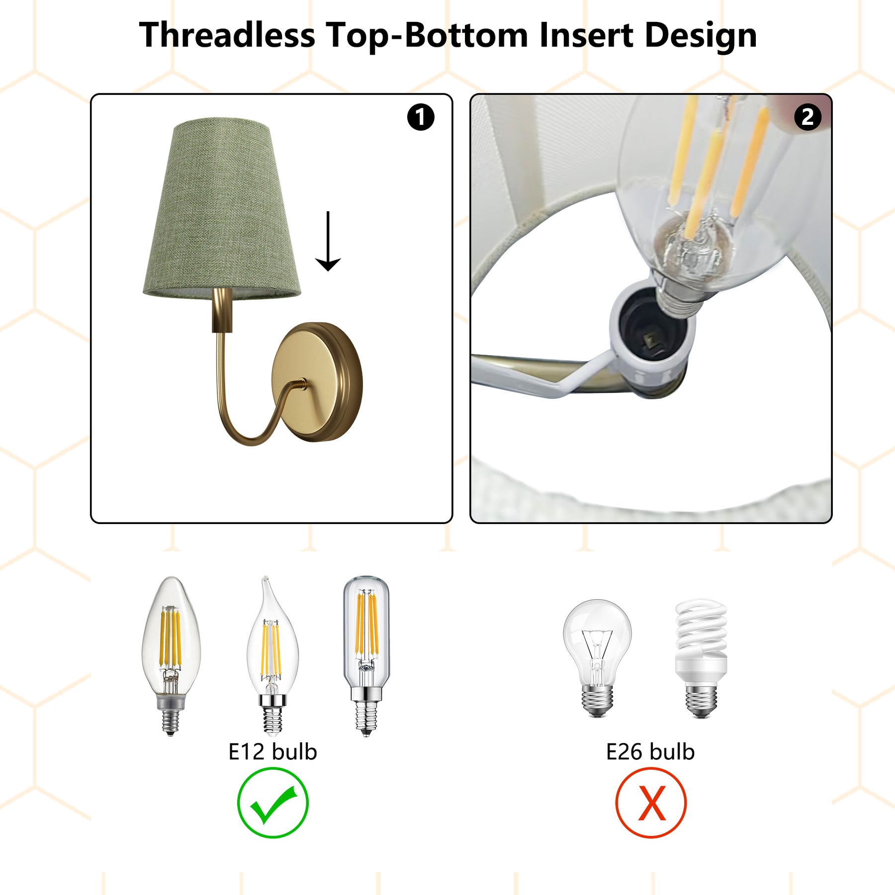 Perfectly sized at 6.5" top x 6" bottom x 3" height, this compact fabric lampshade fits most chandeliers and wall sconces with ease.