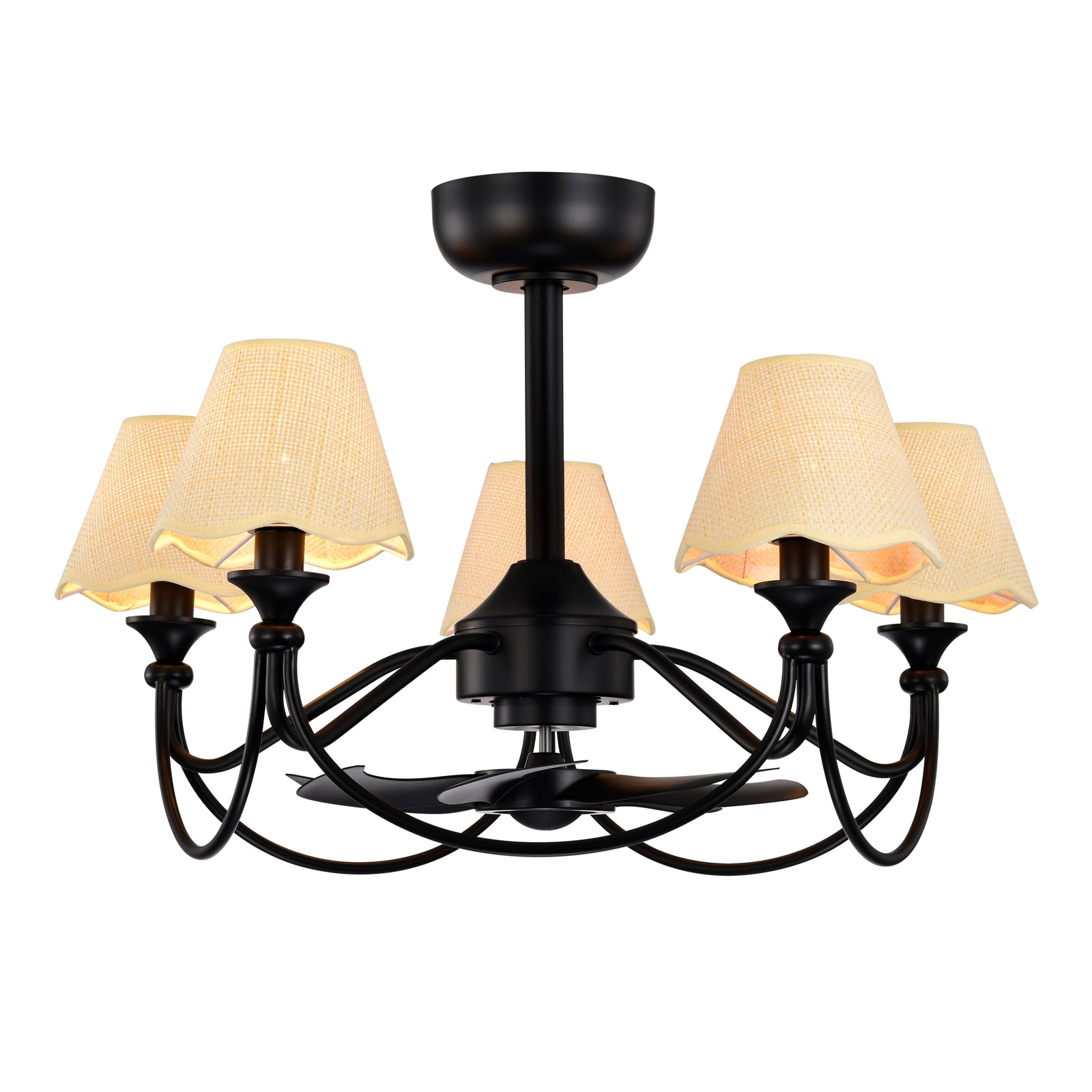 Lustre 28" 5-Light Modern Remote Control Paint Sand Black With Beige Fabric Shade Adjustable Length Fandelier Ceiling Fan With Lighting Kits For Living Room/Bedroom #26014