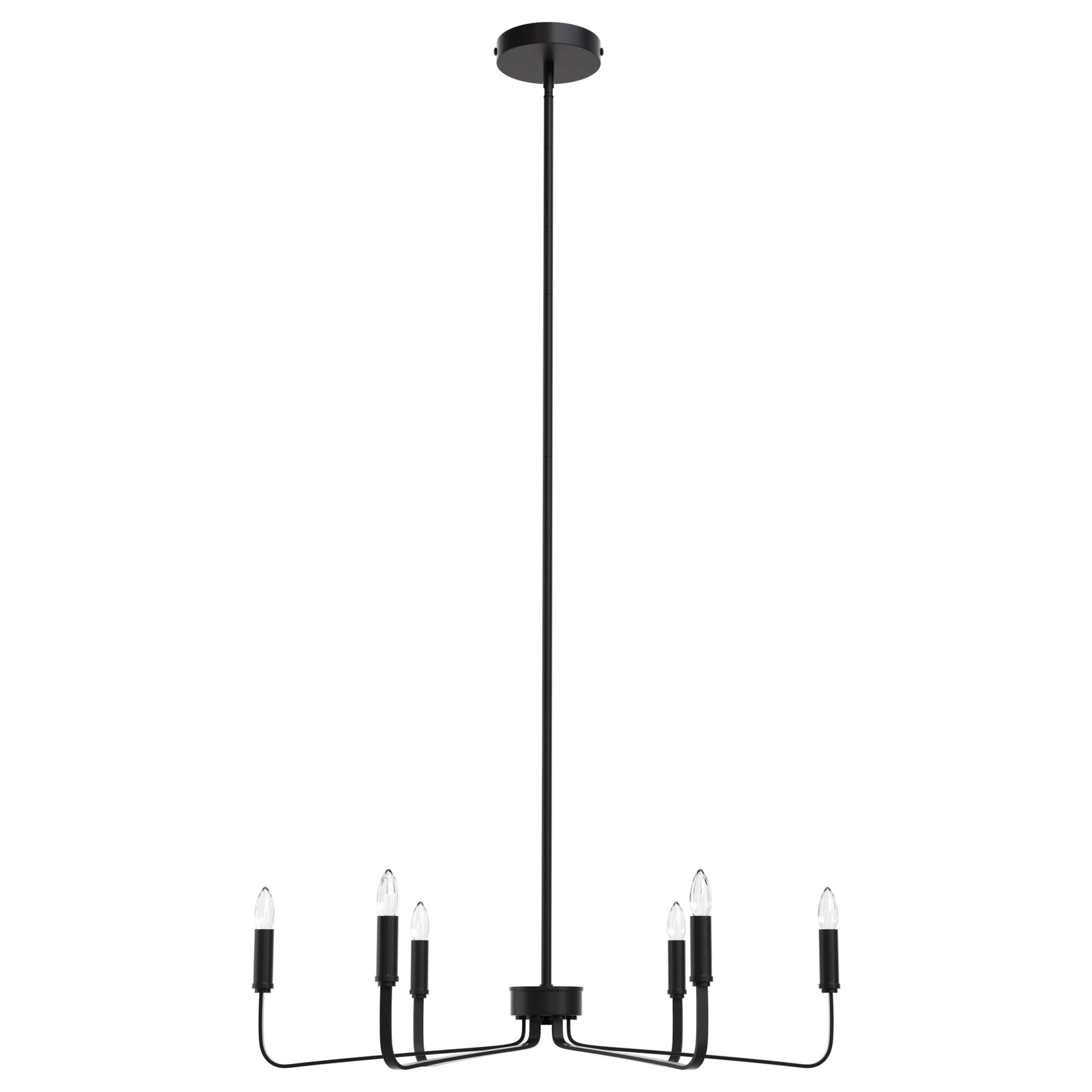 It is a beautiful chandelier. It took some time to figure out and assemble. The design was too ornate for my humble dining room with a standard high ceiling, so eliminated bottom danglers and connecting danglers. With no danglers, the bottom of the chandelier is about 6 feet from the floor. The light bulbs make a big difference in their look. I used traditional standard CLEAR light bulbs for a sparkling effect. The plain ceiling medallion was also installed.
