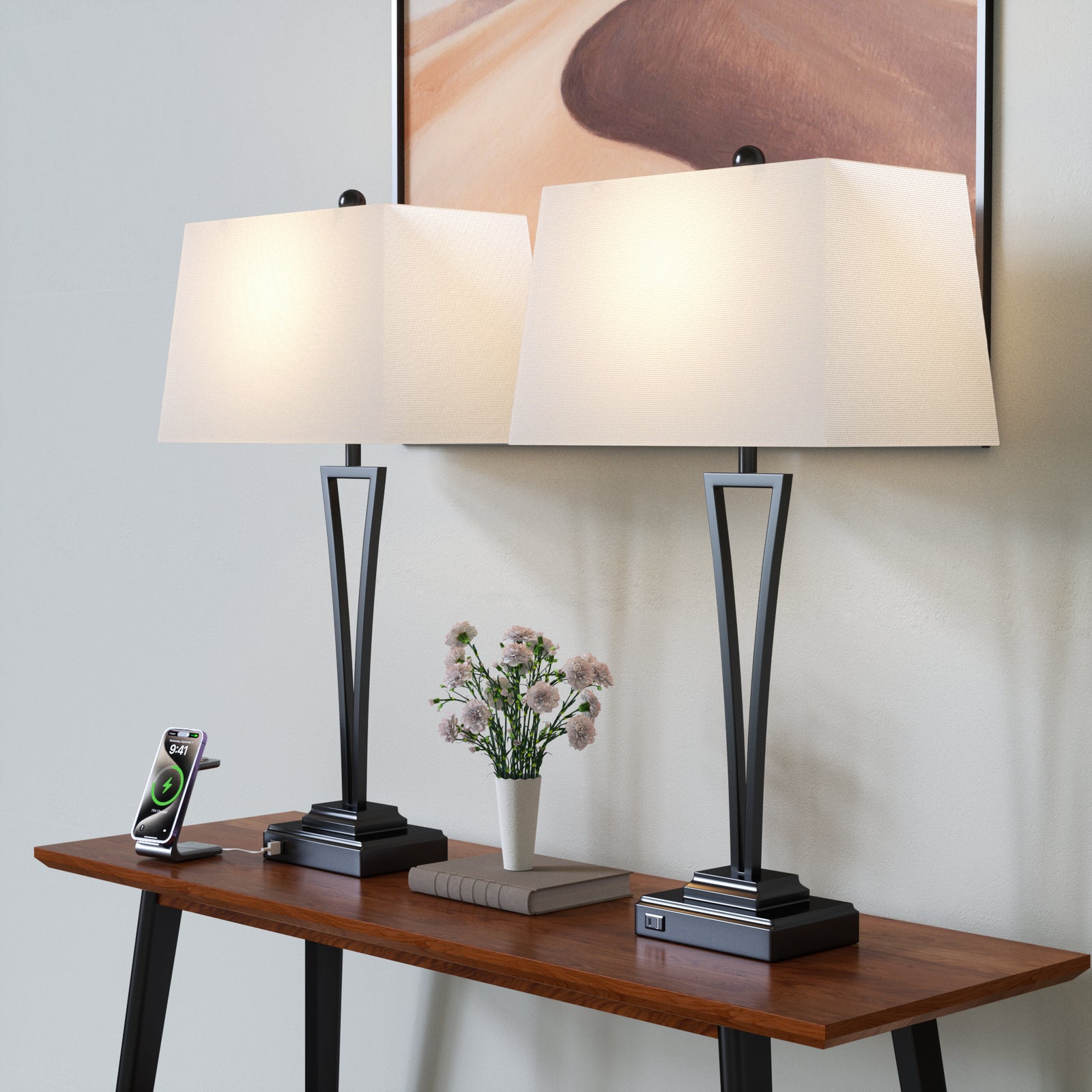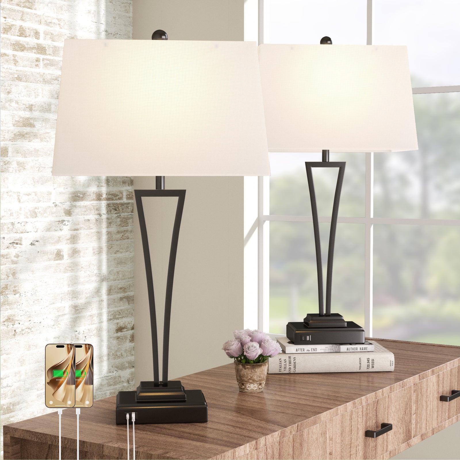 These 26 buffet lamps combine decorative appeal and ample lighting, perfect for your entryway or bedside. Crafted from metal, they feature a slim body accented by an orb and rest on a round base. The lamps have a distressed brown and gray finish, adding a rustic touch to your decor. Oatmeal linen empire shades diffuse light from 100W bulbs (not included), creating a warm and inviting ambiance. Easy to operate with a rotary switch located on the socket, these lamps are sold in sets of two.