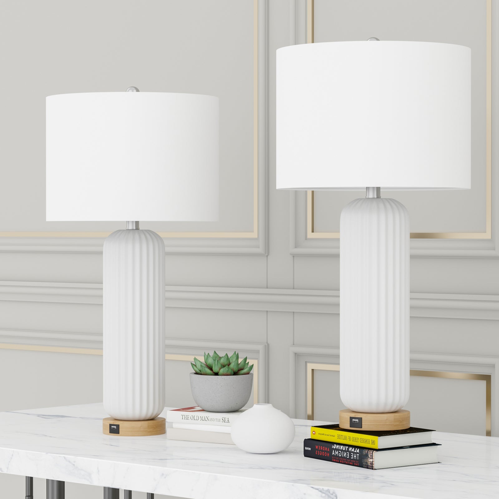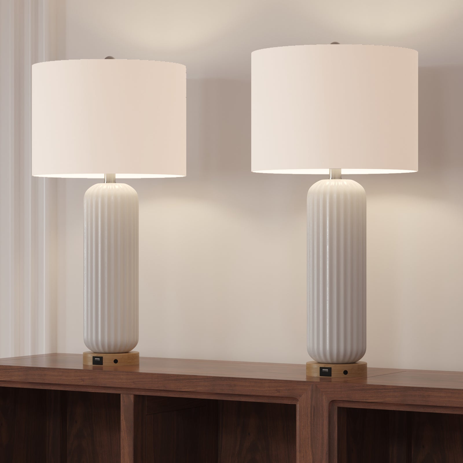 28" Modern Fluted Ceramic Table Lamp with USB Charging Port and 3-Way Dimmable Lighting for Bedroom, Living Room and Study (Set of 2) #T164