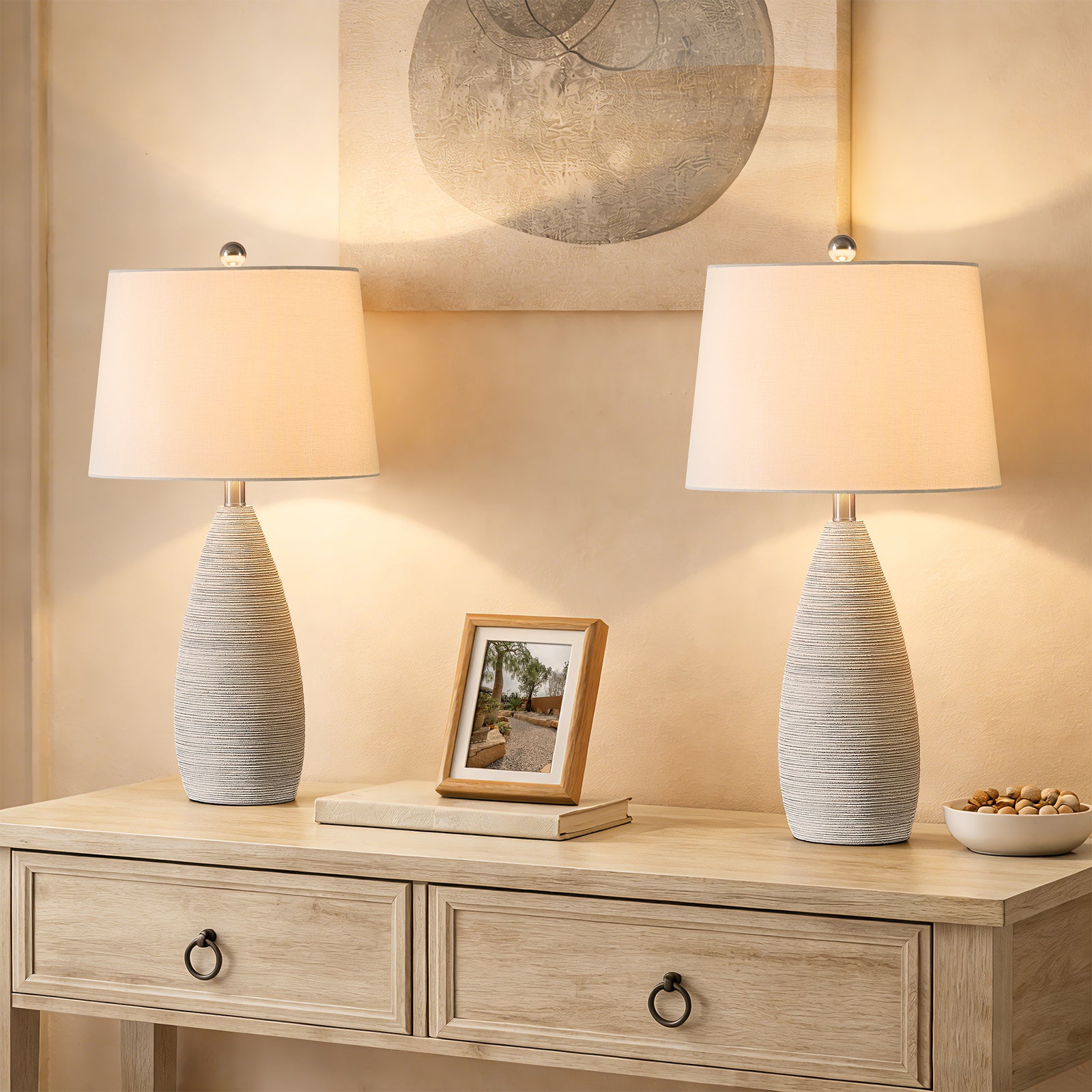 Shimmer 26.5" Farmhouse Traditional Resin Table Lamp, Assembled Linen Shade And Rotary Switch Bedside Lamps For Bedroom And Living Room (Set of 2) #T276